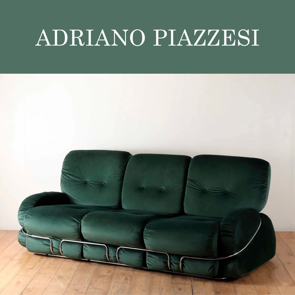 ADRIANO PIAZZESI は、クロムフレームをつかったOkeyシリーズソファなどのデザインで知られる、イタリアのインダストリアルデザイナー。全体がクロムメッキ金属の管状構造で支えられており、その異素材の組み合わせは時代を超越した現代的とも言えるデザインです。工業デザイナーらしいデザインが魅力です。
