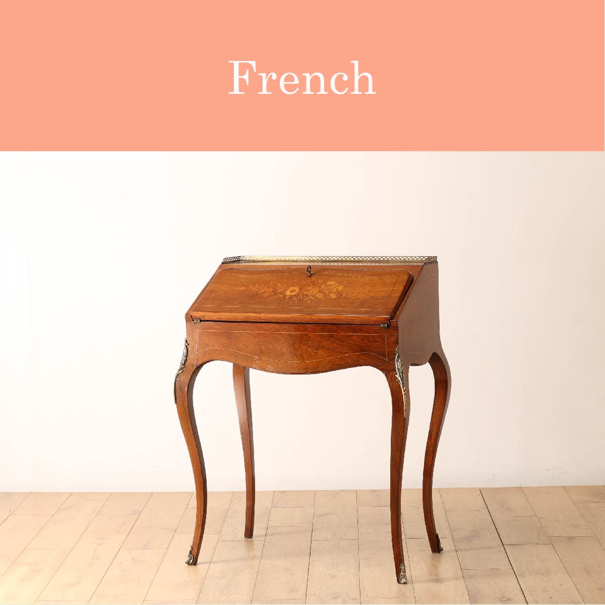 フランスのアンティークは18世紀から20世紀にかけて様々な様式があり、時代が変わるに連れて家具も変化しています。