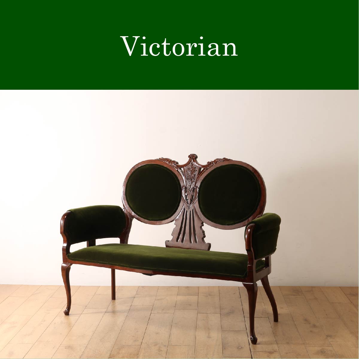 ヴィクトリア女王がイギリスを統治していた1837年から1901年の期間を指し、 家具におけるVictorian(ヴィクトリア)様式の特徴としては古典様式のリバイバルという点があげられます。