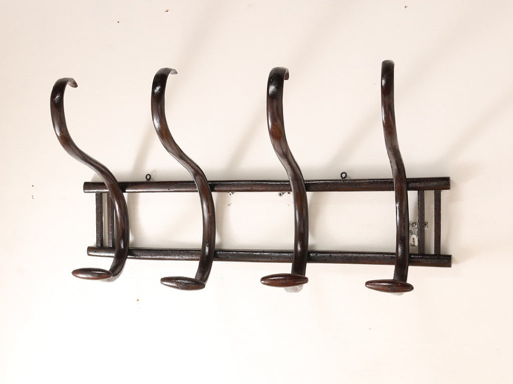 曲げ木で造形されたフックが4つ付いた壁掛けフックです。くるんとした曲線の先はスッとシャープに伸びていて、エレガントにもスタイリッシュにも合わせることができるデザインです。また、通常の木製のフックよりも軽い為、取り付けがしやすいところも魅力です。壁を素敵に演出してくれるフック、帽子をかけていただいたり、ドライフラワーやガーランドを吊るしていただいたり、インテリアの1つして取り入れてみてはいかがでしょうか。