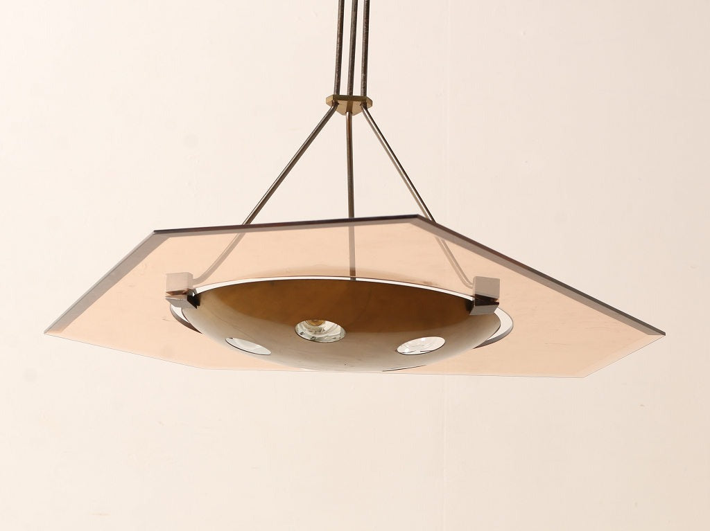 ガラスとメタルのスタイリッシュなデザインが魅力的なシーリングランプ。そのデザイン性から、消灯時もお部屋を彩るオブジェの1つになりそうです。クールな印象を与える素材を使用していますが、あかりを灯せば、一転して柔らかさを感じさせます。取り入れていただくことで、お部屋の良いスパイスになりそうな魅力的な逸品です。ぜひご自宅で、この魅力をお楽しみくださいませ。