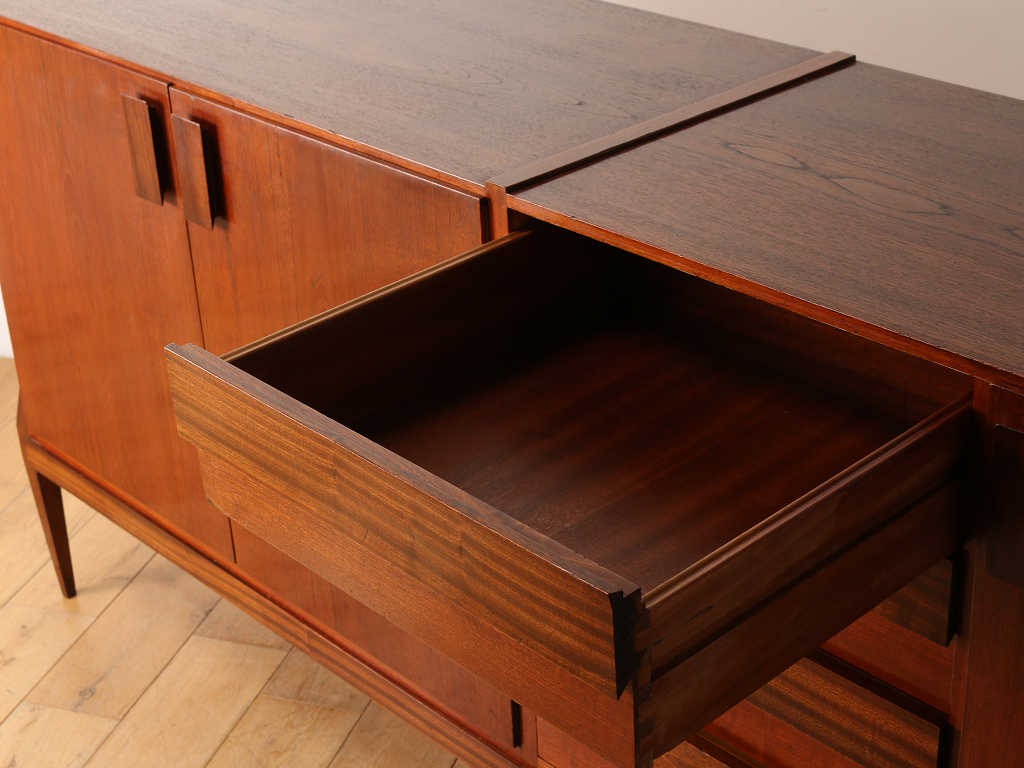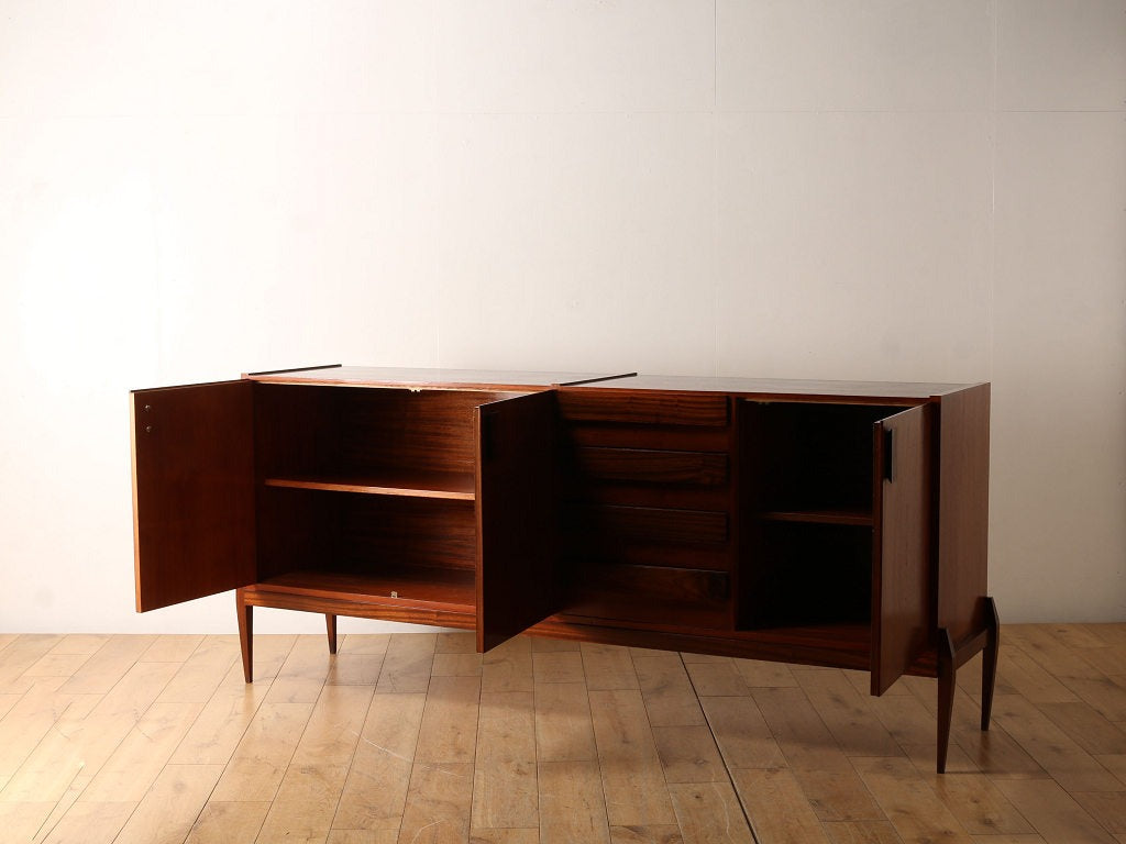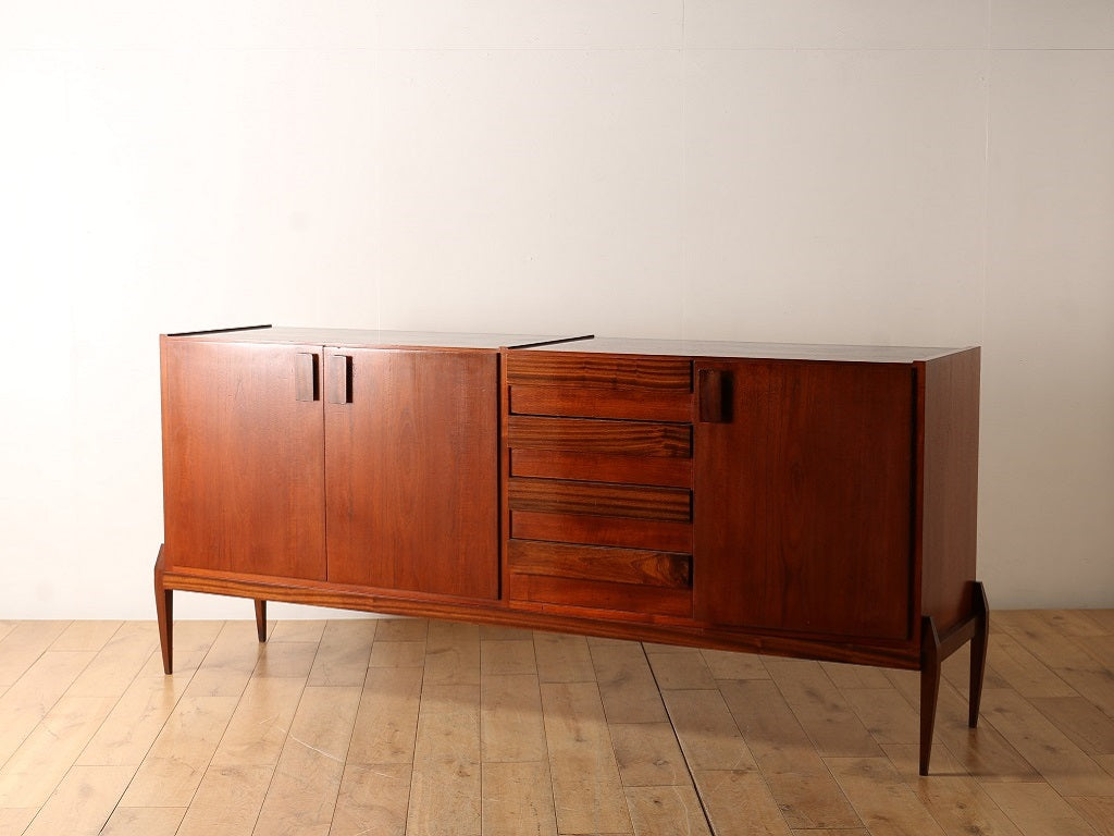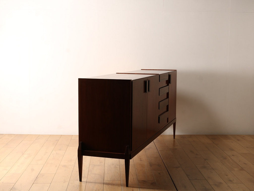 艶やかな杢目がとても上品でやさしい印象を抱く一台ですが、デザインの端々には直線的な、無駄のない洗練されたラインを望むことができます。また落ち着きのある印象でもありますが、その存在感は十分お部屋の主役としてお使い頂けることでしょう。隠せる収納スペースも機能的に暮らしをサポートしてくれます。広い天板上にはお気に入りのディスプレイや季節の植物などで彩り、是非柔らかくも拘りを持つ一台で新たな生活シーンをお楽しみ下さい。【中央抽斗内寸】W430 D410 H120