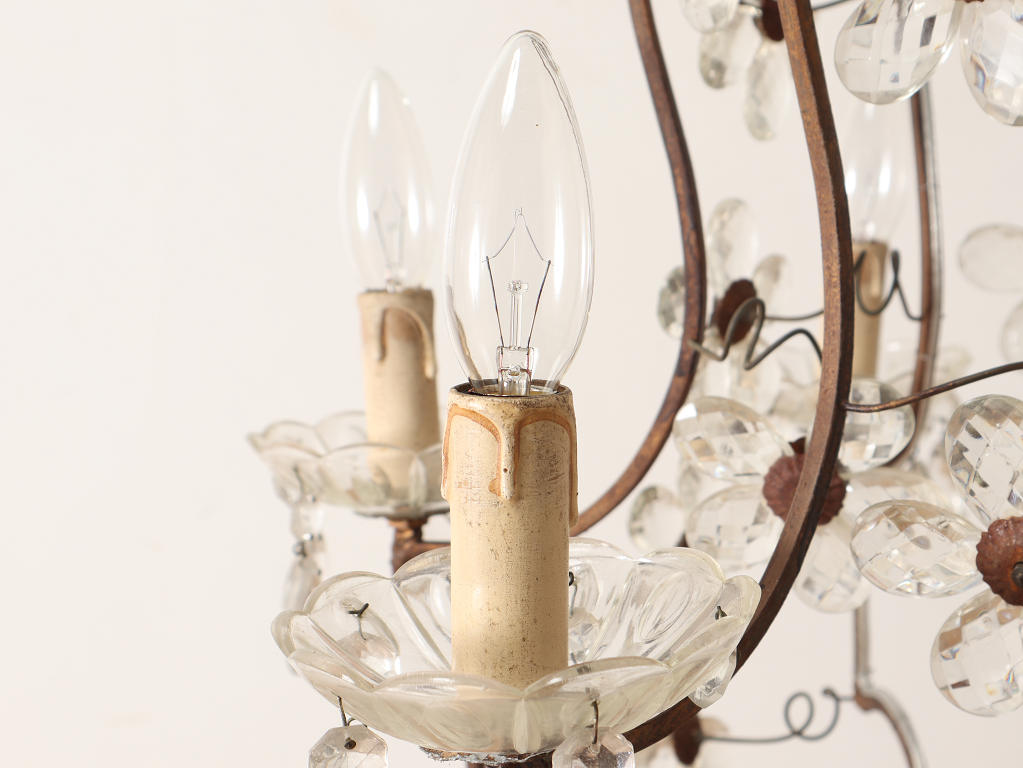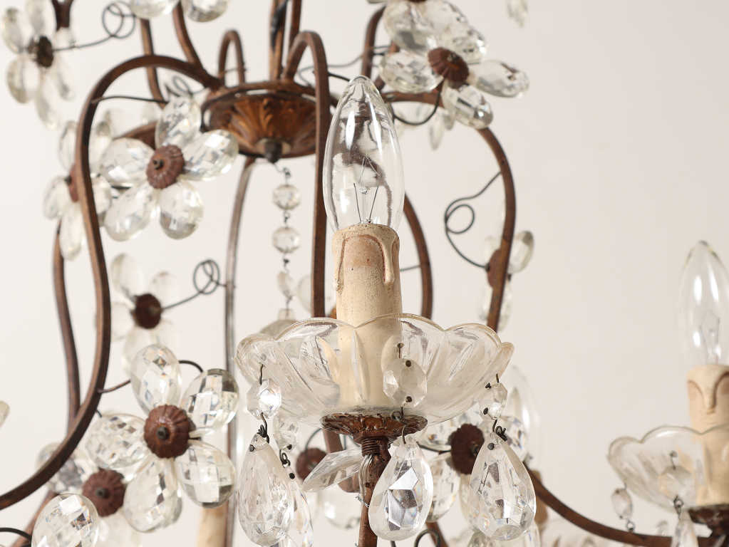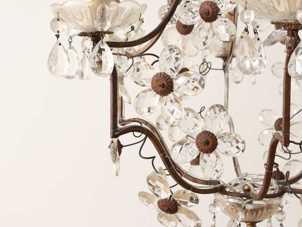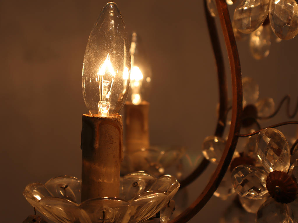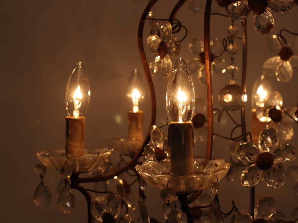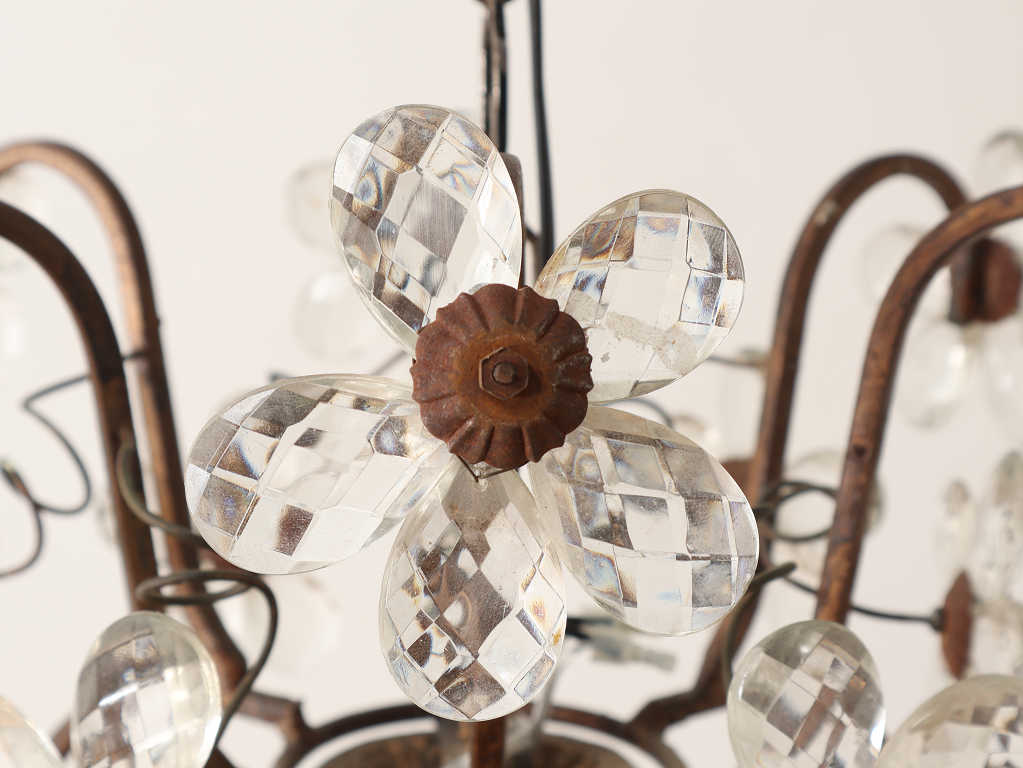 花びらがカットガラスのパーツで構成されている繊細なシャンデリア。クリア色でインテリアを邪魔せず、どんなスタイルにも合わせやすいのではないでしょうか。光を灯すと壁に映る美しい陰影も楽しめます。