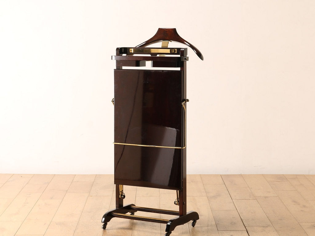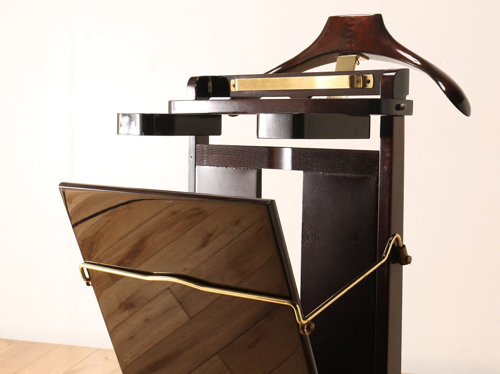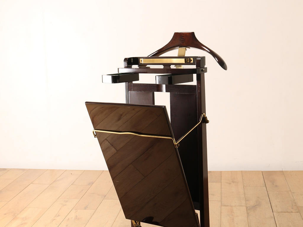 イタリアのF.lli Reguittiのジェントルマンズバレットです。ズボンプレス、カフスボタンホルダー、ジャケットまたはシャツハンガーの内蔵されたエレガントでモダンな紳士的アイテムです。実用だけでなく、SHOPなどで演出用にお使いいただいても素敵なデザインです。