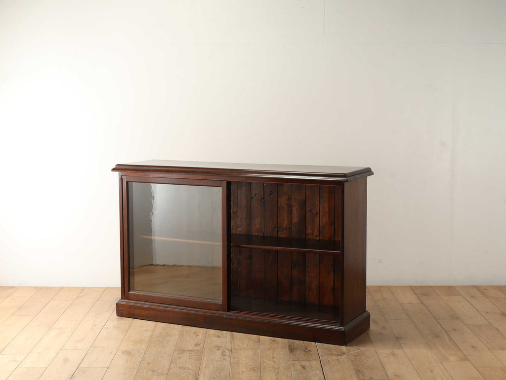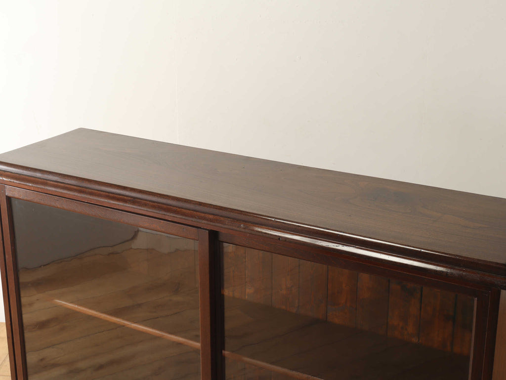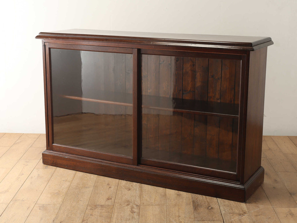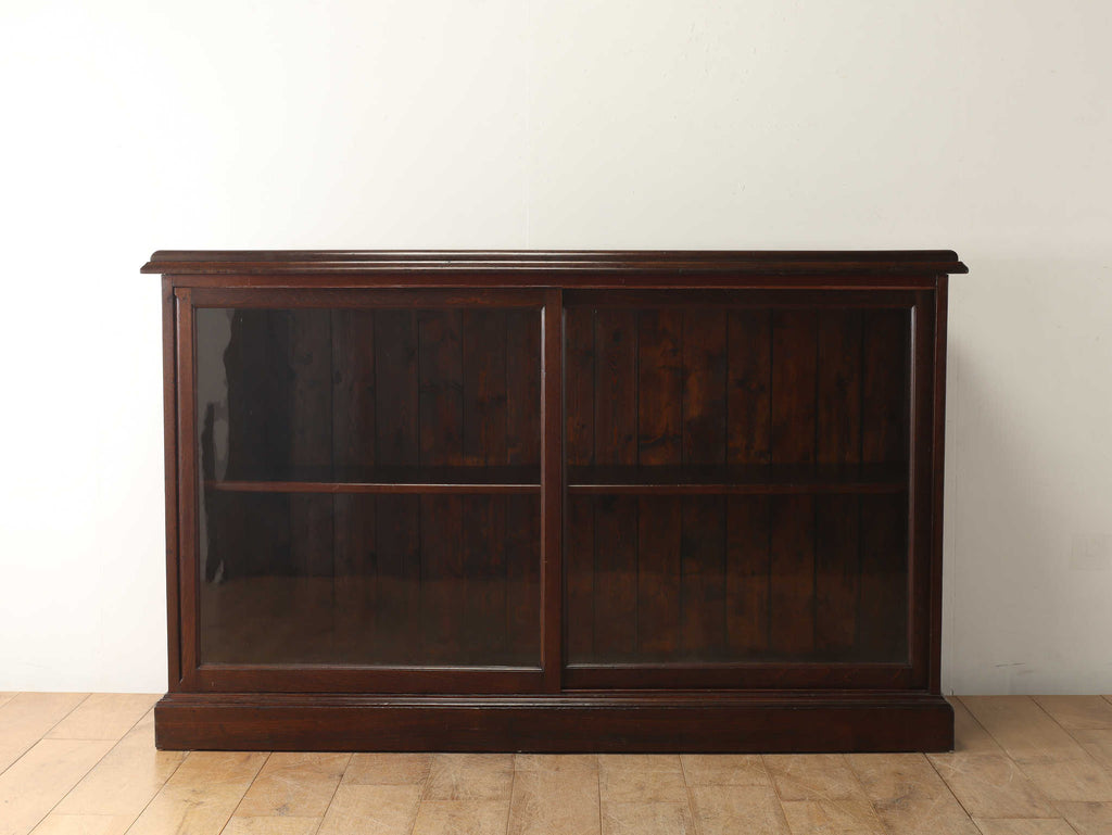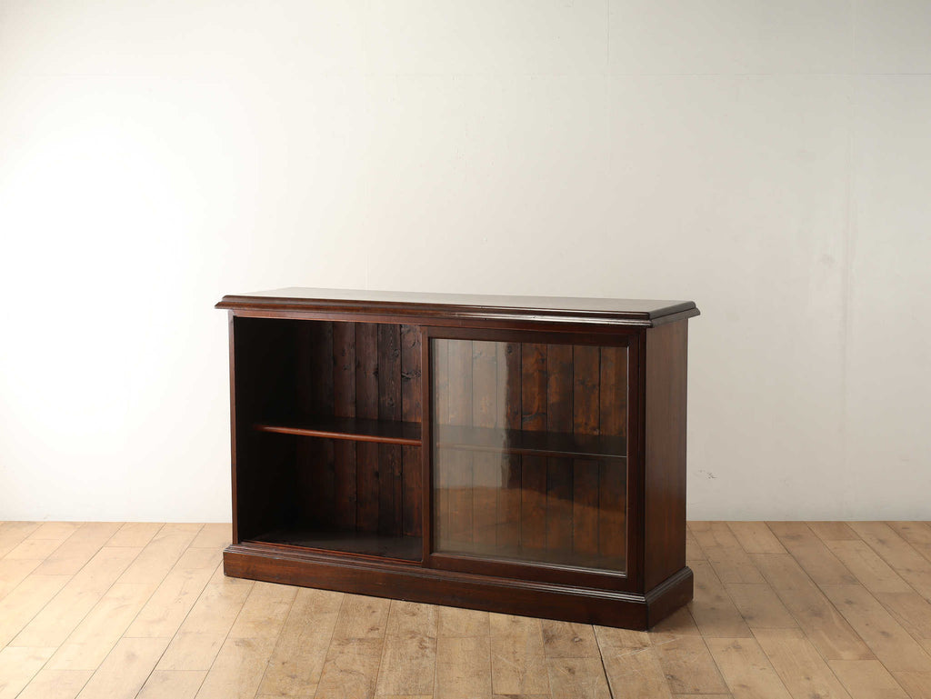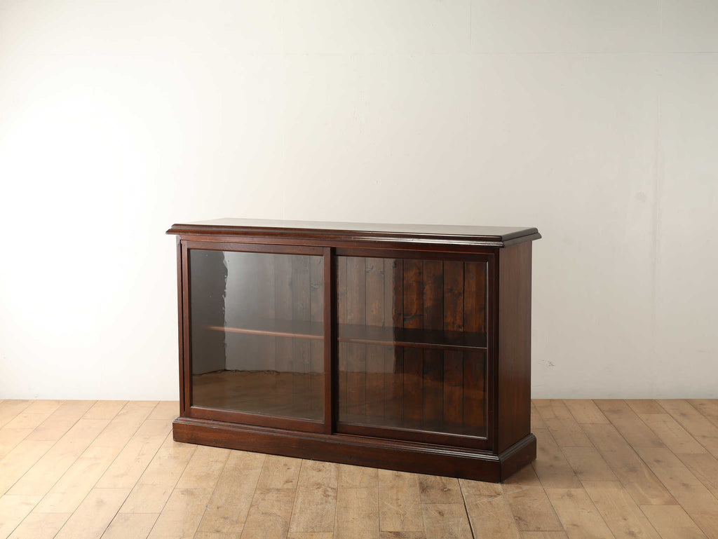 ウォルナット材の深みのある色が印象的なブックケースです。シンプルなデザインですので、木の質感をお楽しみいただけます。ガラスに装飾が全くないため、中に収納する本やコレクションを美しく表現出来ます。本棚以外にも、食器棚としてお気に入りのカップやお皿を飾っていただく事も出来ます。幅が1500㎜と収納力がありますが、扉が引き戸ですので開閉時のスペースをとらず、様々な場所でお使いいただけます。