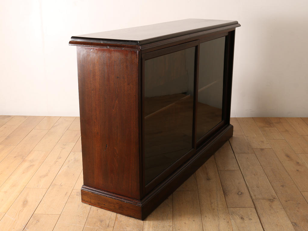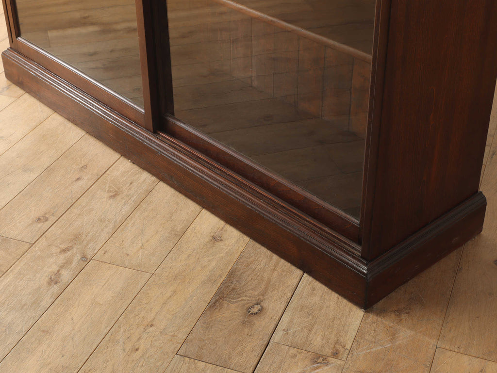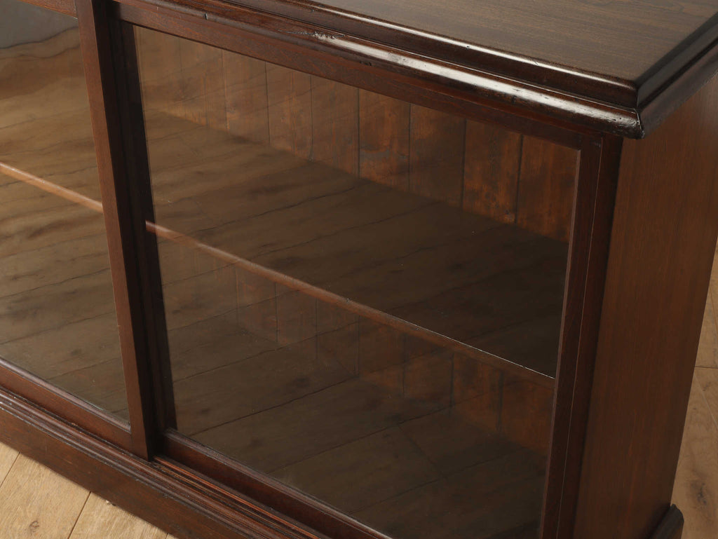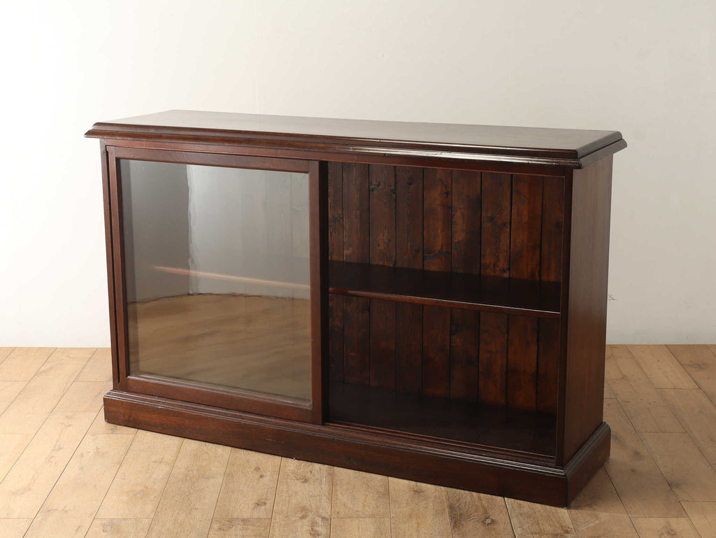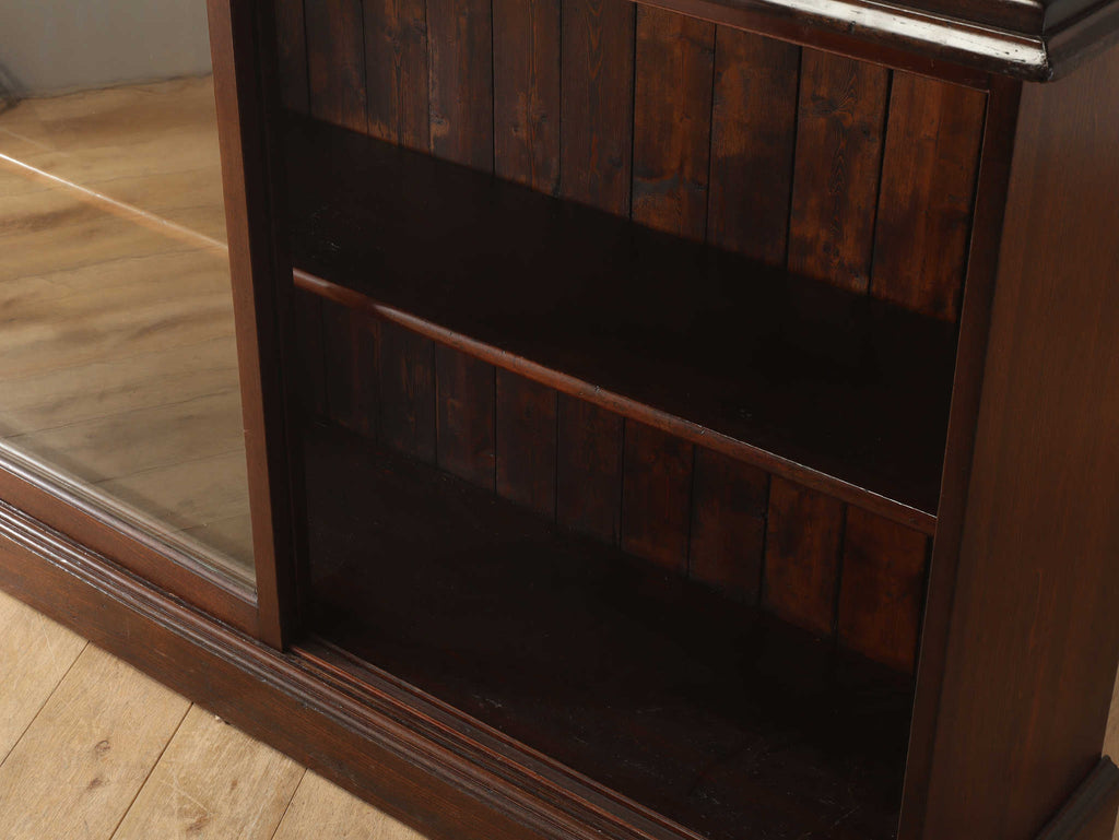 ウォルナット材の深みのある色が印象的なブックケースです。シンプルなデザインですので、木の質感をお楽しみいただけます。ガラスに装飾が全くないため、中に収納する本やコレクションを美しく表現出来ます。本棚以外にも、食器棚としてお気に入りのカップやお皿を飾っていただく事も出来ます。幅が1500㎜と収納力がありますが、扉が引き戸ですので開閉時のスペースをとらず、様々な場所でお使いいただけます。