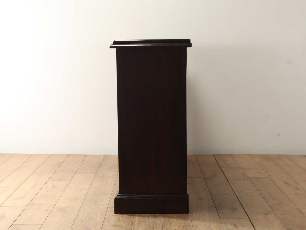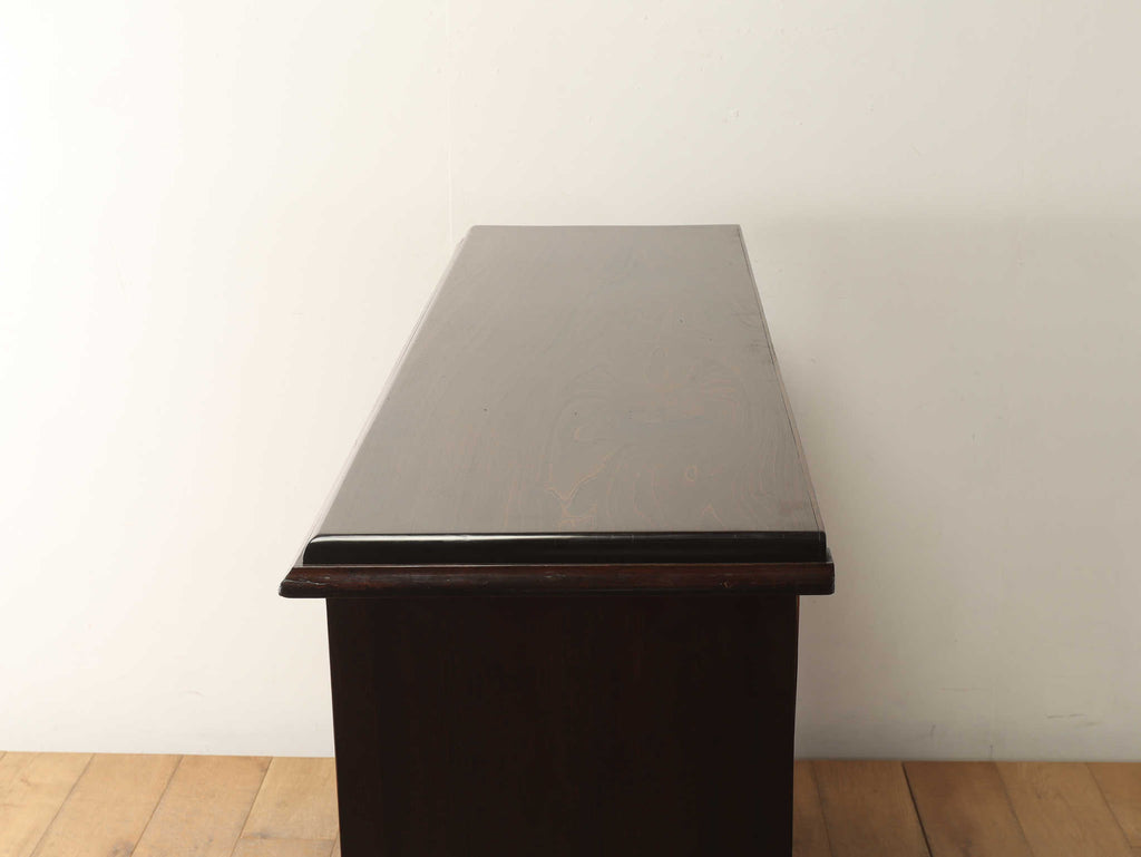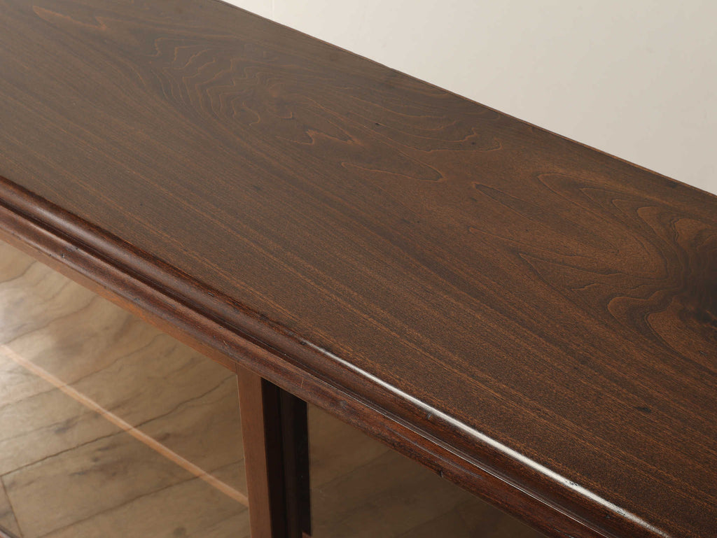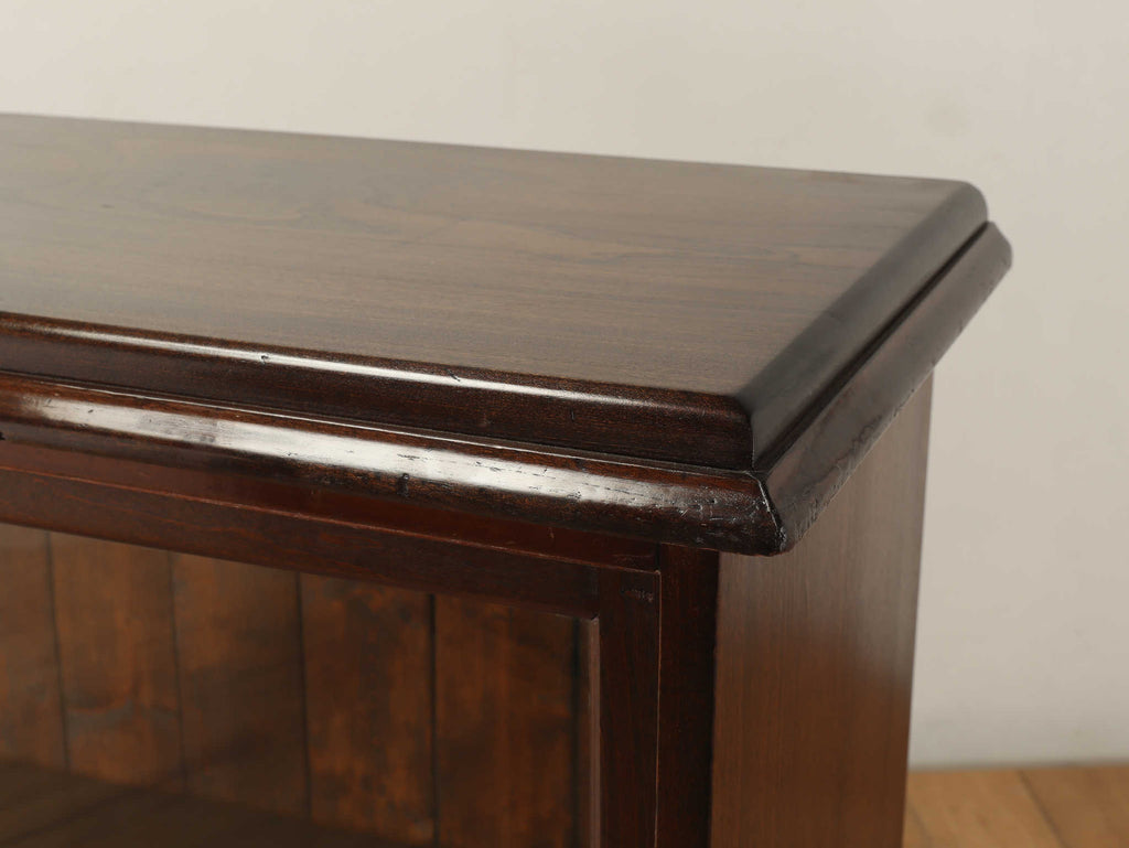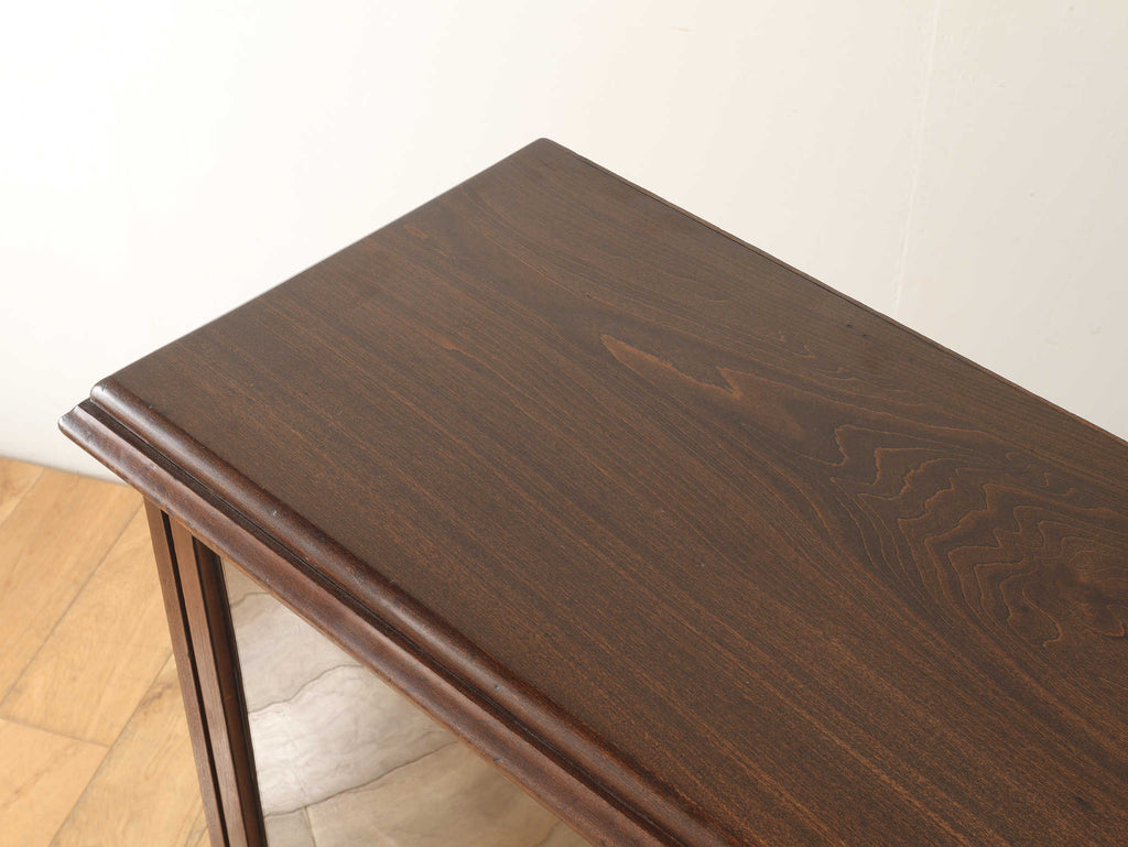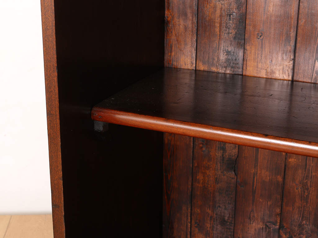 ウォルナット材の深みのある色が印象的なブックケースです。シンプルなデザインですので、木の質感をお楽しみいただけます。ガラスに装飾が全くないため、中に収納する本やコレクションを美しく表現出来ます。本棚以外にも、食器棚としてお気に入りのカップやお皿を飾っていただく事も出来ます。幅が1500㎜と収納力がありますが、扉が引き戸ですので開閉時のスペースをとらず、様々な場所でお使いいただけます。