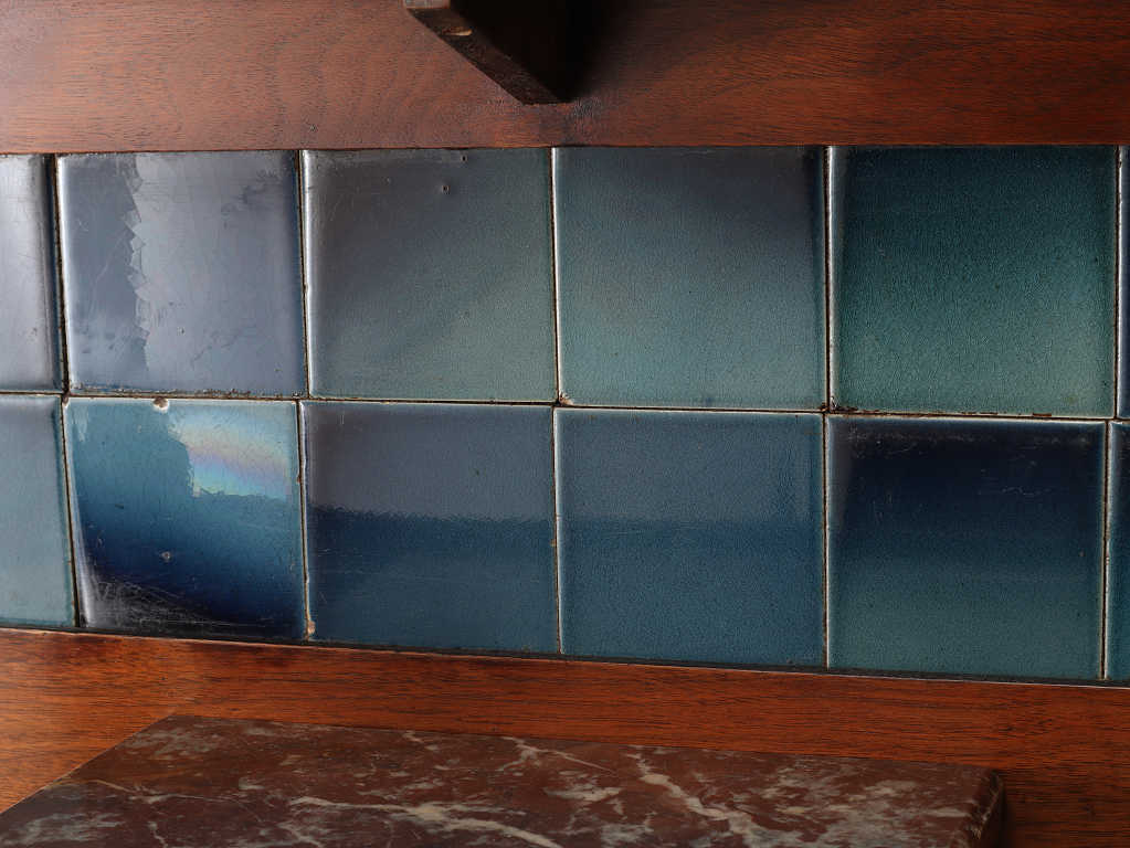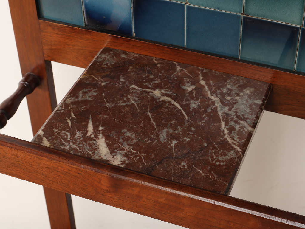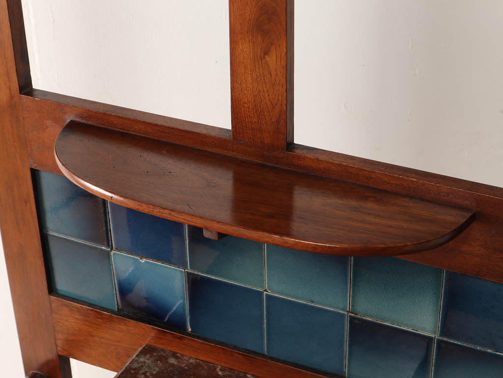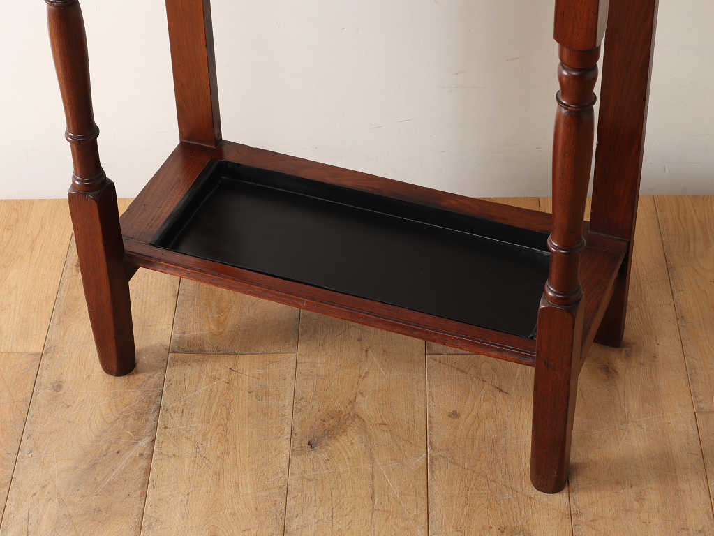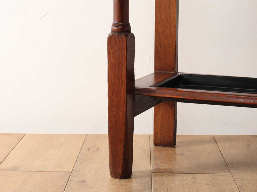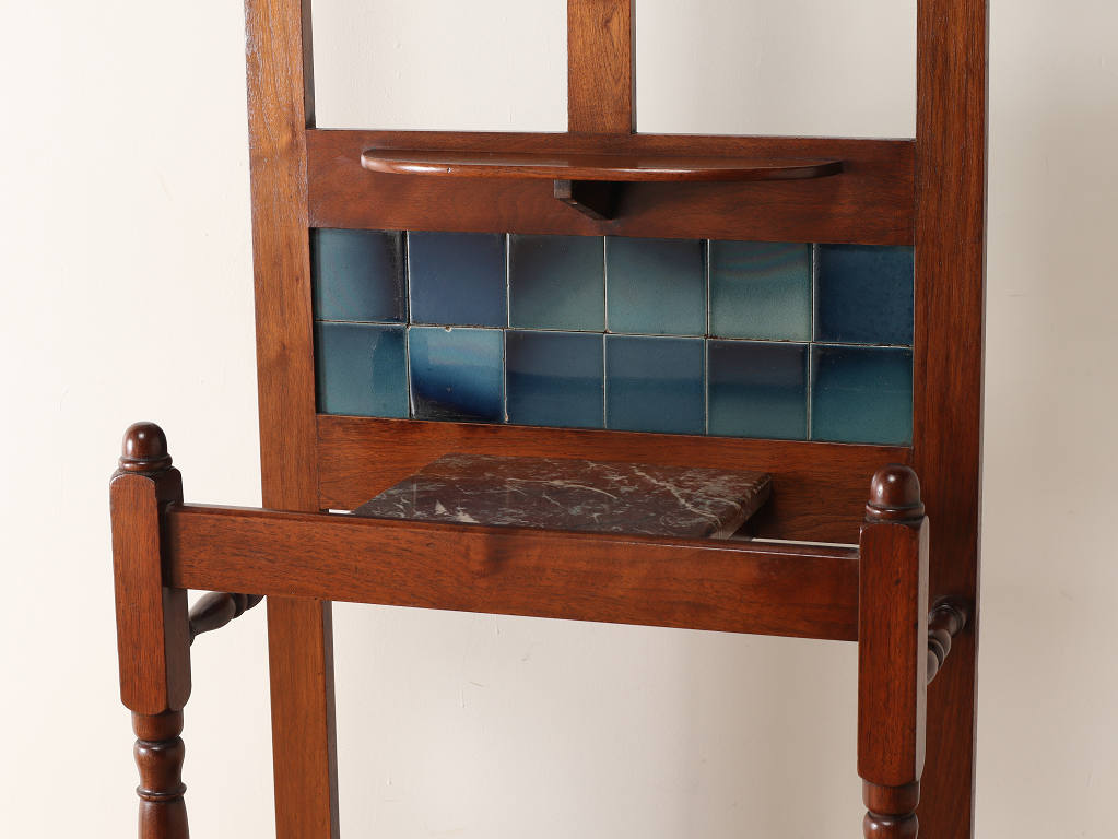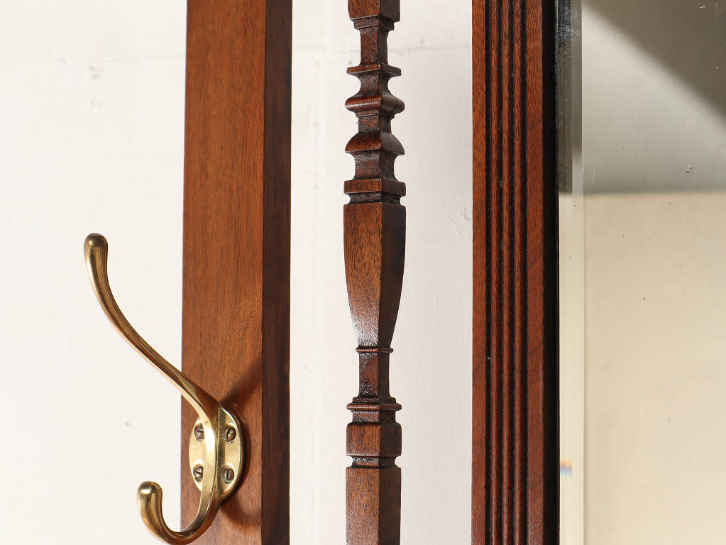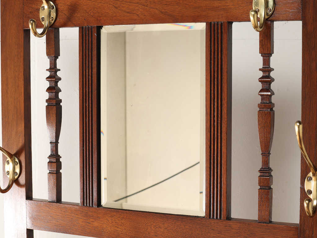 当時のイギリスでは玄関ホールの定番として置かれていたホールスタンド。様々なタイプがありますが、こちらは四角いミラーとブルーのタイルがアクセントとなっています。外出前に身支度をチェックできるだけでなく、フックが施されているため、帽子やコートを掛けたり、ディスプレイとしても活躍します。比較的奥行きが浅く、スペースの限られる玄関にぴったりの一台です。