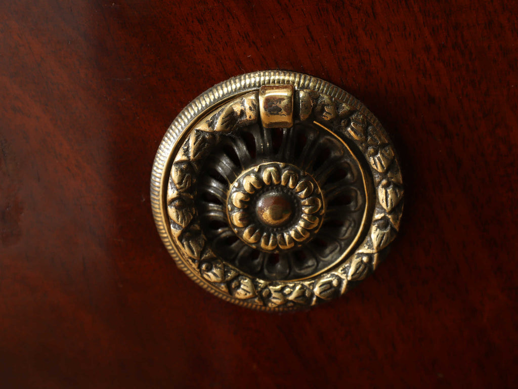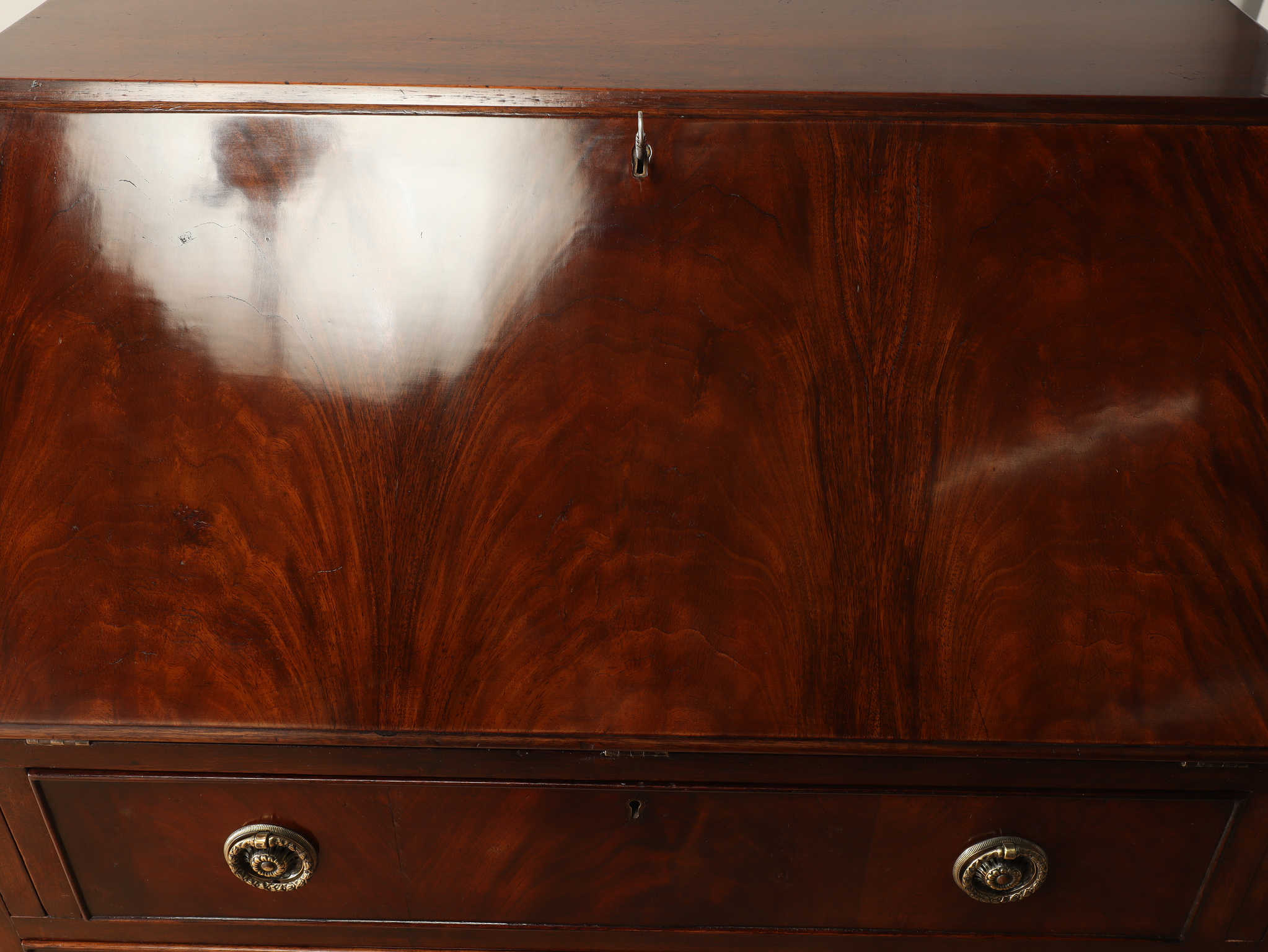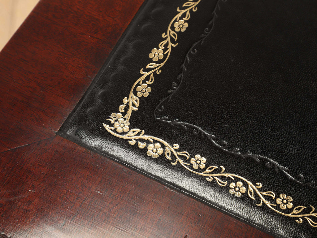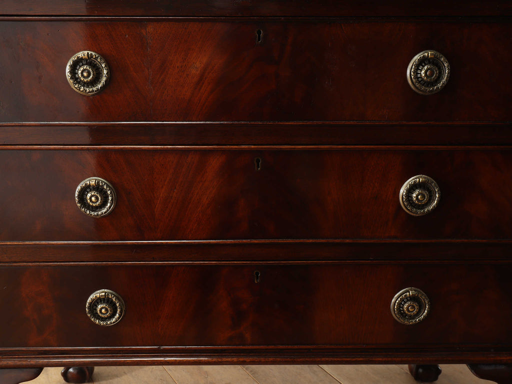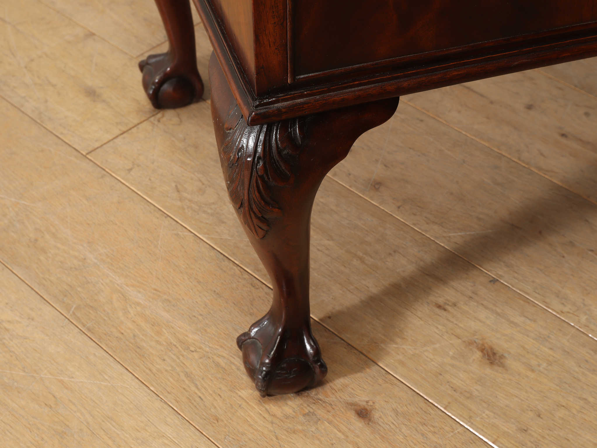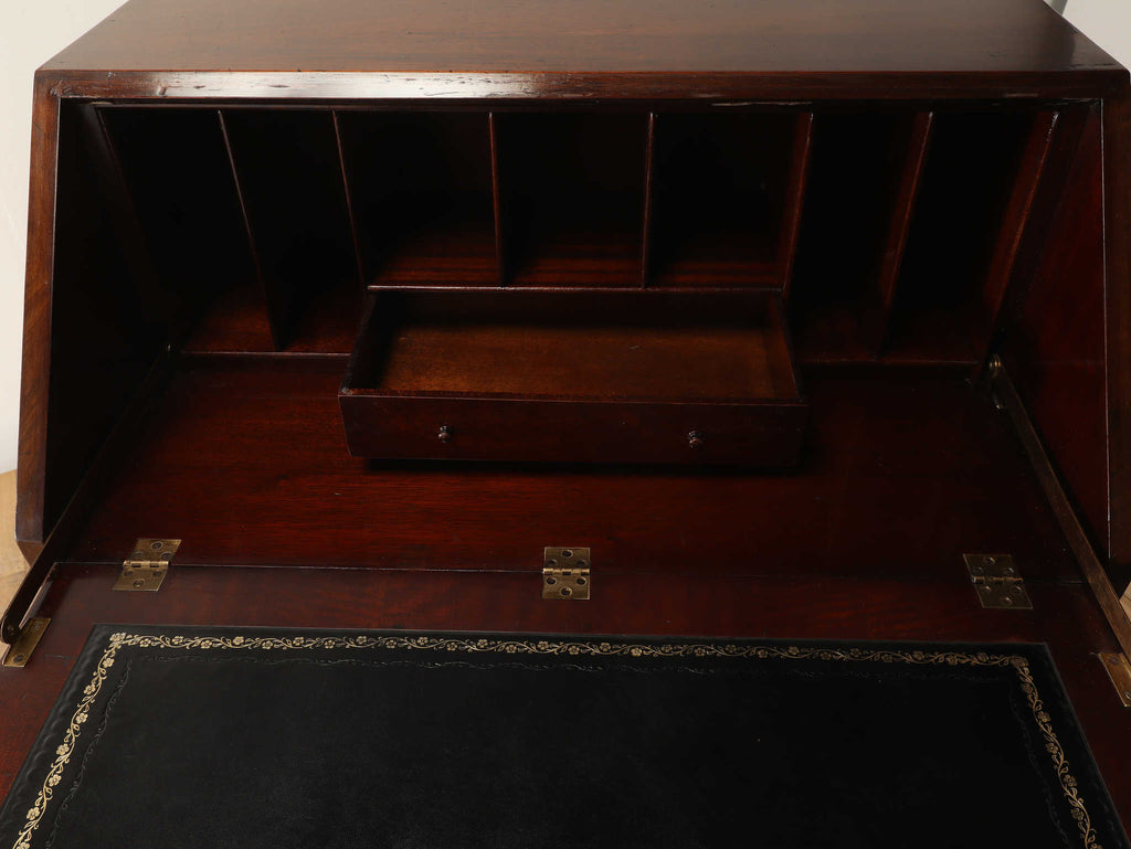 マホガニーの木目が美しいMAPLE & COのビューロー。MAPLE & CO は19世紀初頭にジョンメープルによって設立され、イギリスの貴族と王族の家具の主要メーカーとして人気を博しました。脚元はB&C(ボールアンドクロー)のデザインとなっておりエレガントな印象を一層引き立ててくれています。使うときだけフラップを開いて広く使え、使わない時は閉じてコンパクトにでき実用的。ピジョンホールと呼ばれる内部の戸棚には文庫本や手紙、小物入れ等十分に収納しながらお使いいただけます。