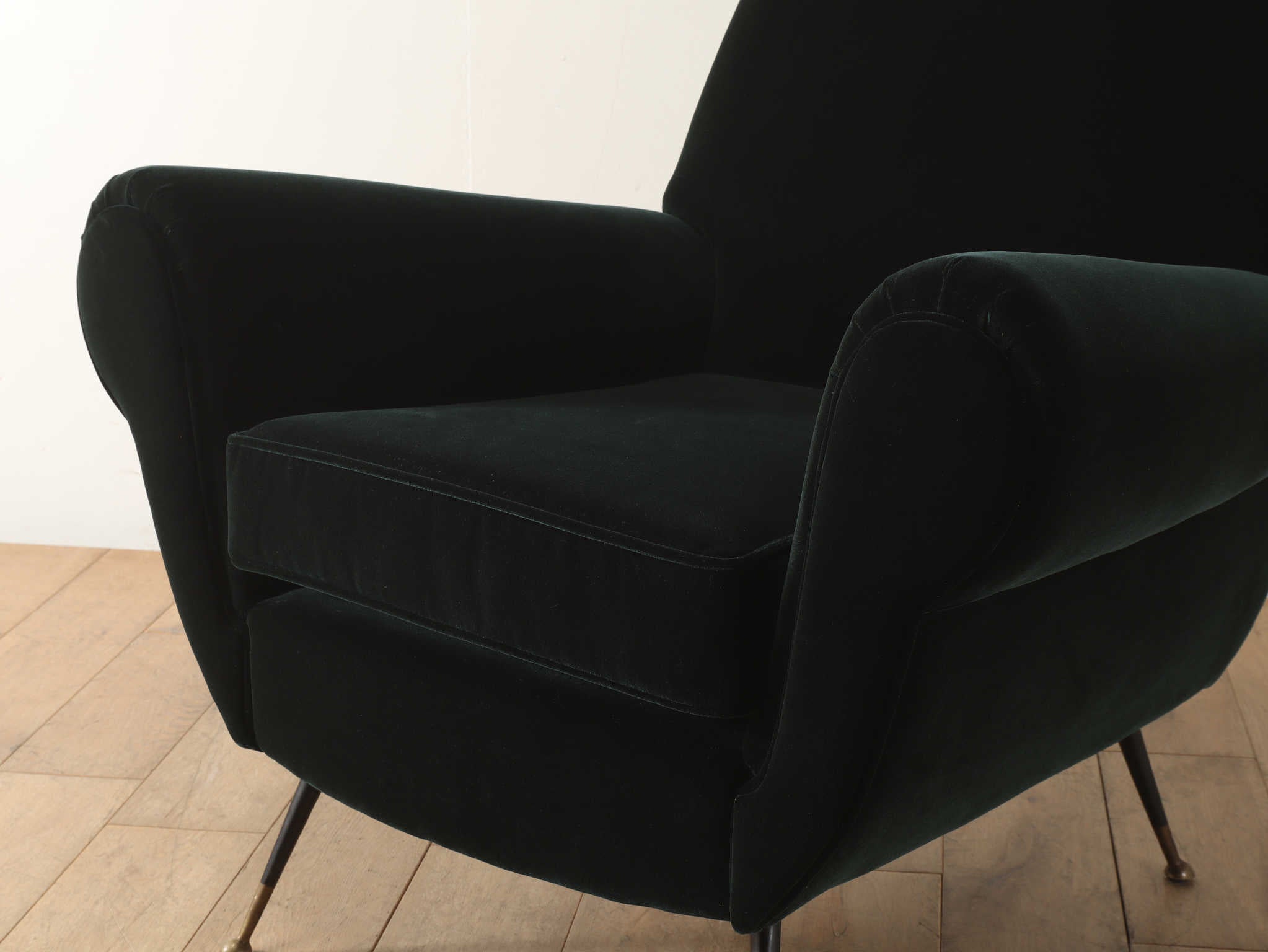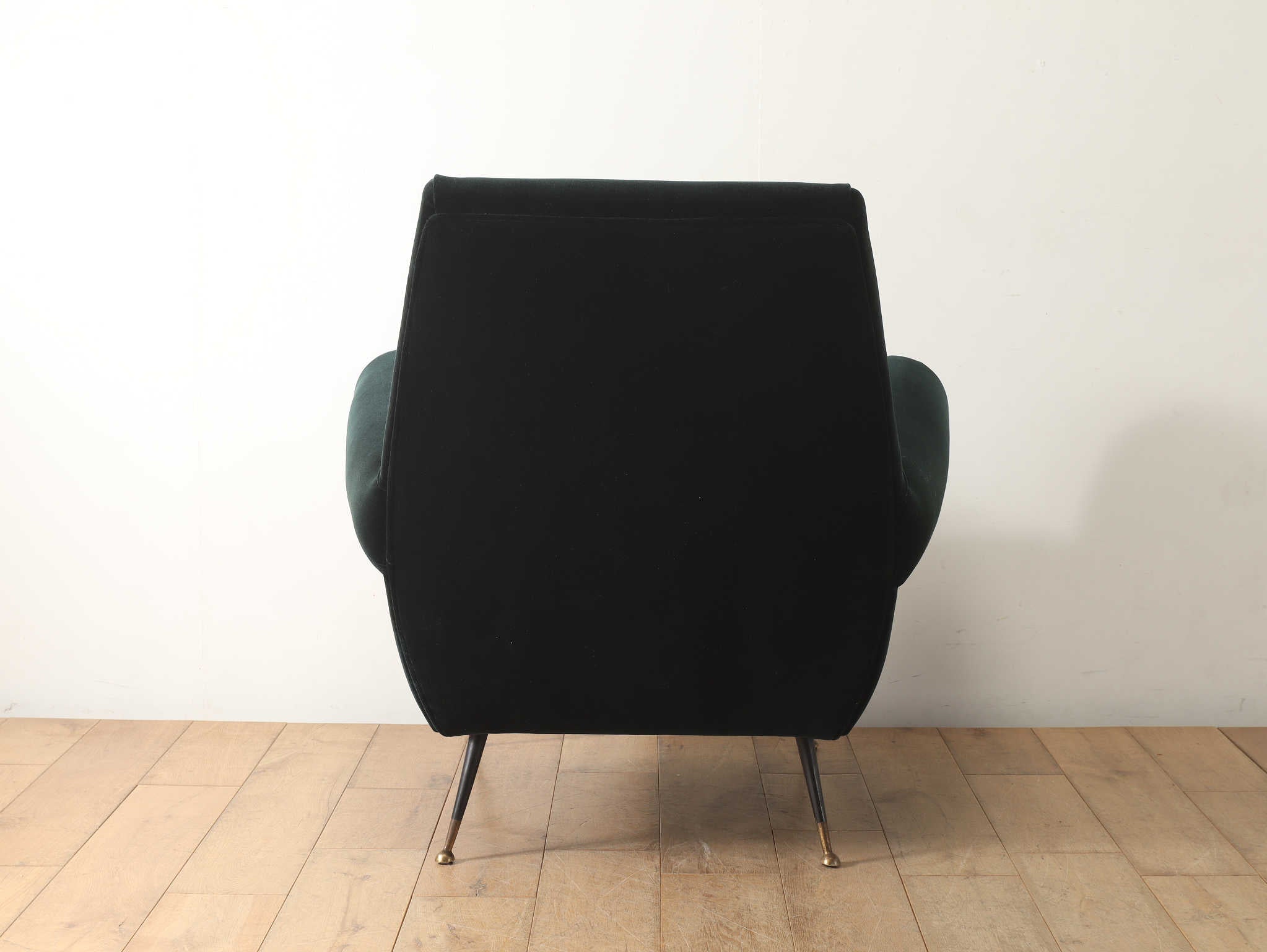 イタリアらしい綺麗なデザインパーソナルソファ。マイチェアをお探しの方におすすめの逸品です。背もたれ部は、高さがあるため体全体を包み込んでくれます。すっきりとしたフォルムと細いブラス製のすらっと伸びた脚は、無駄を削ぎ落としたデザインとなっております。