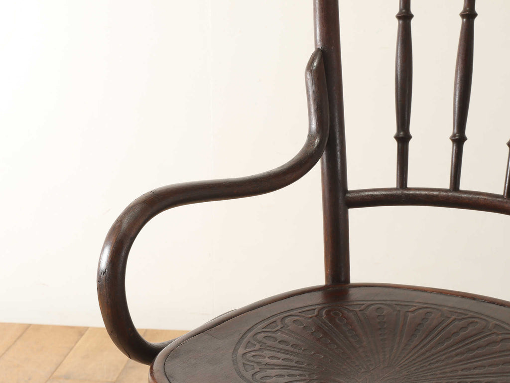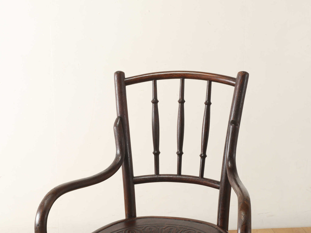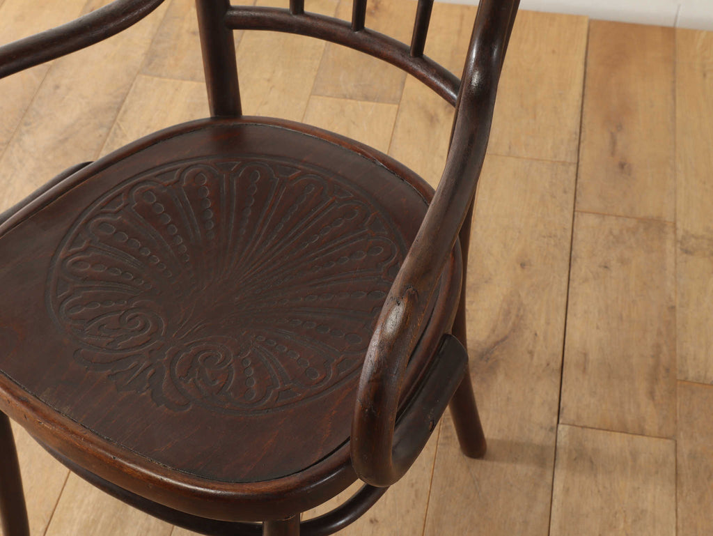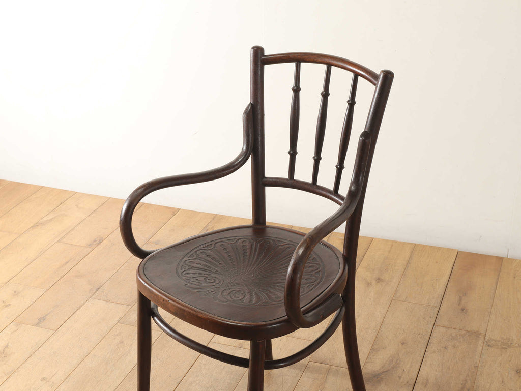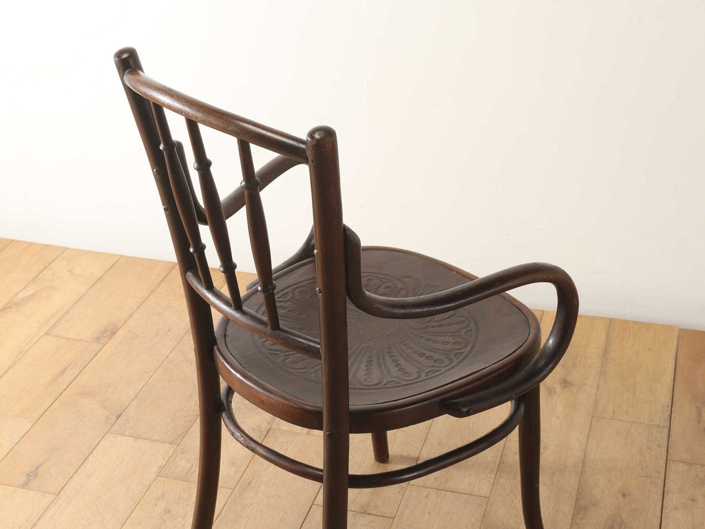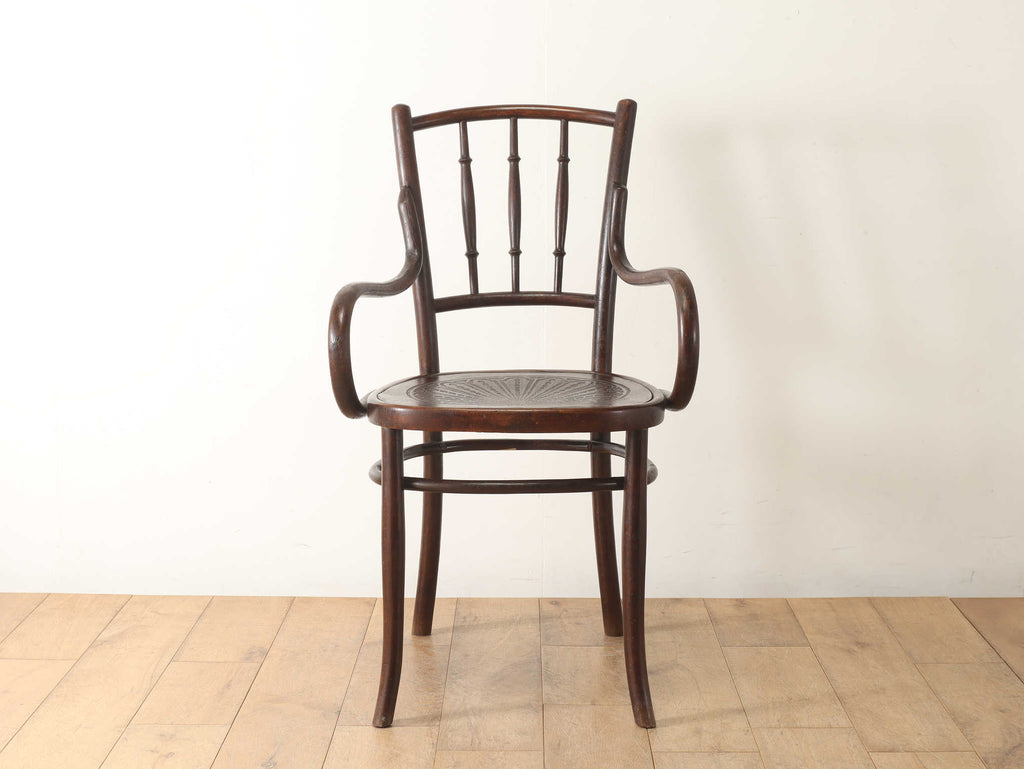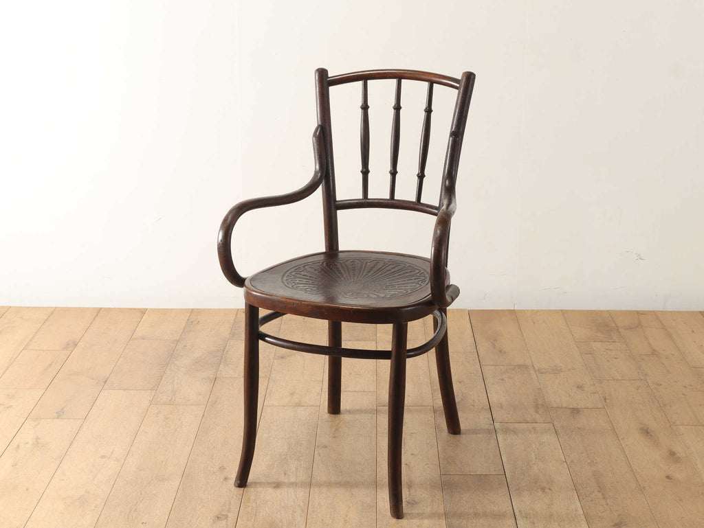 ベントウッドチェアは、蒸気で柔らかくした木材を型にはめて形成するチェアのことです。そのため片手で持ちあげられるほど軽く、美しい曲線を楽しむことができます。種類も多く少しづつ違ったデザインがあるため、お気に入りの一点を見つけるのも楽しいです。こちらは、背もたれがバンブー(竹)をイメージしています。一人がけのリビングチェアとして、またダイニングチェアとしてもお勧めな商品です。