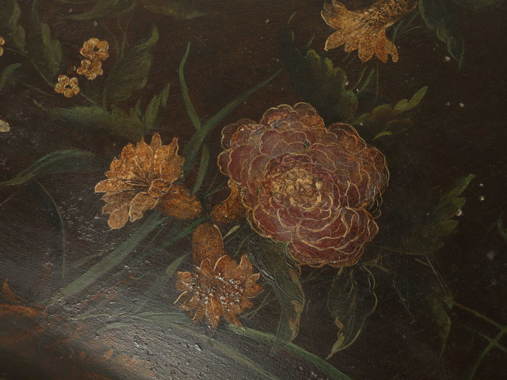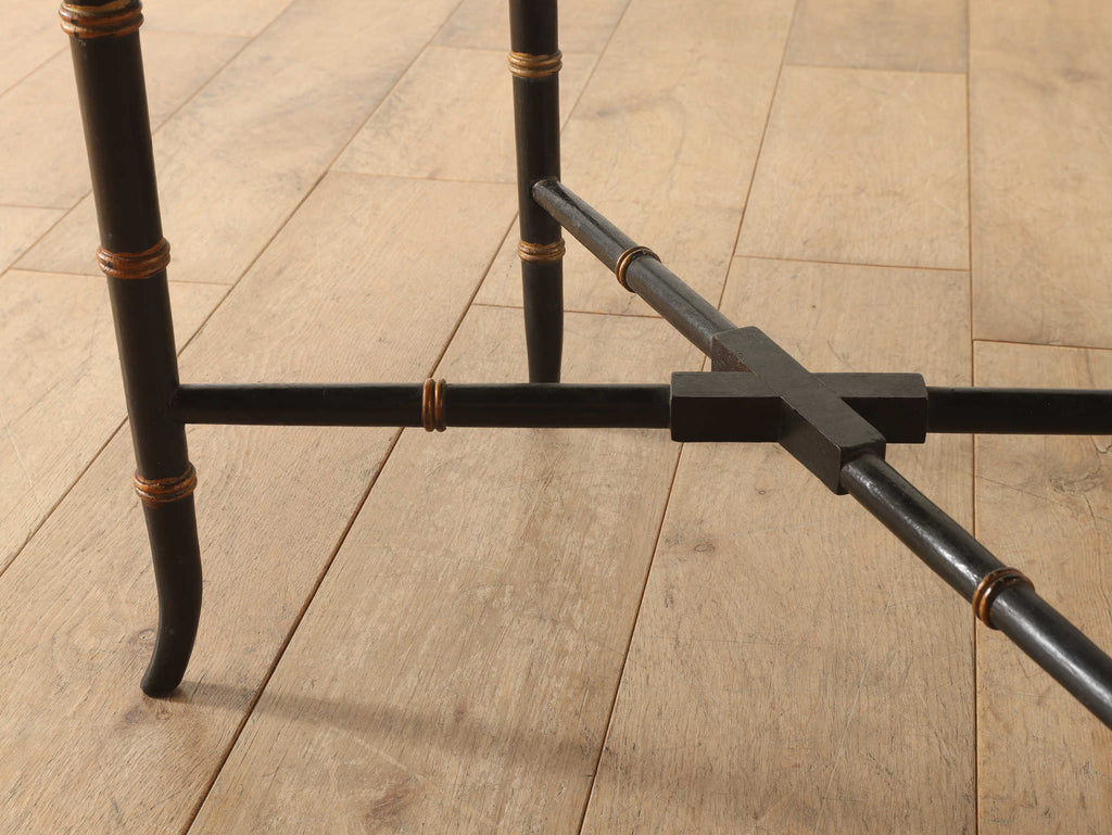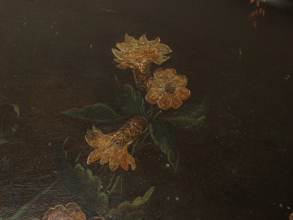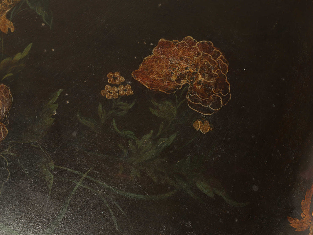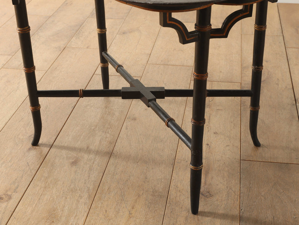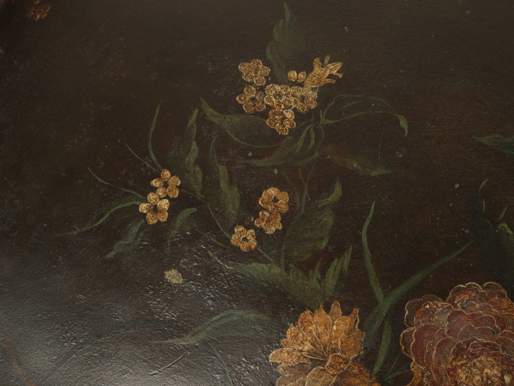 1900年代推定、イギリスのトレイ型テーブル。シノワズリのデザインが美しいアイテムです。トレイ部分のメタル素材の特徴を活かした繊細なデザインがとても魅力的です。