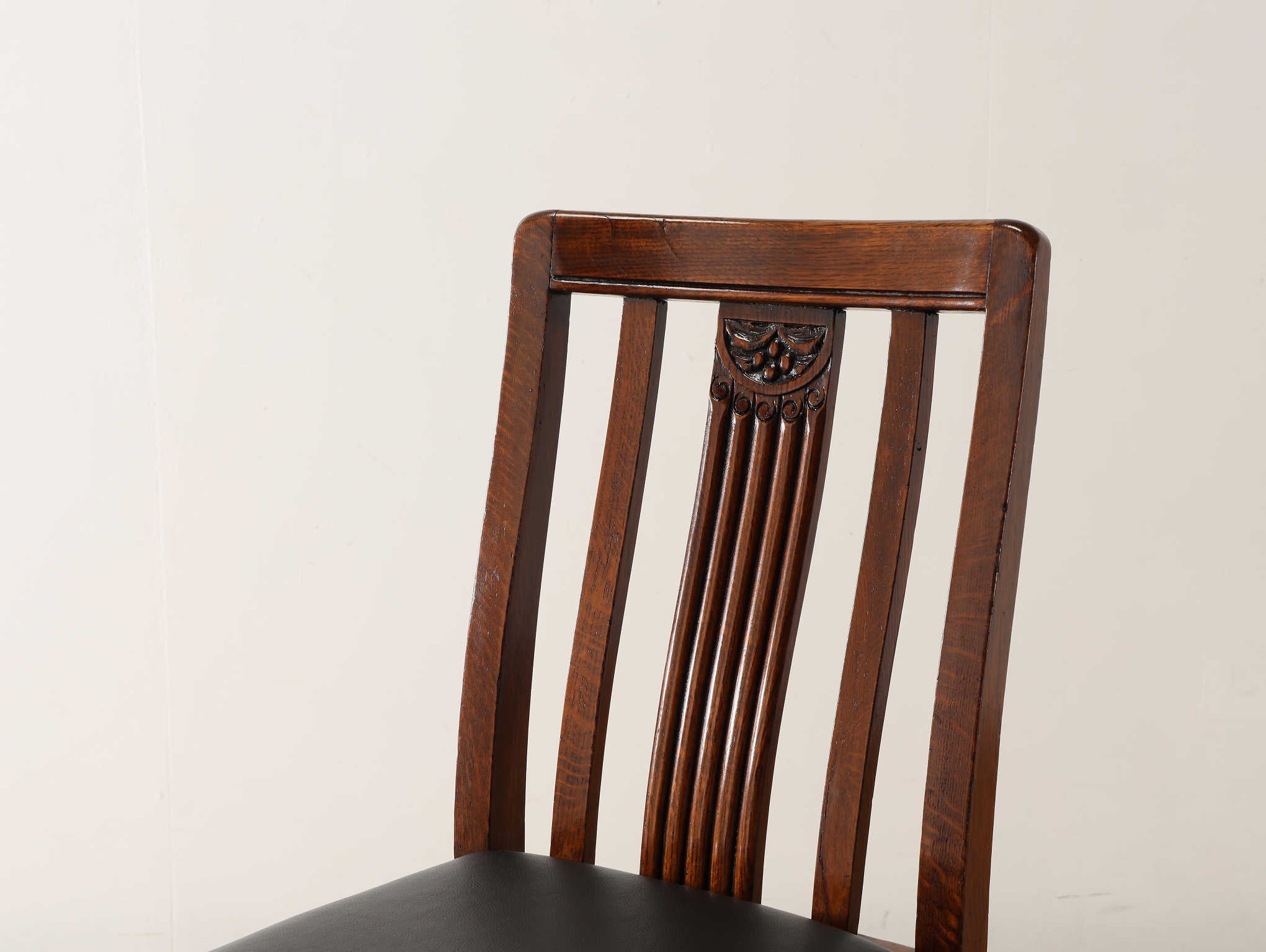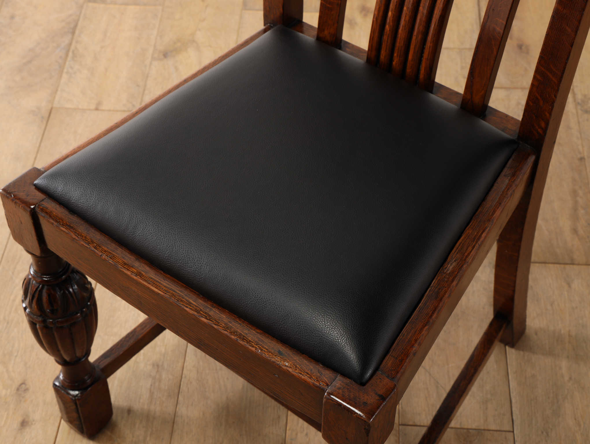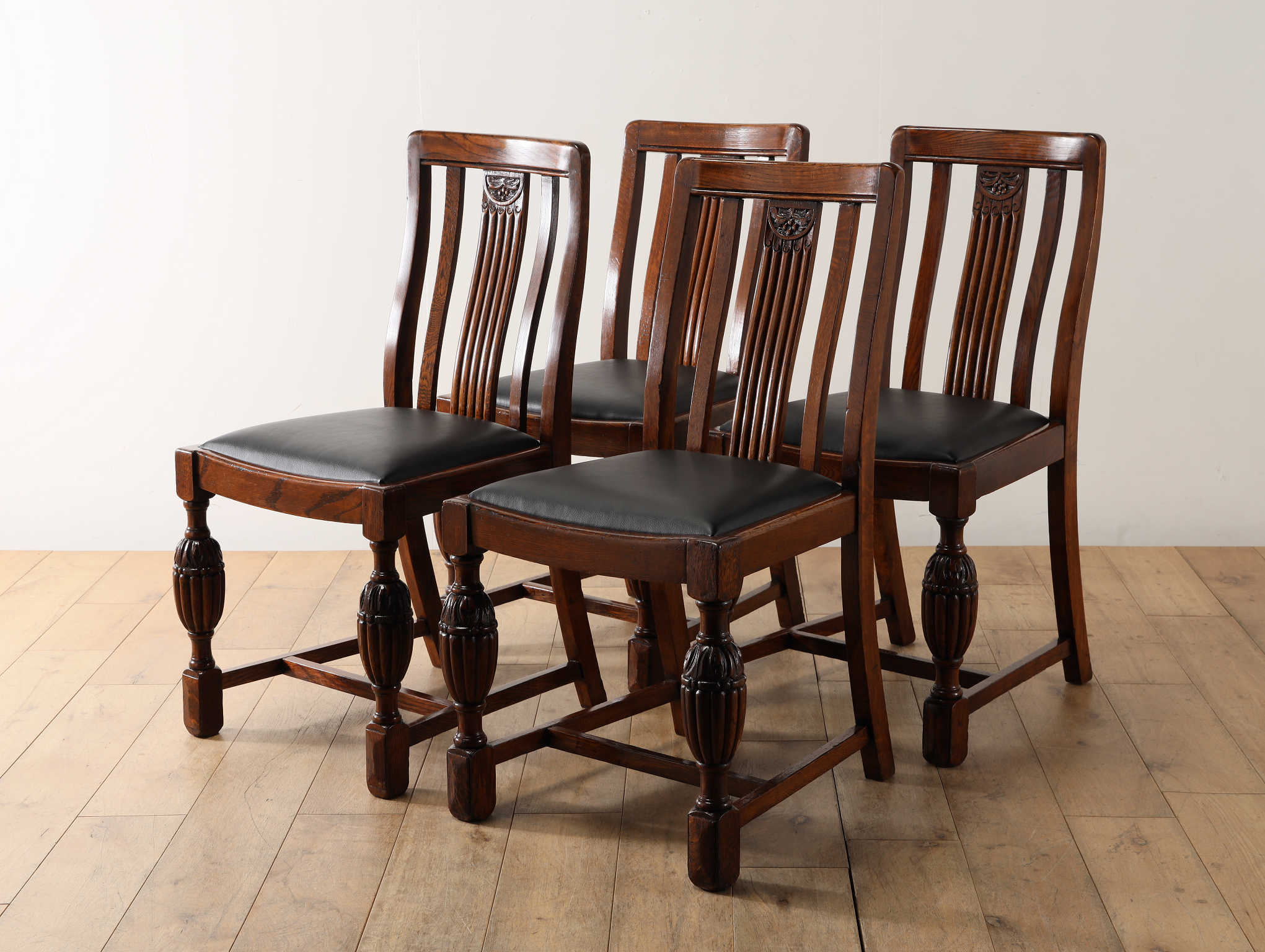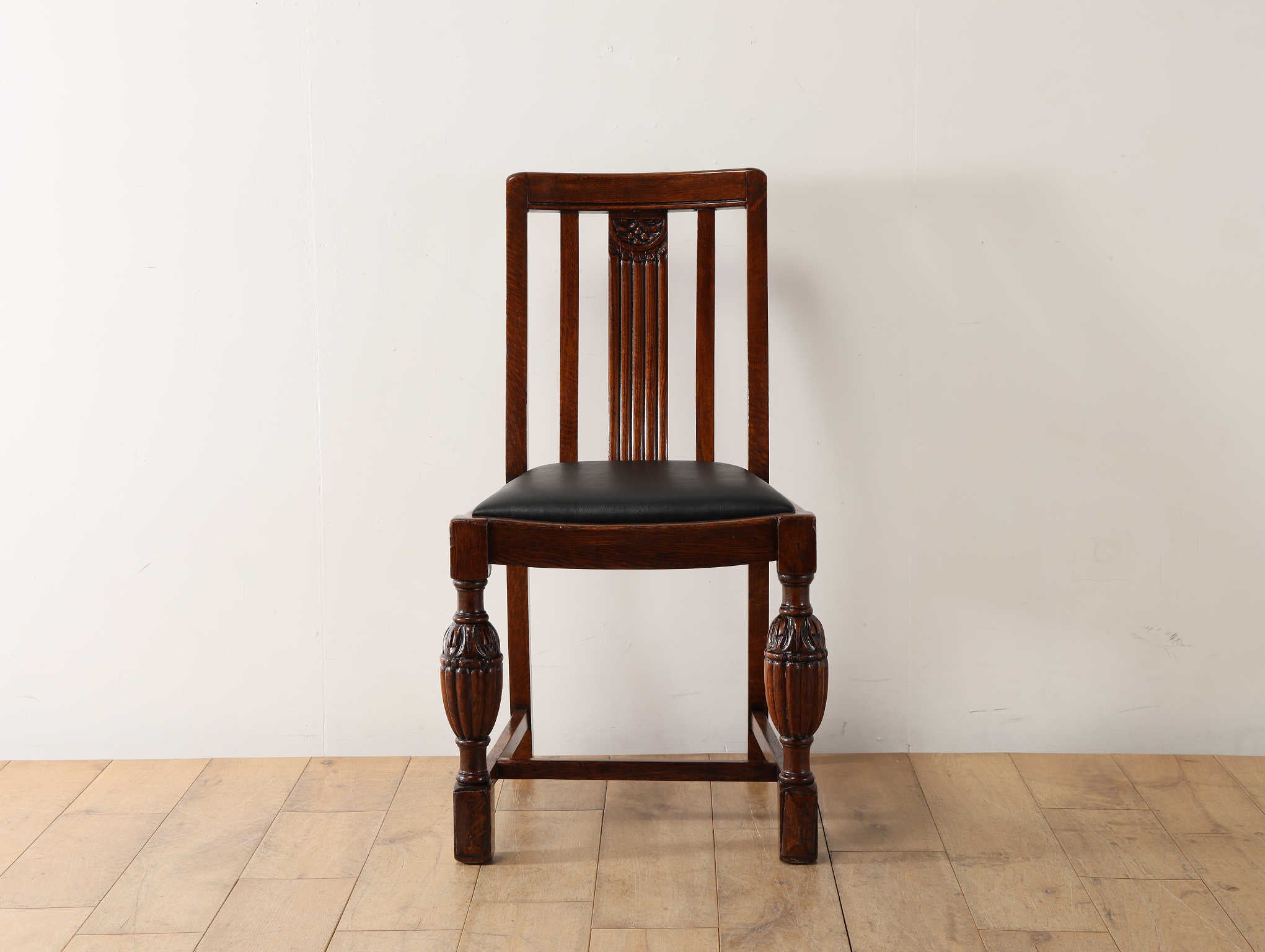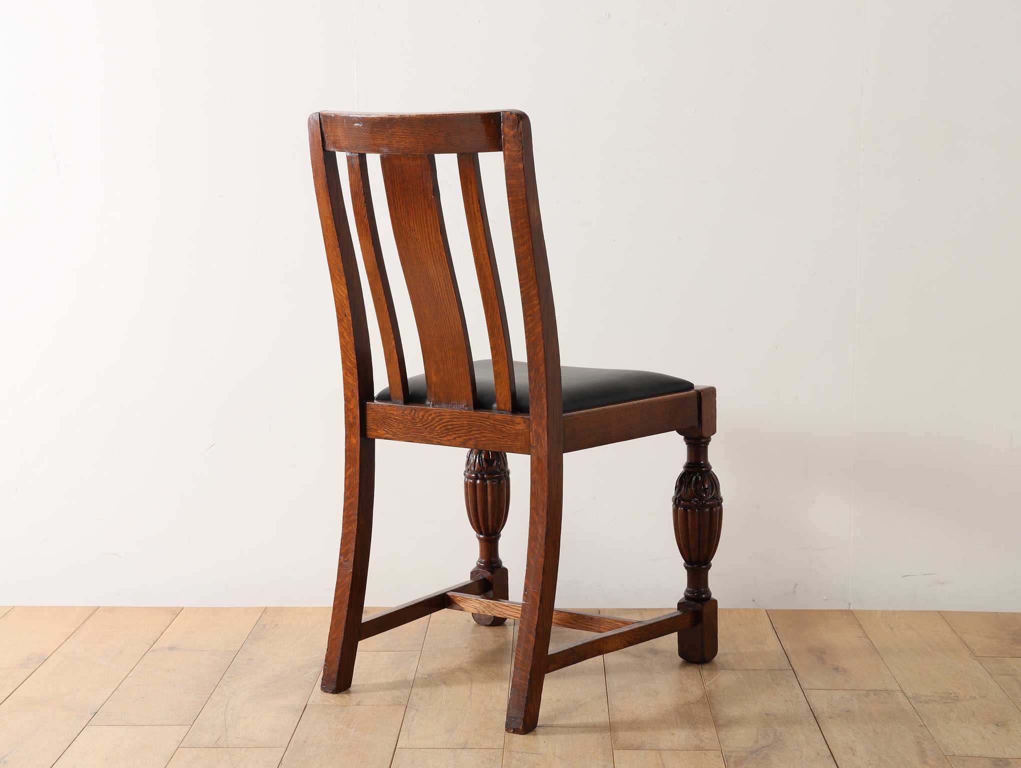 アンティークのダイニングチェアとして定番のオーク材のチェア。硬く、伸縮性の少ないというメリットを活かし、無垢材で用いられることが多く、特に耐久性が求められるダイニングチェアの材として重宝されてきました。無垢ならではの立体感のある装飾を施されたものから、シンプルなデザインまで、そのデザイン無数に存在します。座面は落とし込みタイプと呼ばれるもので、簡単に座面のみ外せる構造が一般的。張替えのし易さや、場面に応じて生地を変えられたりと、長く愛用頂ける構造です。是非、色々な座り心地を試して頂き、自分にピッタリのチェアを探してみてください。