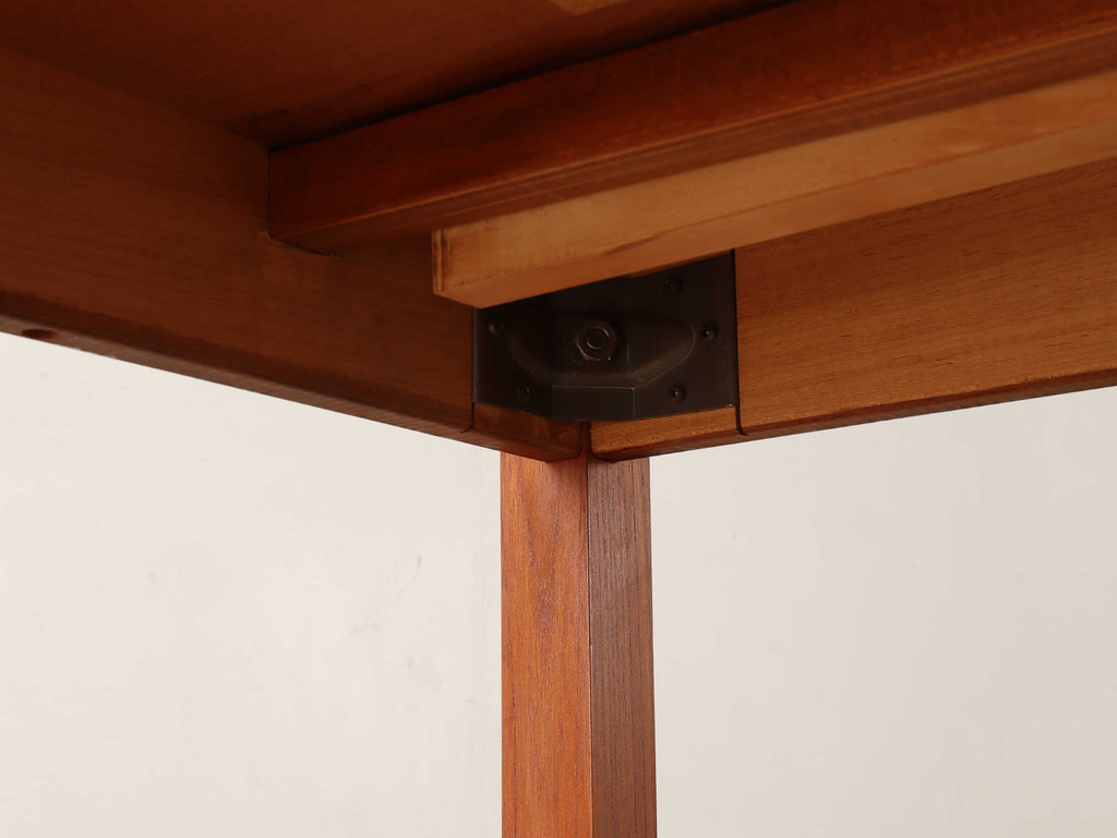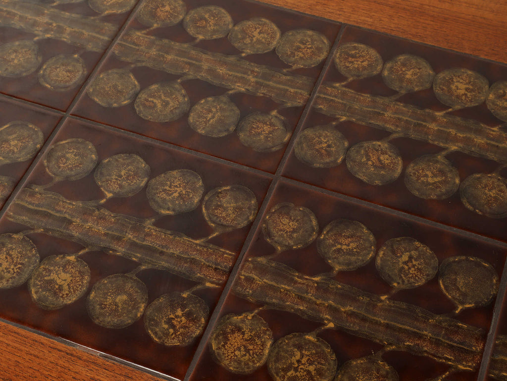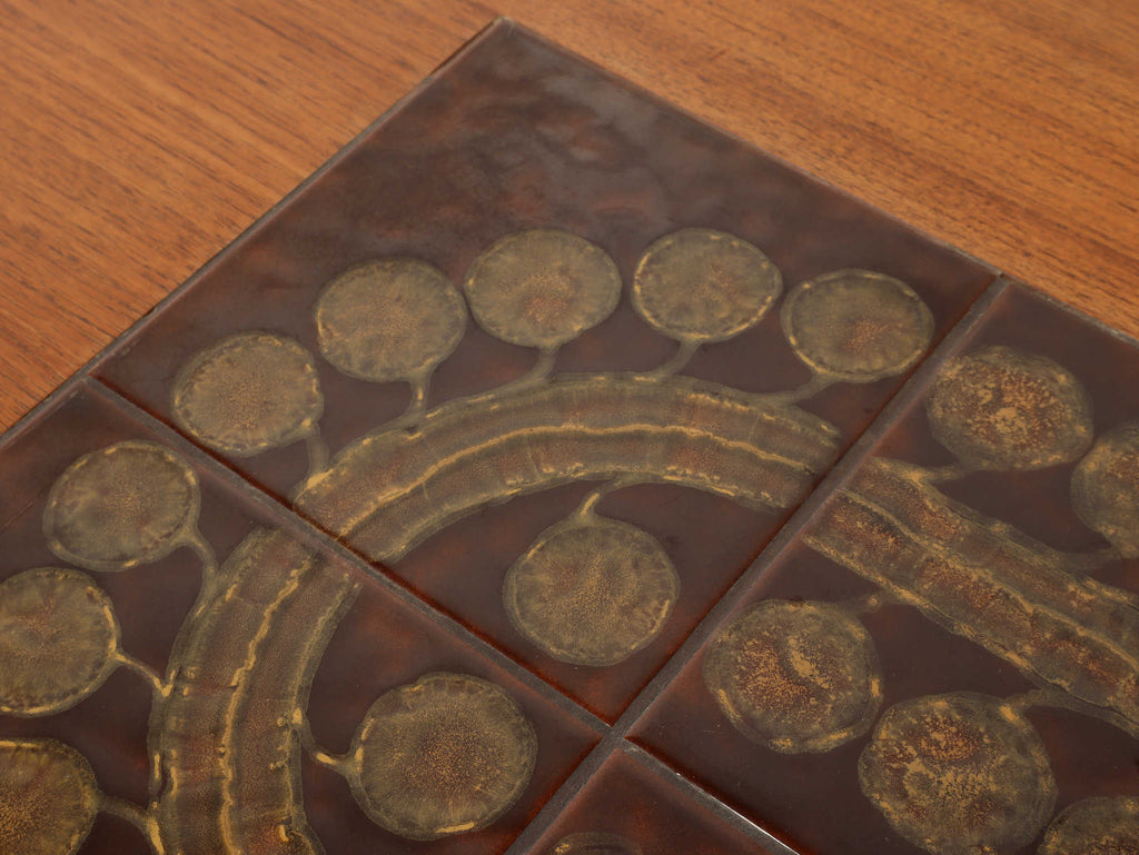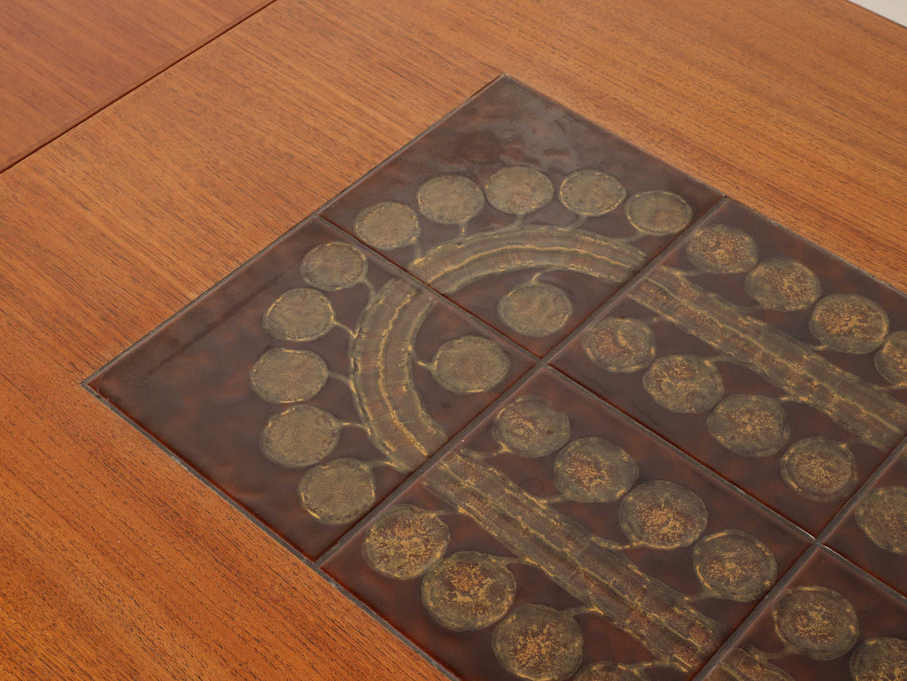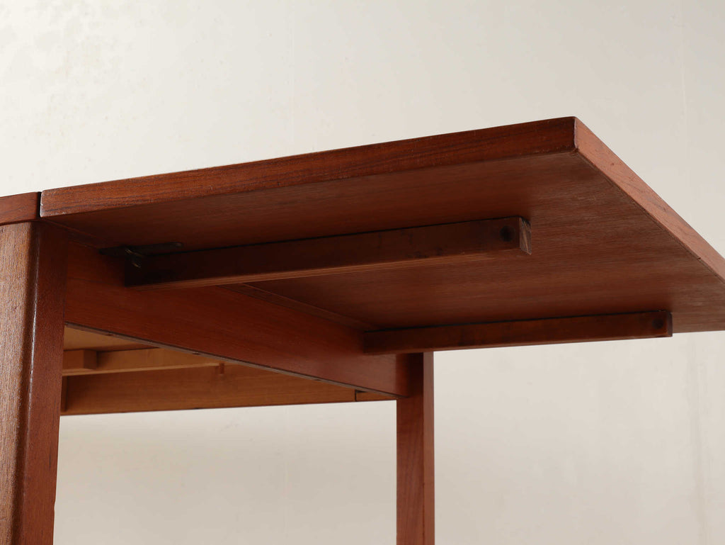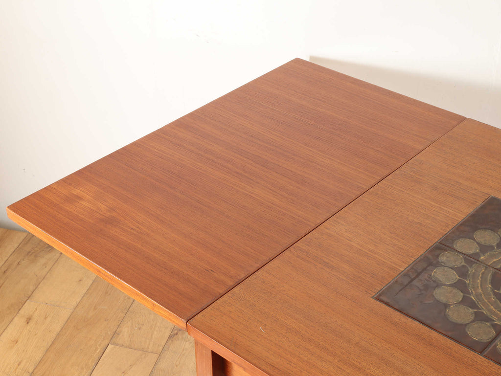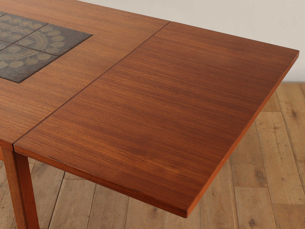 1960年代(推定)のデンマークで作られたタイルトップダイニングテーブル。特徴的なタイルの絵柄に、思わず目を奪われる逸品です。タイル部分は、コップや花瓶など水物を気にせず置くことができ、扱いやすいといったメリットがあります。こちらのテーブルは天板を折りたたむことがき、開くと2400mm、折りたたむと1480mmと人数に合わせちょうどよい大きさでお使いいただけます。タイルトップダイニングテーブルで、食卓を彩ってみてはいかがでしょうか。