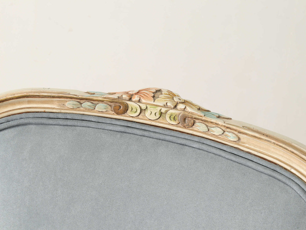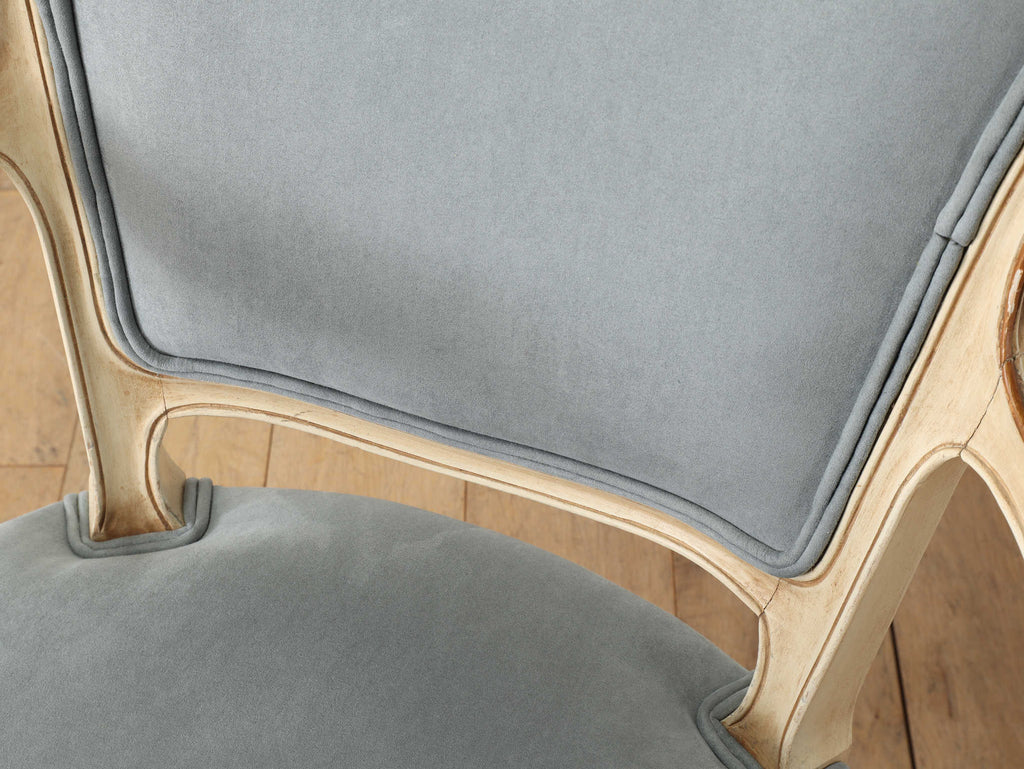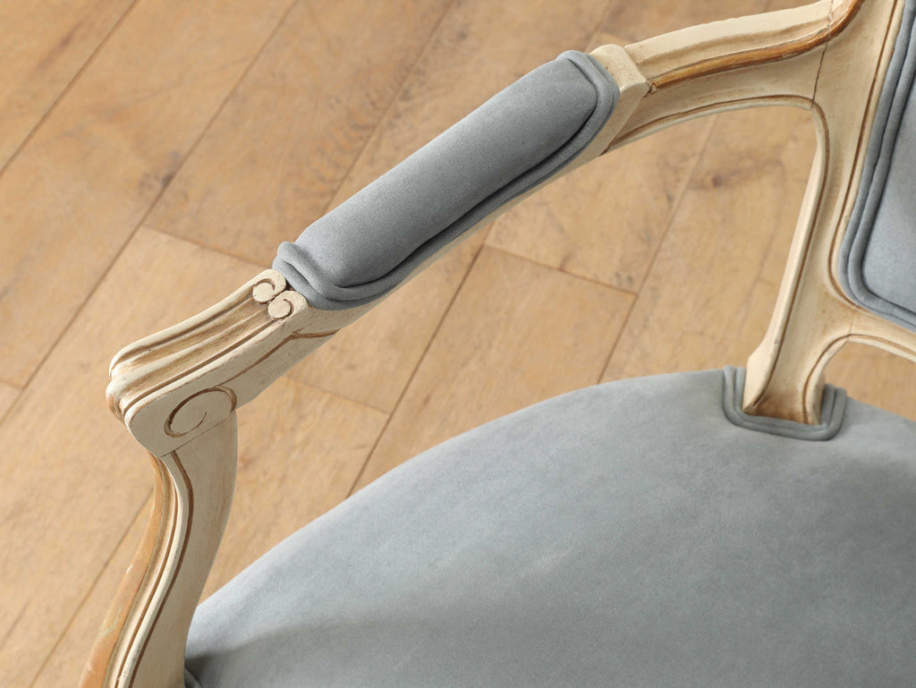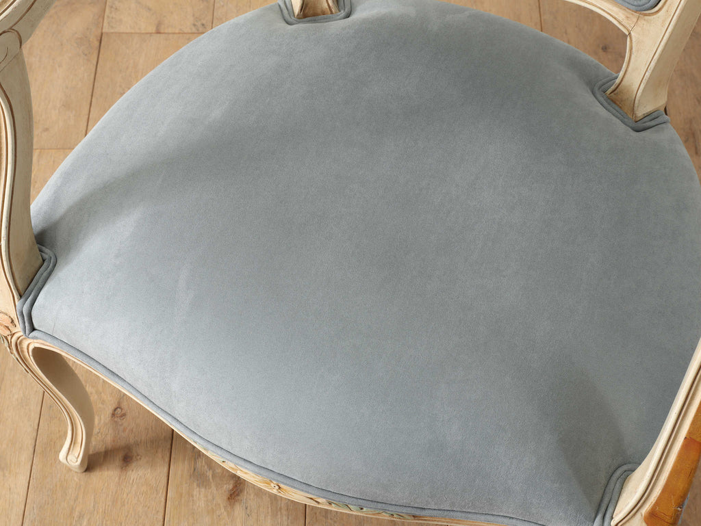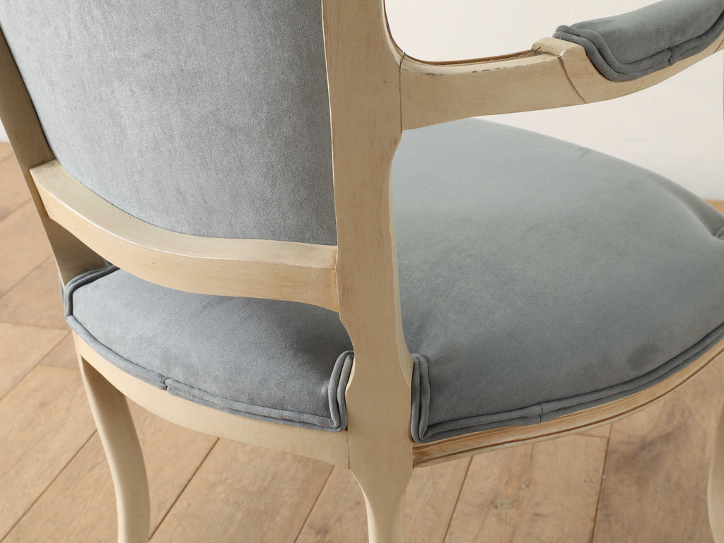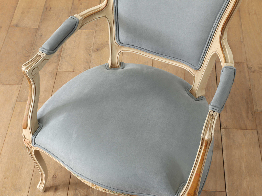 ホワイトペイントフレームに花々が散りばめられた、エレガントな佇まいのフレンチアームチェア。優美なシルエットは大変美しく、そこにあるだけで主役になるチェアです。まるで映画の世界に入り込んだような空間をつくりあげる1脚です。お気に入りのマイチェアとして、インテリアのアクセントとして、お部屋に取り入れてみてはいかがでしょうか。