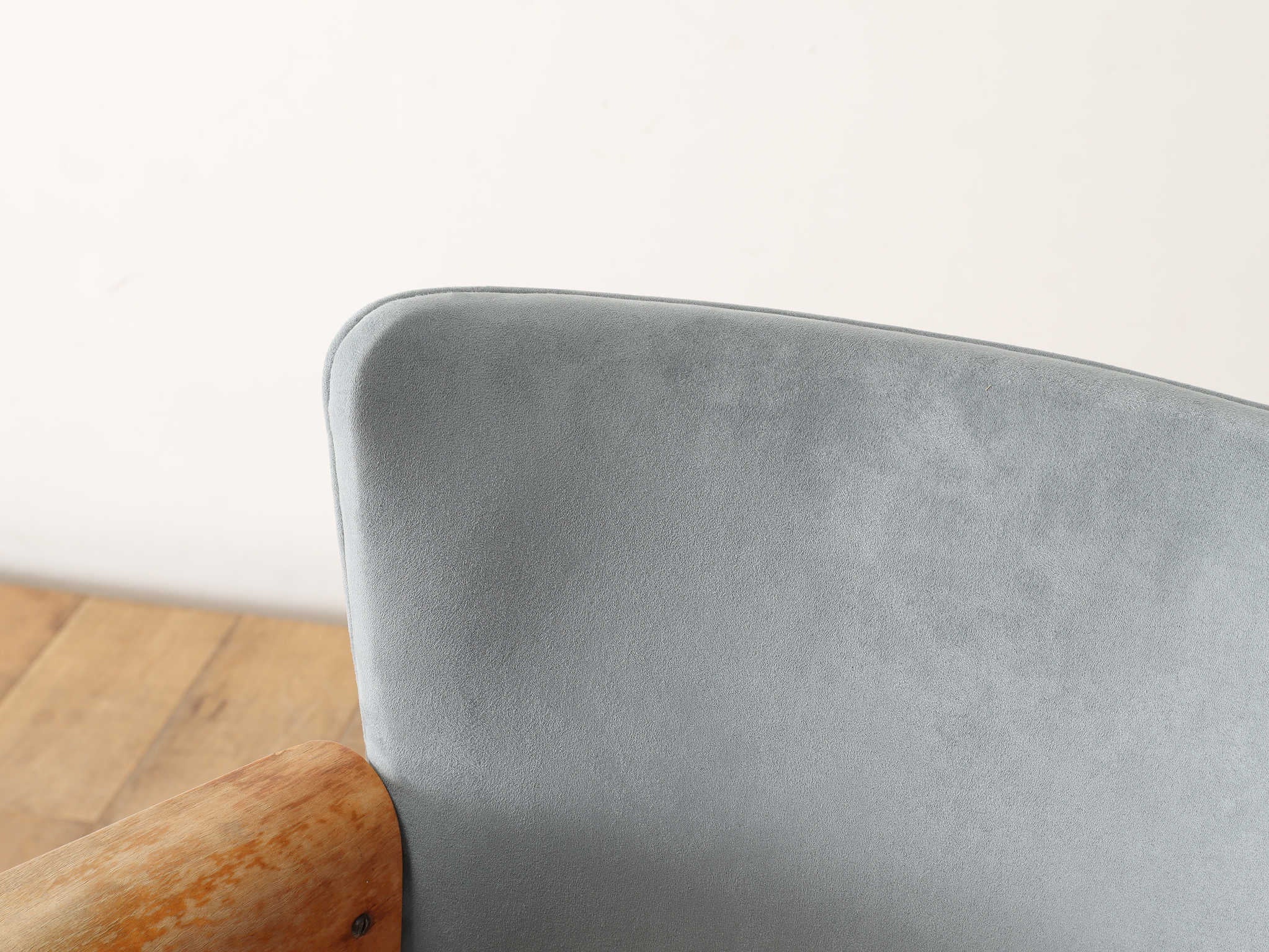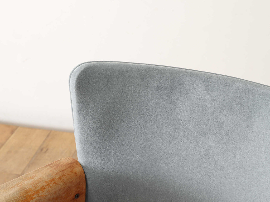 スウェード調生地を使用しており、上品な光沢感となめらかな肌触りが特長です。ひっかき傷も目立ちにくく、毛足が短いためお手入れが簡単です。生地と中材は国内で張替えています。