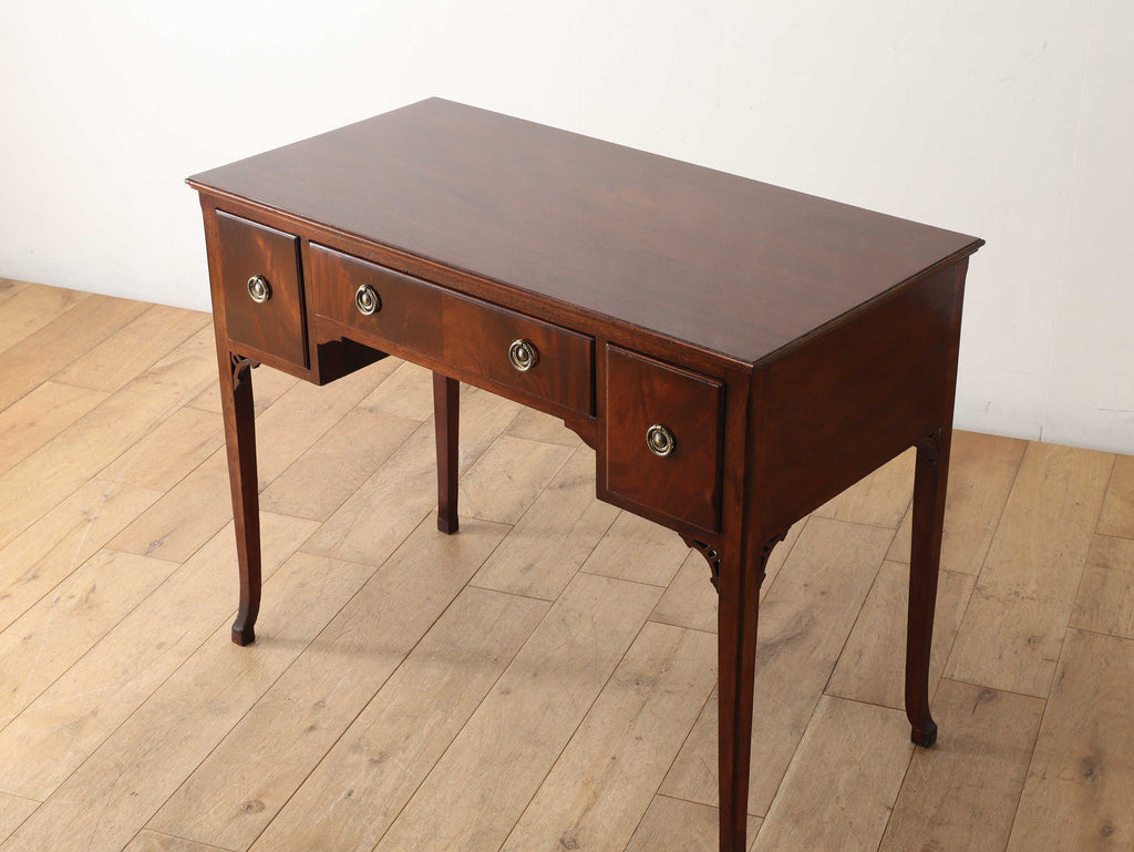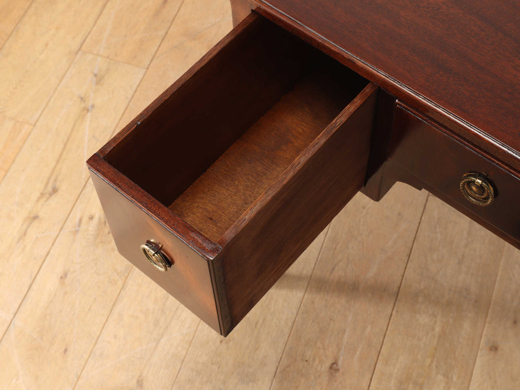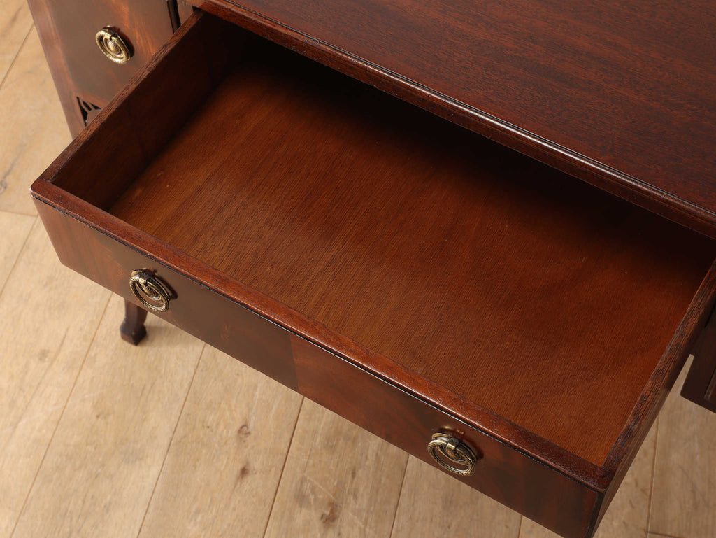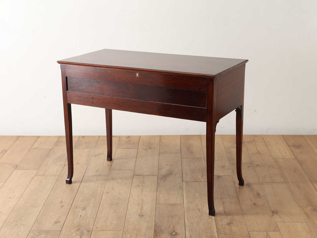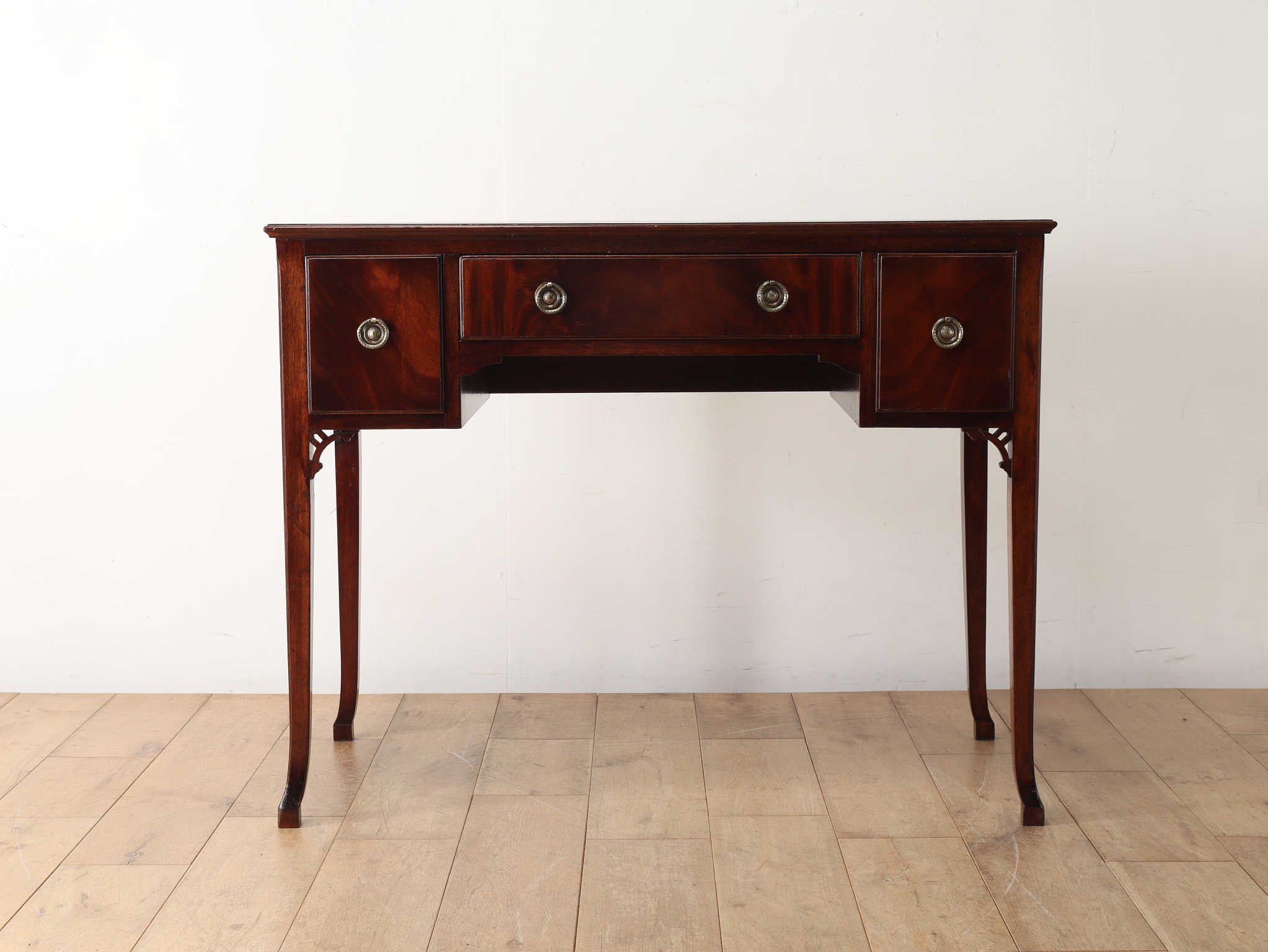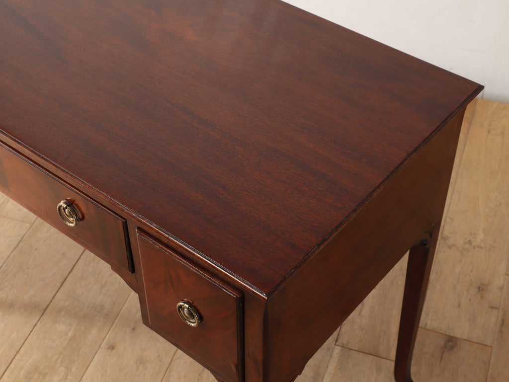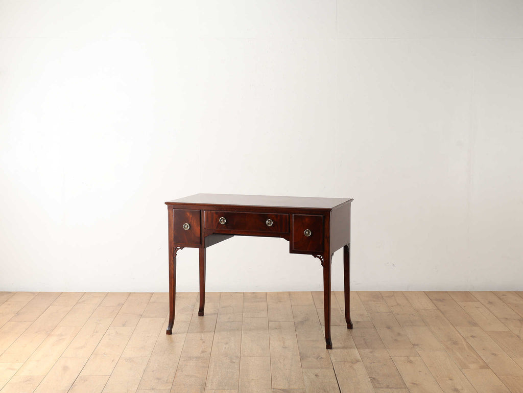 HYPNOS CABINETSメーカーのマホガニー材のライティングデスク。その名の通り、当時はお手紙を書くテーブルとして作られました。サイズが小振りなのが特徴で、コンソールとして、パソコンデスクとして、コンソールテーブルしてもご利用いただける高級感の有る一台です。マホガニーの美しい杢目がシンプルなデザインのスタイルを一際引き立ててくれます。リビングや書斎になど様々なシーンでご利用頂けます。