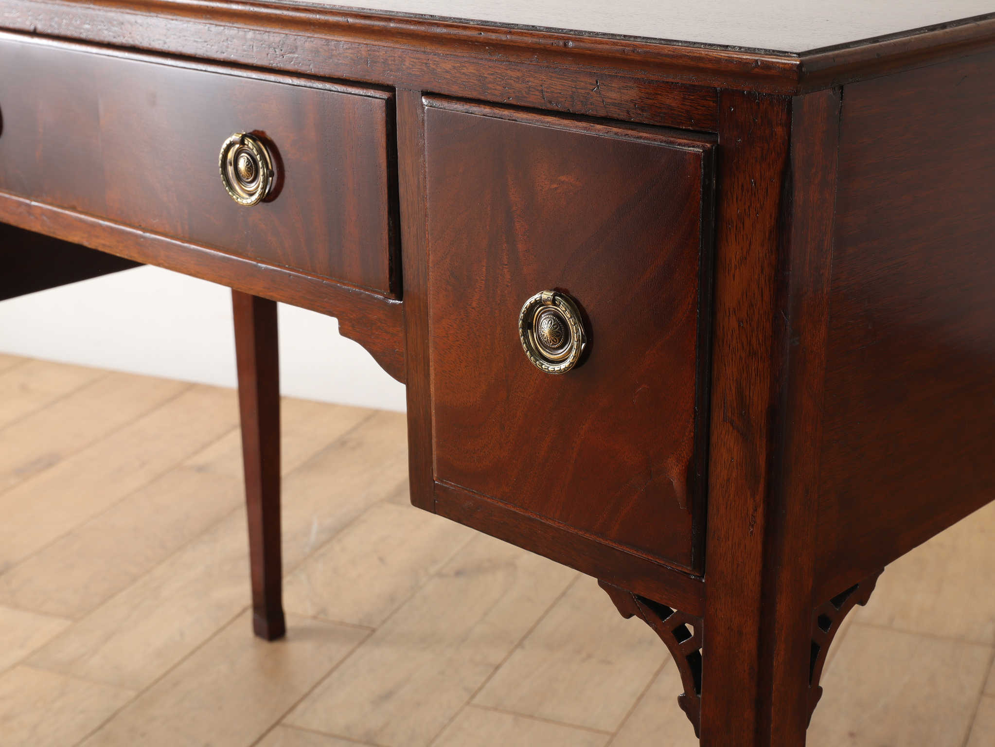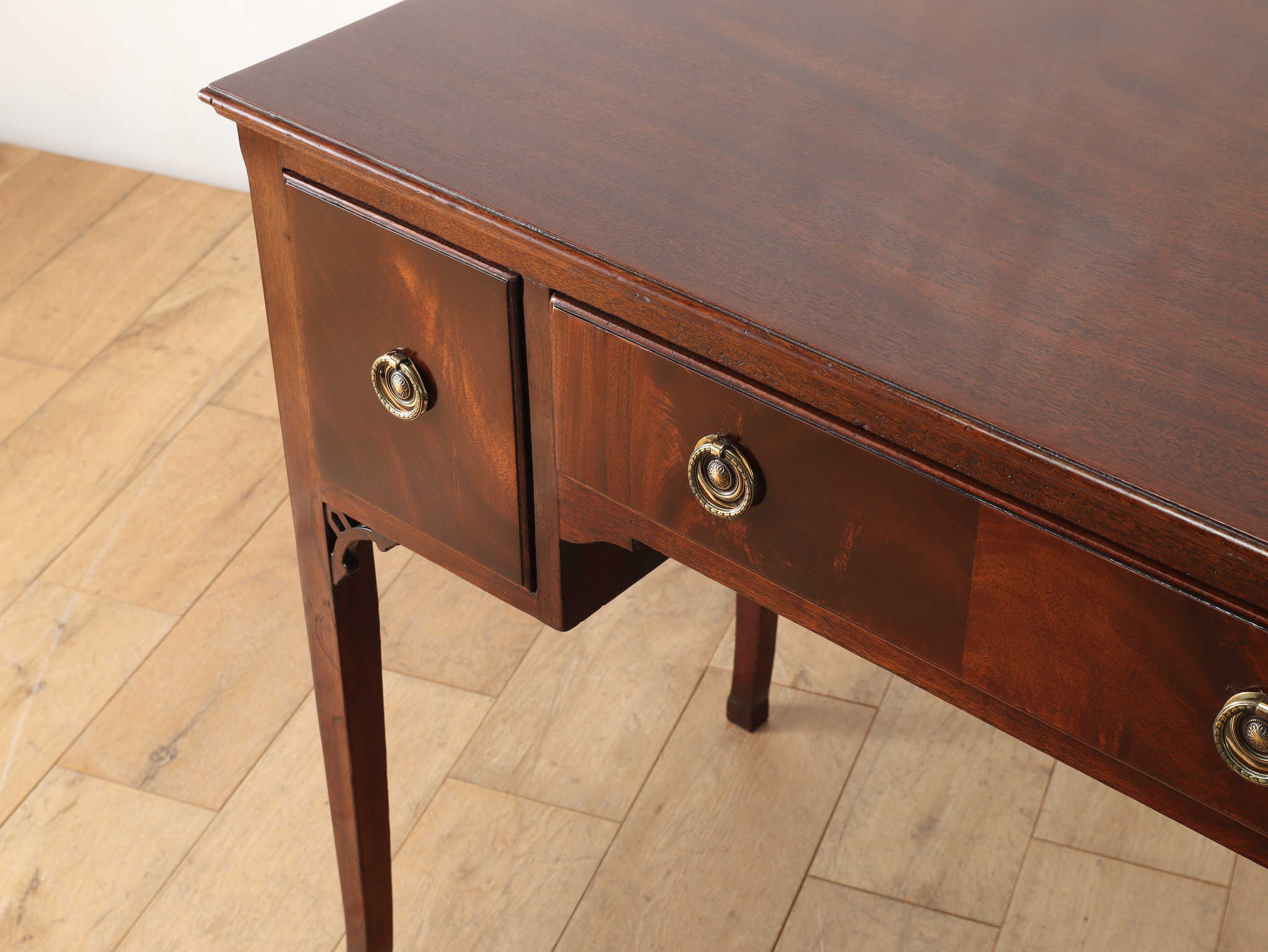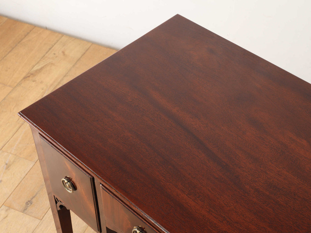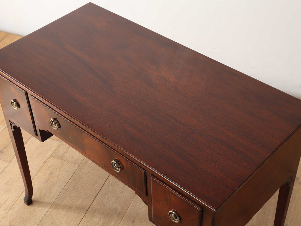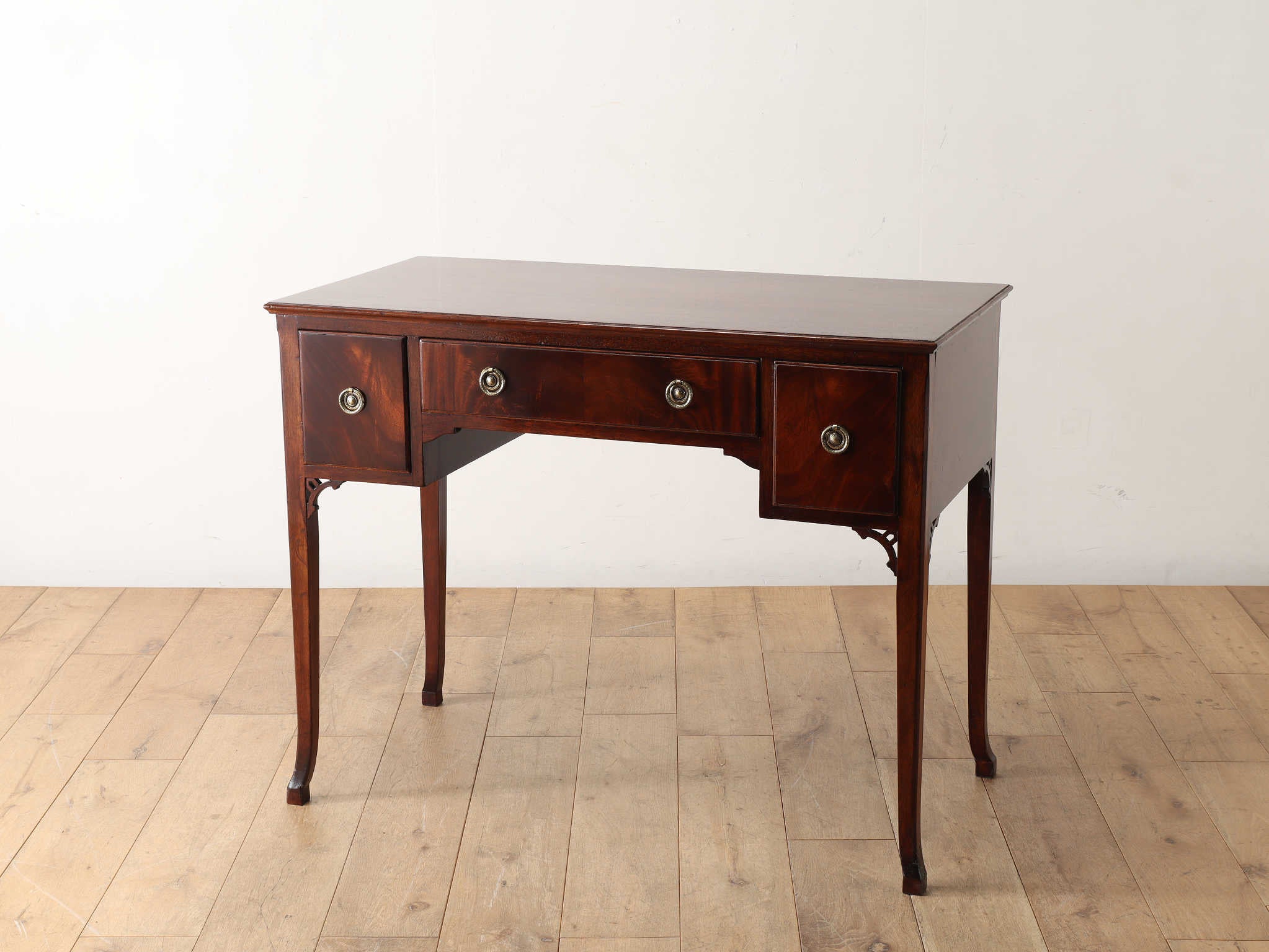 HYPNOS CABINETSメーカーのマホガニー材のライティングデスク。その名の通り、当時はお手紙を書くテーブルとして作られました。サイズが小振りなのが特徴で、コンソールとして、パソコンデスクとして、コンソールテーブルしてもご利用いただける高級感の有る一台です。マホガニーの美しい杢目がシンプルなデザインのスタイルを一際引き立ててくれます。リビングや書斎になど様々なシーンでご利用頂けます。