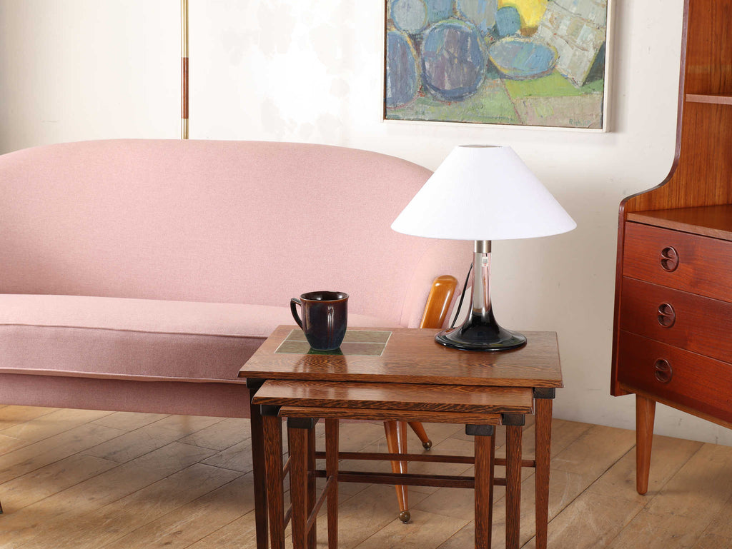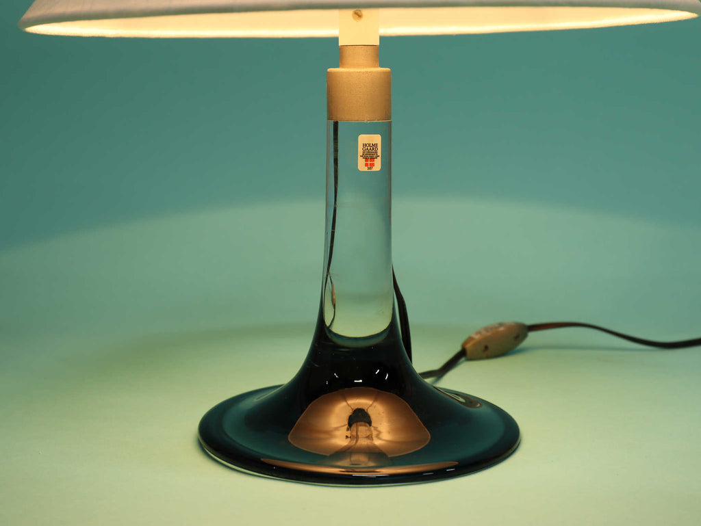 美しい色と曲線のテーブルランプはHOLMEGAARD(ホルムガード)デザインの物。デンマークで1825年に創業した、伝統と歴史あるデンマーク王室御用達のガラスブランド。小さな工房からスタートし、1900年代から高度な技術を持つ吹きガラス職人やアーティストとの協働で、数々の作品を生み出していきました。美しいガラスと灯りを生活に取り入れてみてはいかがでしょうか。