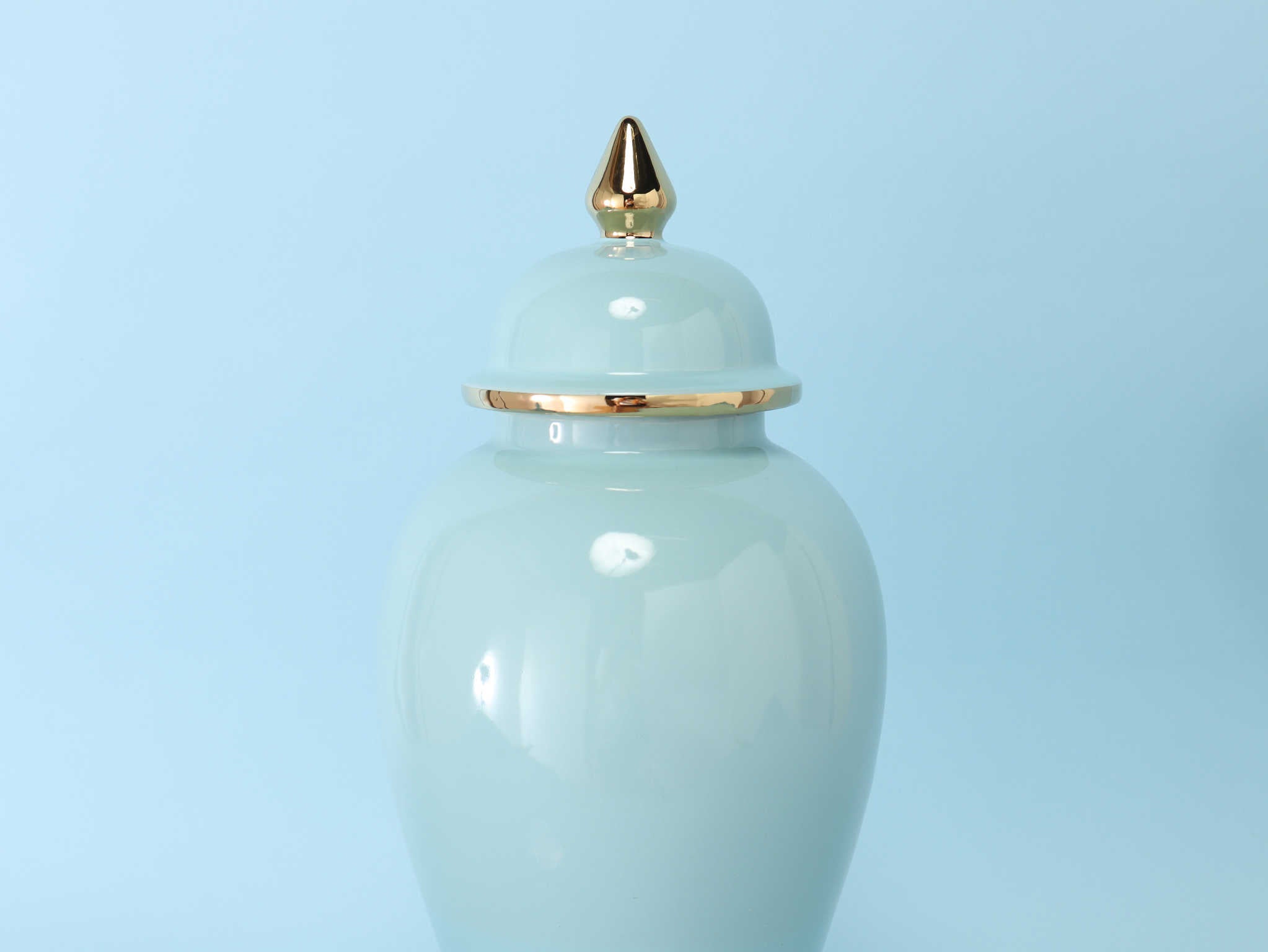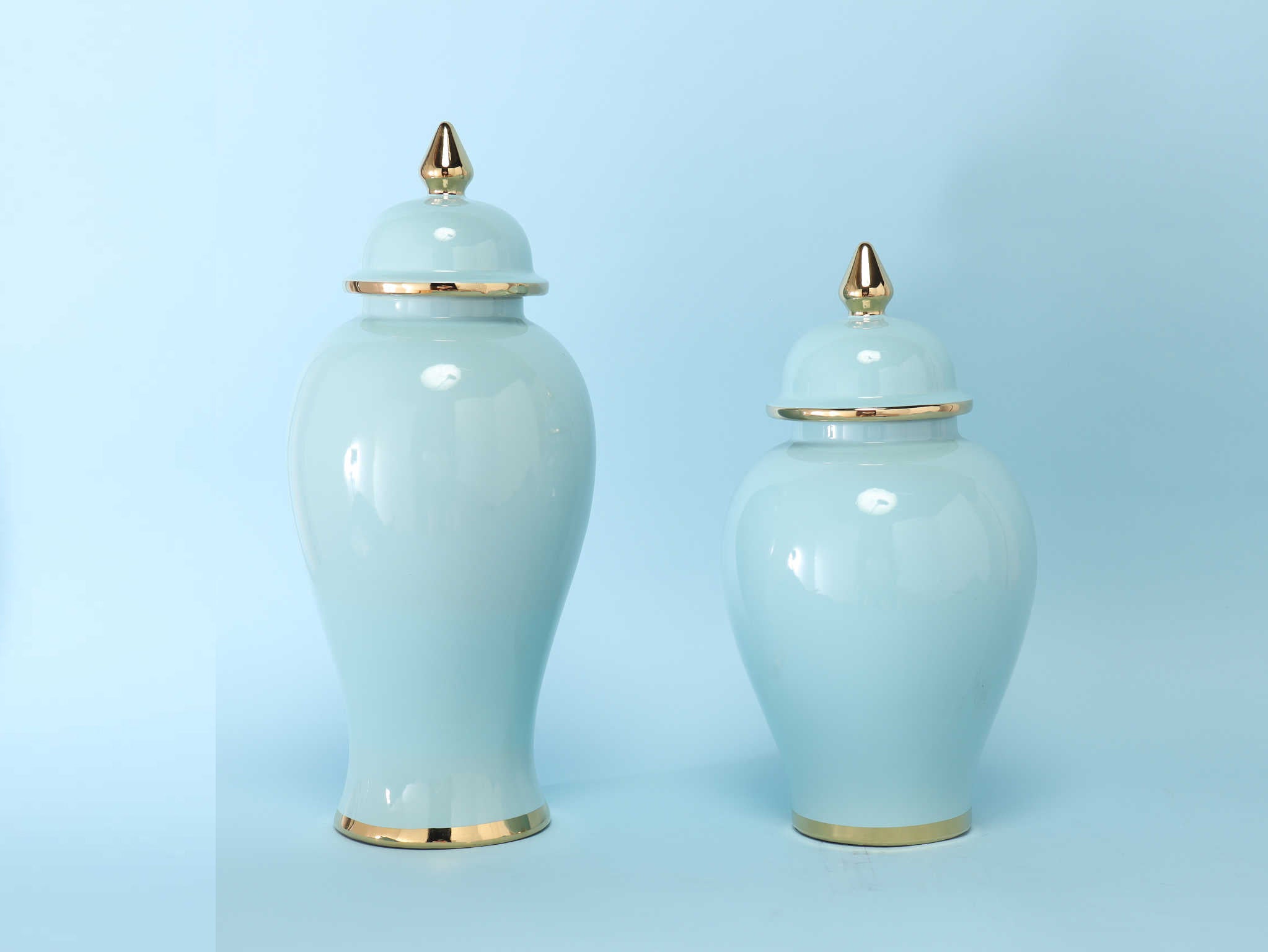 さわやかなスカイブルーのセラミックバーズ。デザインはオリエンタルな形状ですが、セラミック独特の艶感やゴールドのフレーミングもあいまってモダンな印象も見られる仕様になっています。サイズは大小あり、サイズ違いのペアで飾ってデコレーションしてみるのも良いですね。