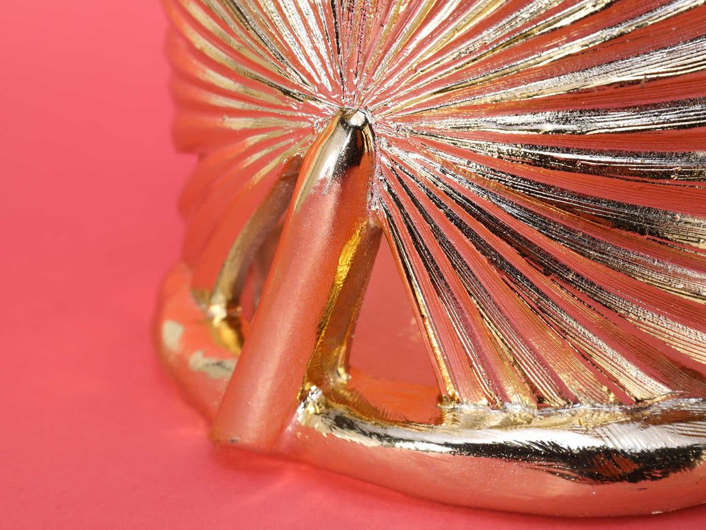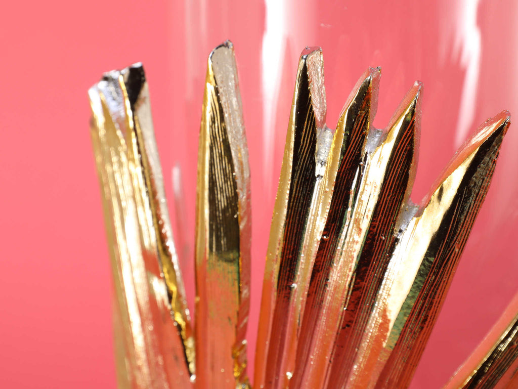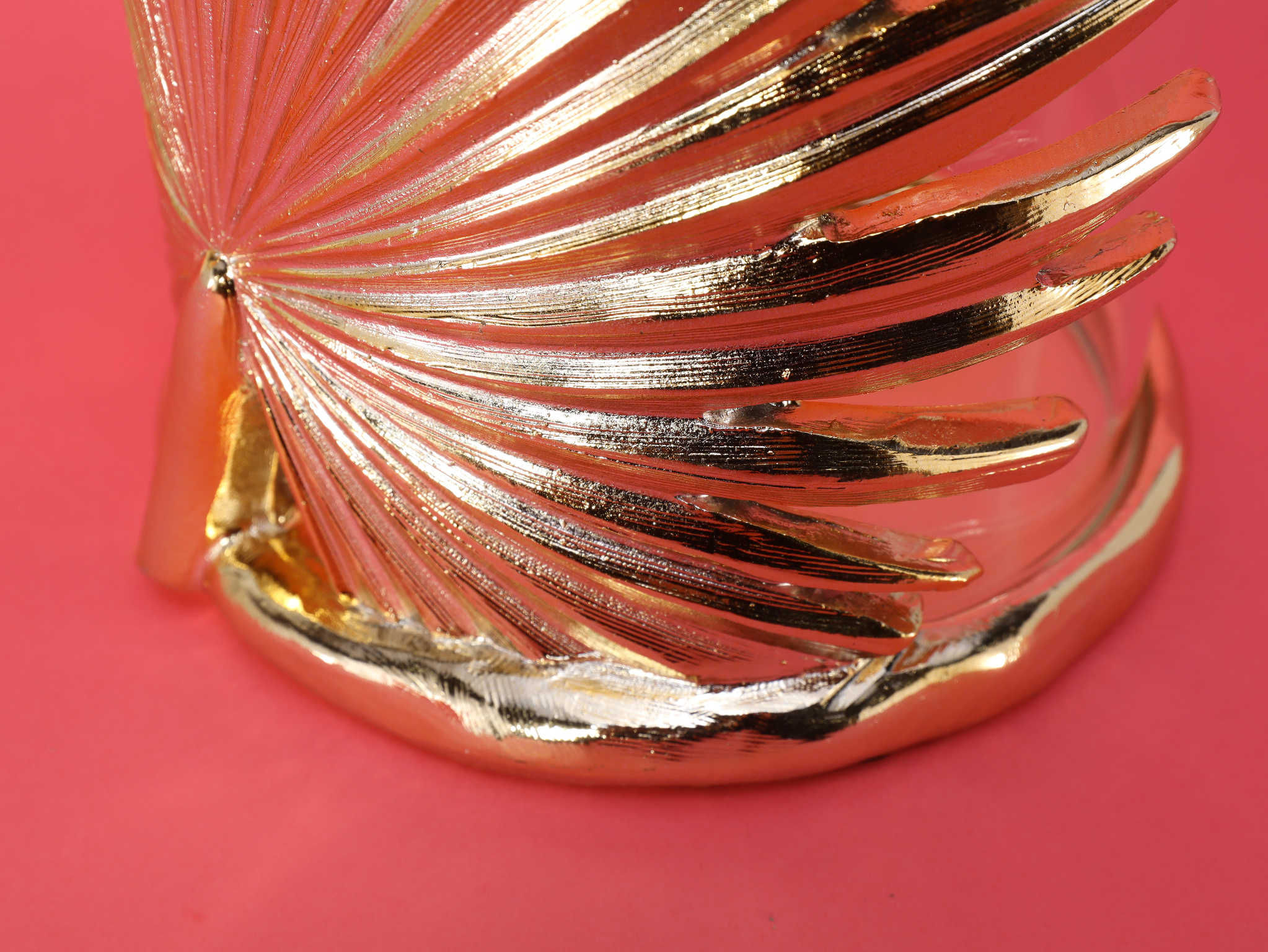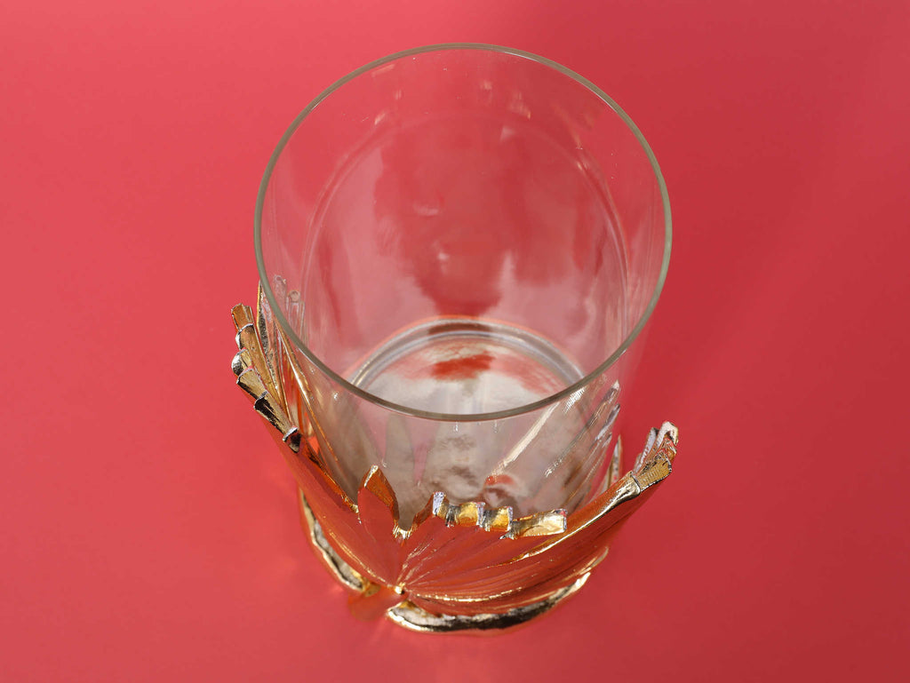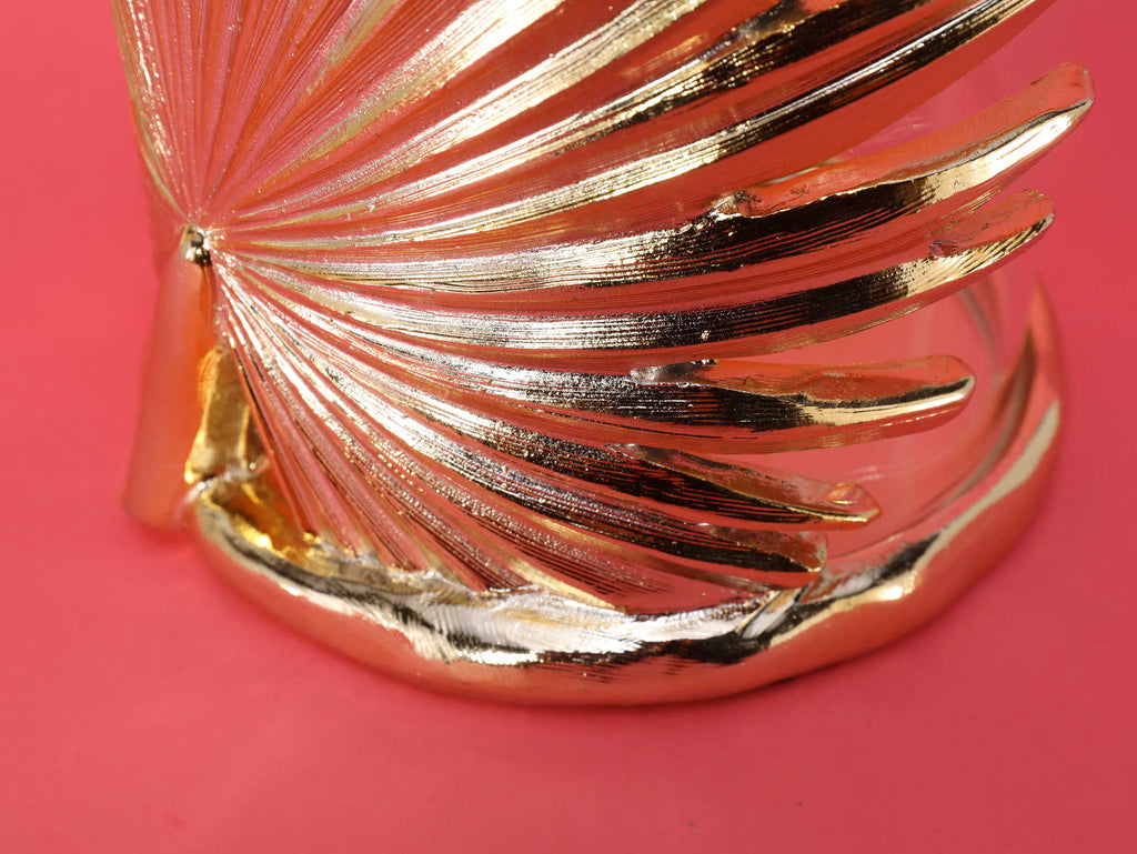 ヤシの葉をモチーフにした装飾が印象的な、パームキャンドルホルダー。ガラスの透明感に、ゴールドカラーのリーフが立体的にあしらわれ、灯りをともすと陰影が美しく浮かび上がります。炎の揺らぎが葉の間を通して広がり、空間に柔らかなリズムと温もりを添えてくれます。テーブルコーディネートの主役としてはもちろん、サイドボードやキャビネットの上に置けば、昼と夜で異なる表情を楽しめるのも魅力。季節を問わず取り入れやすく、日常のひとときを少し特別に演出してくれるキャンドルホルダーです。