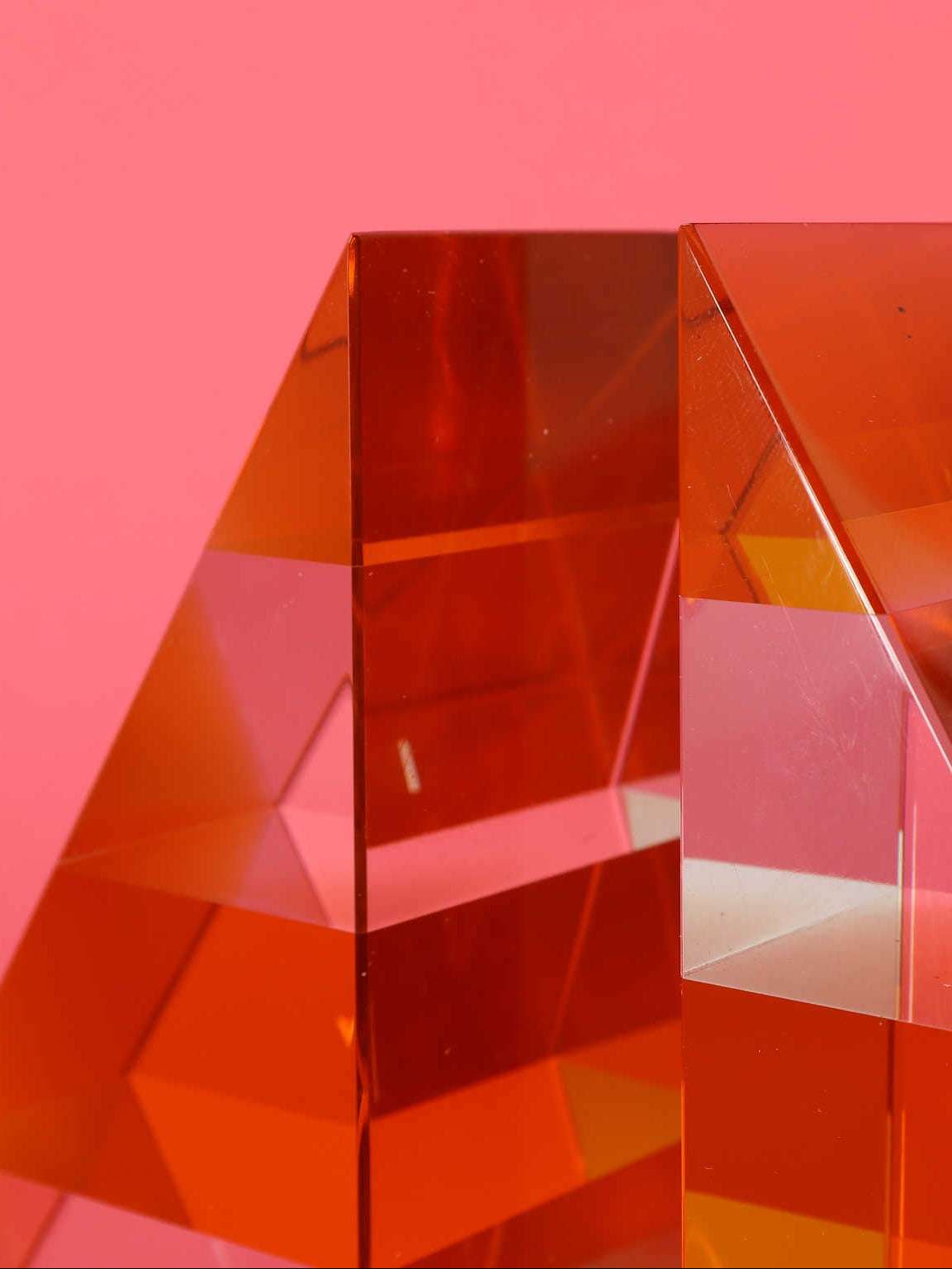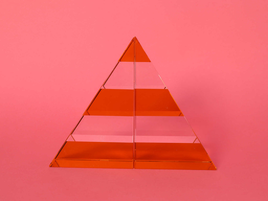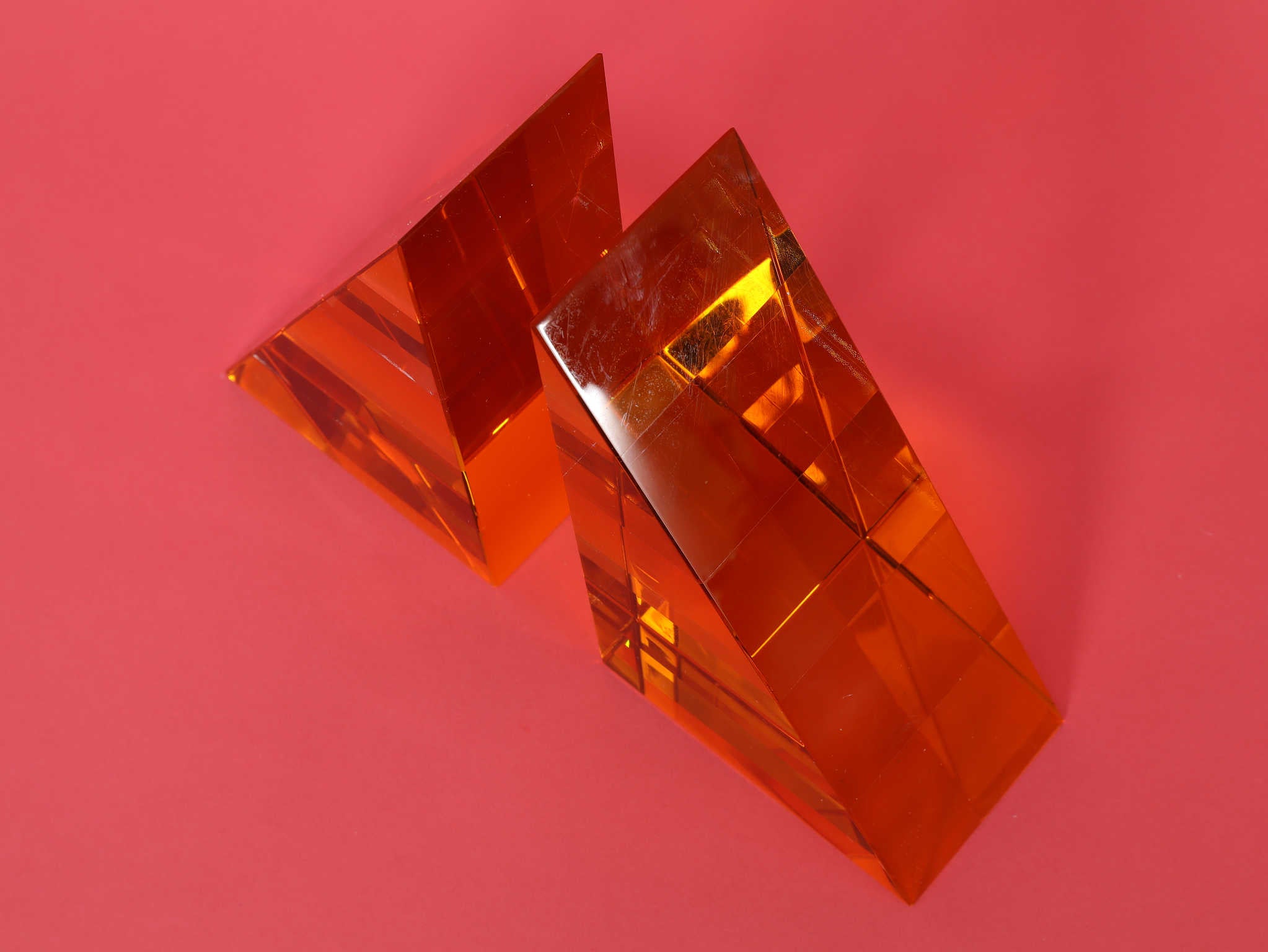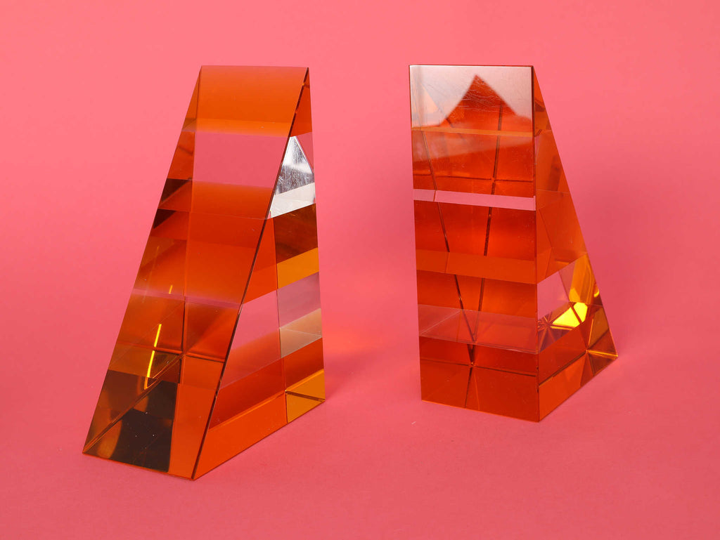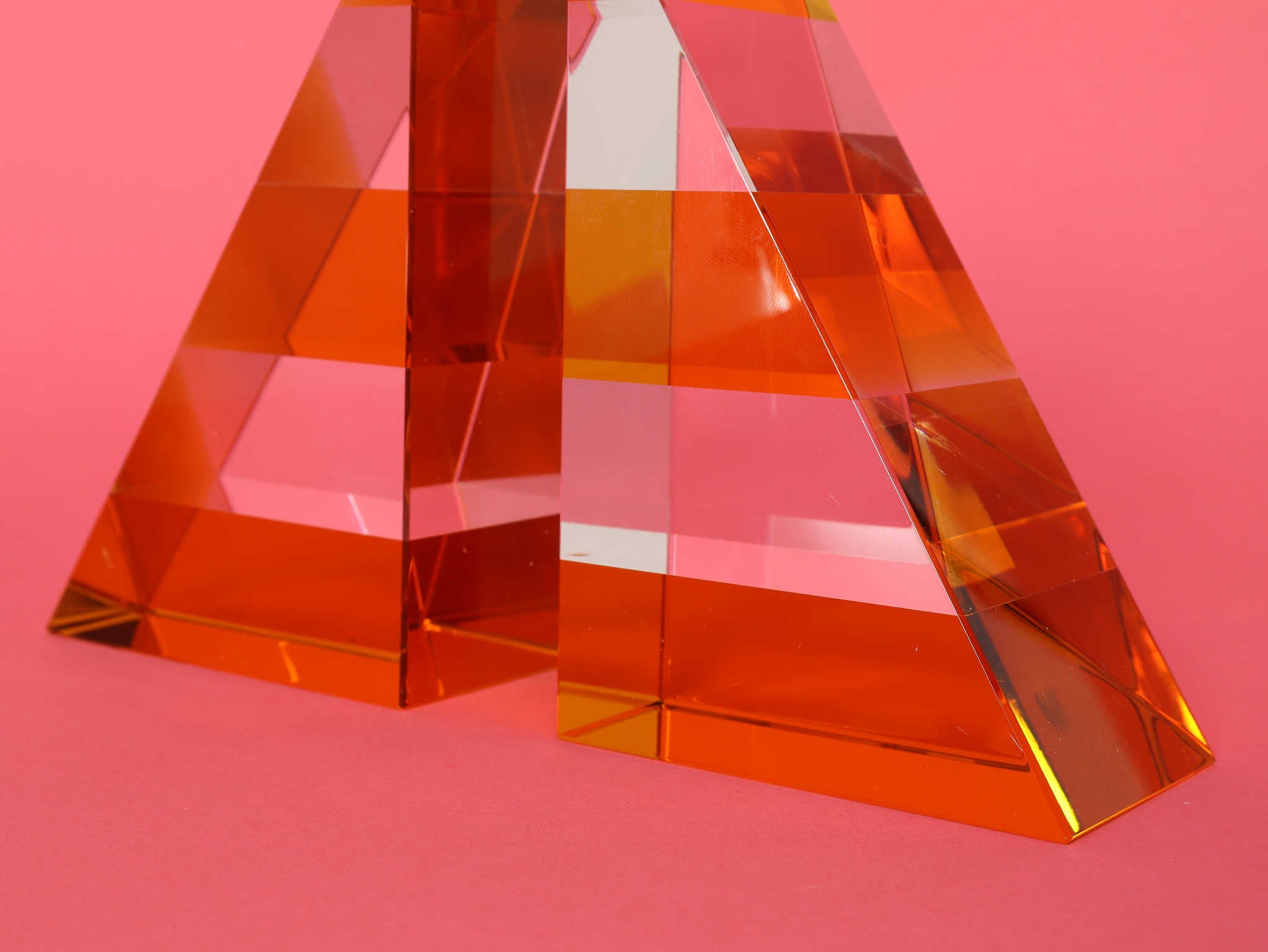 鮮やかなオレンジのラインが目を引く、グラス製ブックエンド。透明感のあるガラスにリズミカルな配色が施され、光を受けることで色の濃淡や奥行きが美しく浮かび上がります。シンプルな三角フォルムは本をしっかりと支えながら、オブジェのように空間に彩りを添える存在。書斎やリビングの棚、デスク周りに取り入れれば、落ち着いた空間に程よい遊び心と明るさを加えてくれます。モダンからヴィンテージまで幅広いインテリアに調和し、日常の景色を軽やかに引き立てるブックエンドです。