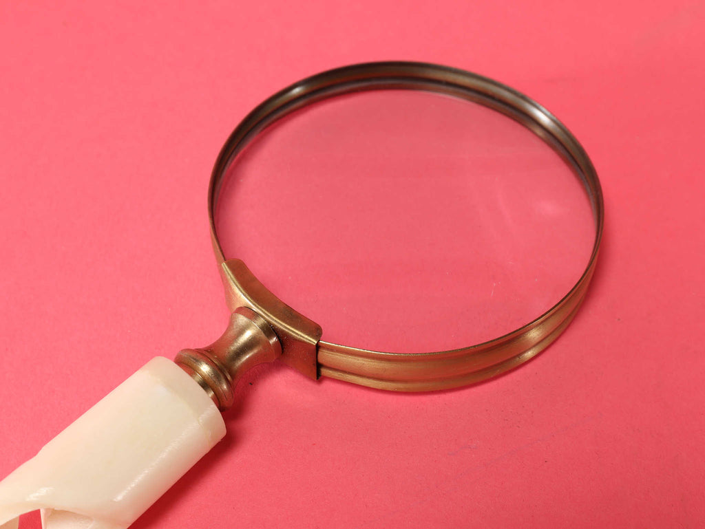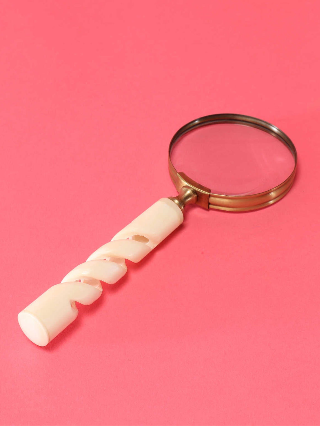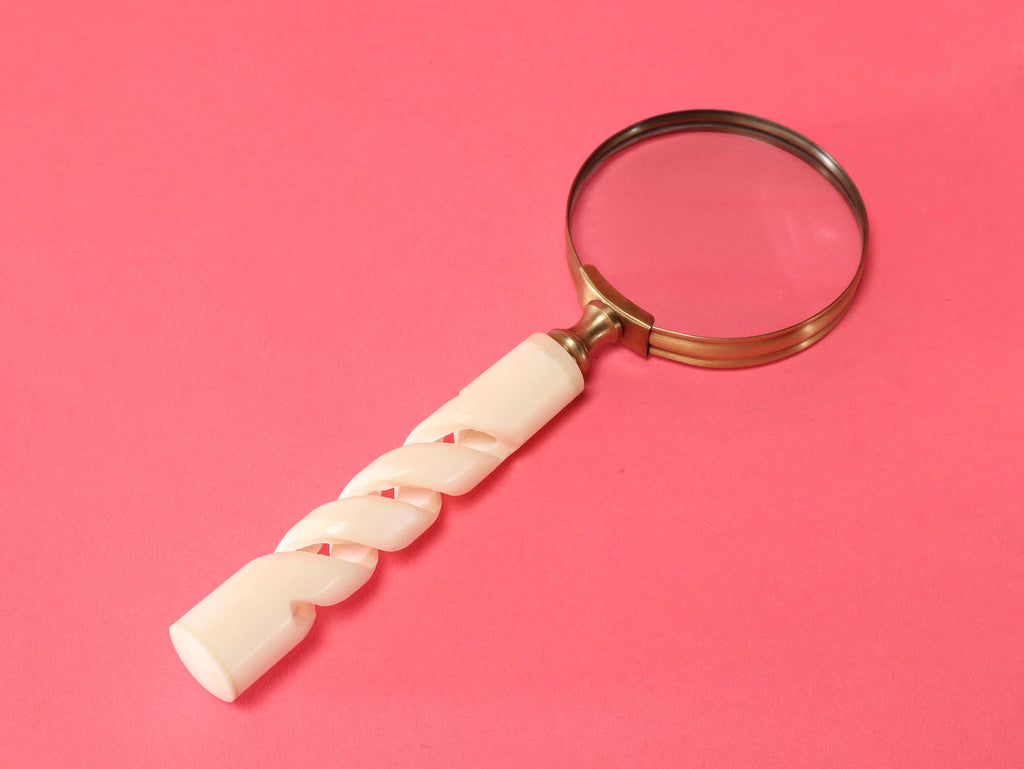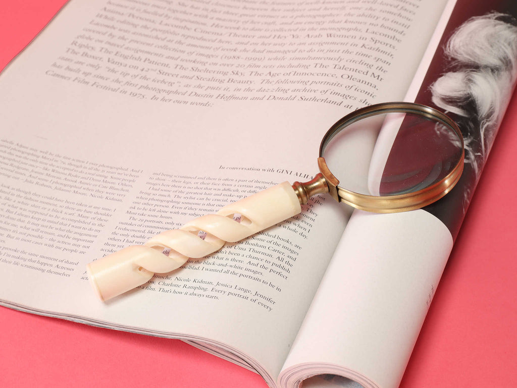 柄の白い部分のデザインと質感が特徴の拡大鏡。機能的な道具としてだけではなく視覚的にも楽しめるので、書斎周りやリビングなどで目をひき、ユニークなインテリアのアクセントとなってくれそうです。