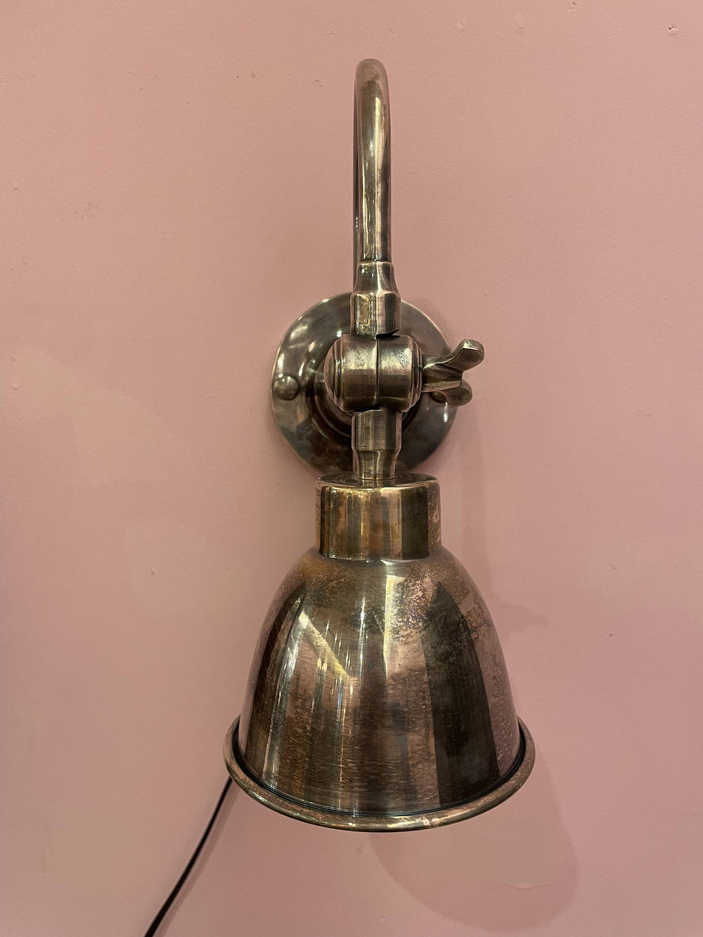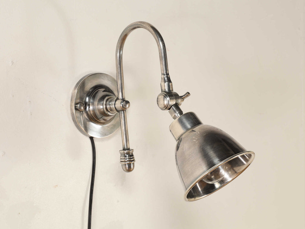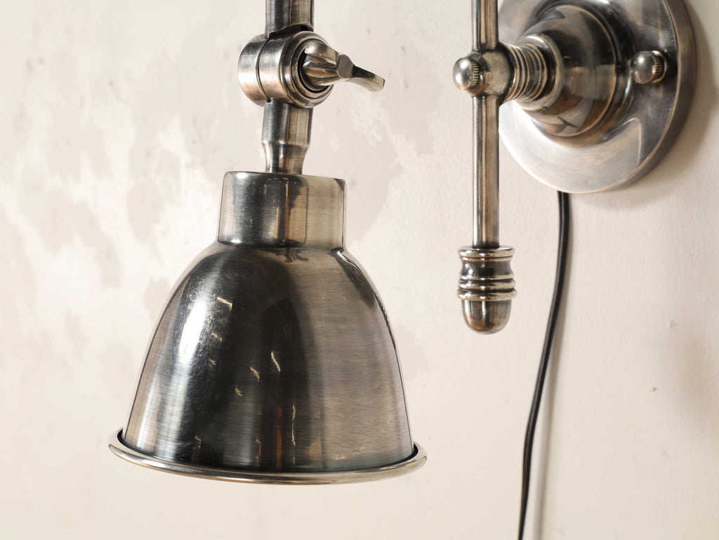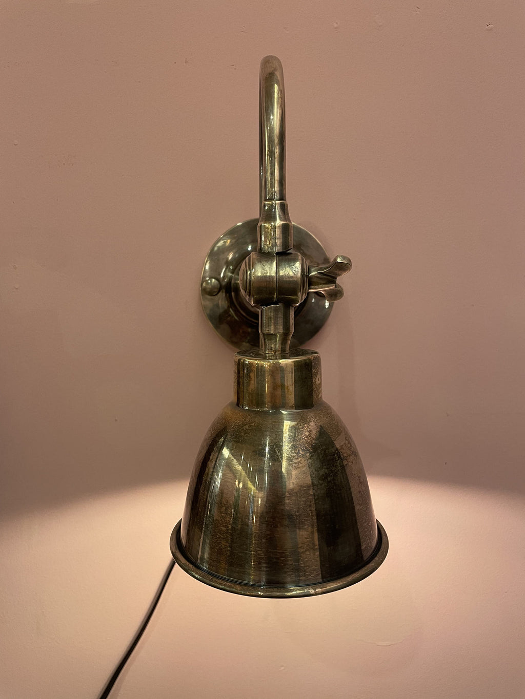 無駄を削ぎ落としたミニマルなフォルムが印象的なウォールランプ。インダストリアルな佇まいと、マットシルバーのブラス素材が放つ控えめな光沢が空間に静かな存在感を与えます。無骨でありながら洗練されたデザインは、モダンからヴィンテージまでさまざまなインテリアスタイルにあわせていただけます。壁面にさりげないアクセントを添える、スタイリッシュなウォールランプです。