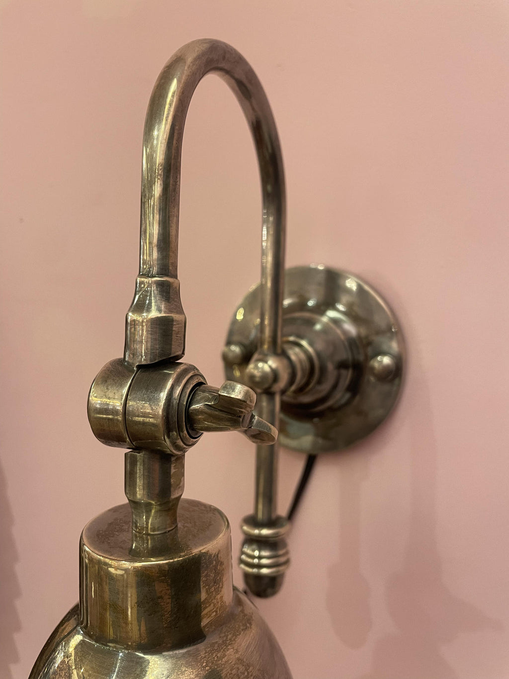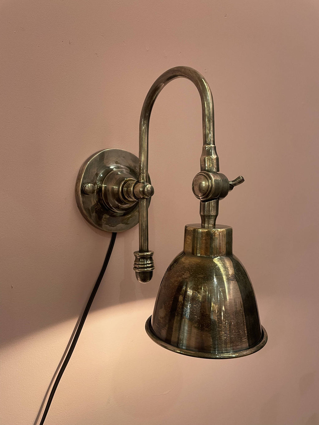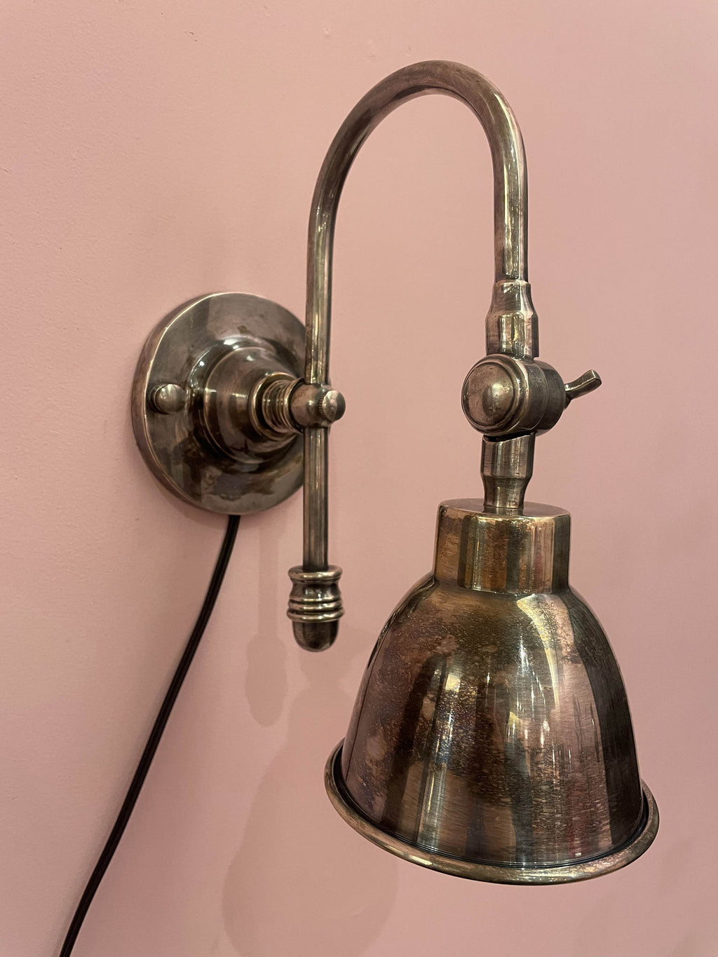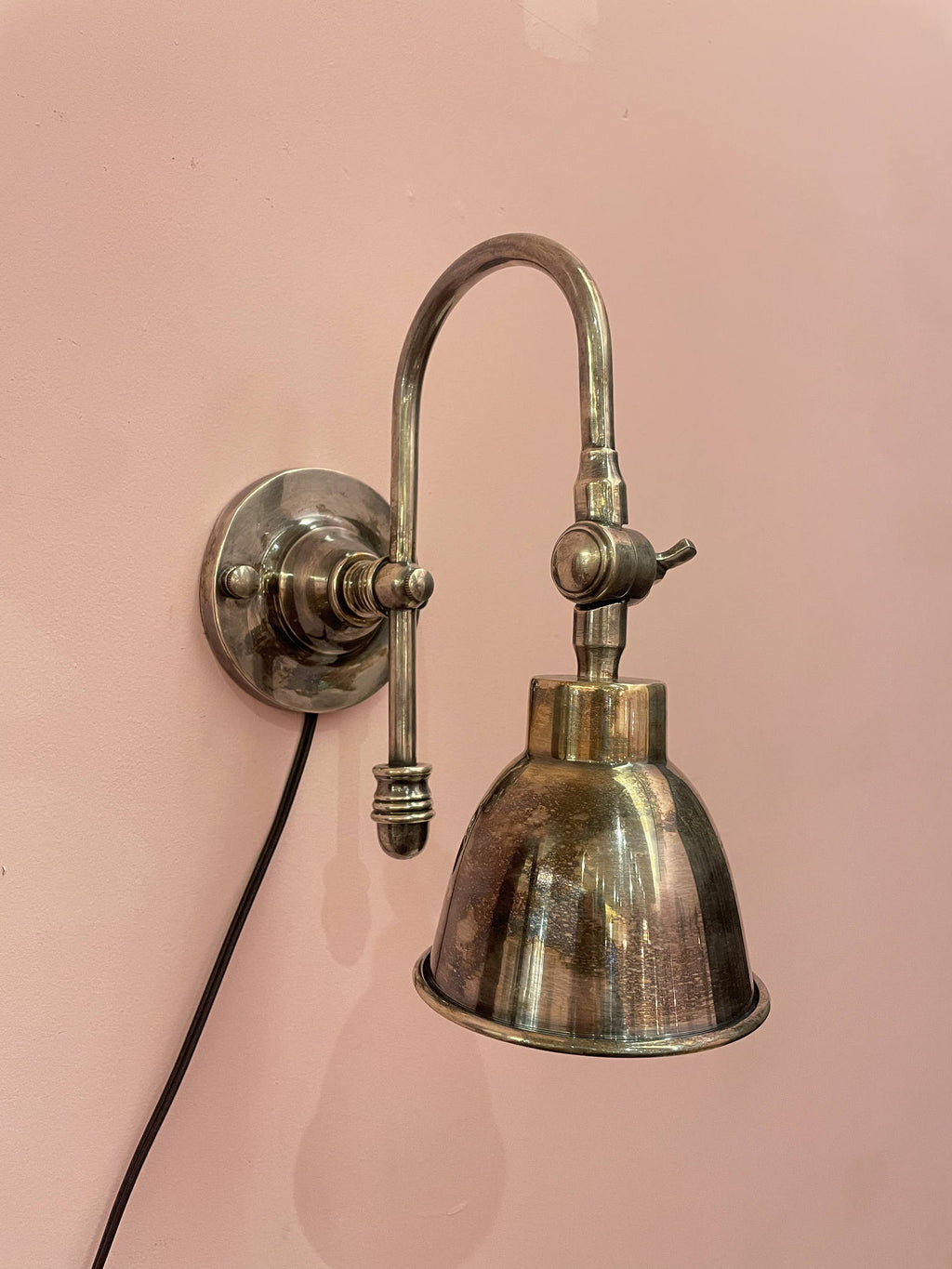 無駄を削ぎ落としたミニマルなフォルムが印象的なウォールランプ。インダストリアルな佇まいと、マットシルバーのブラス素材が放つ控えめな光沢が空間に静かな存在感を与えます。無骨でありながら洗練されたデザインは、モダンからヴィンテージまでさまざまなインテリアスタイルにあわせていただけます。壁面にさりげないアクセントを添える、スタイリッシュなウォールランプです。