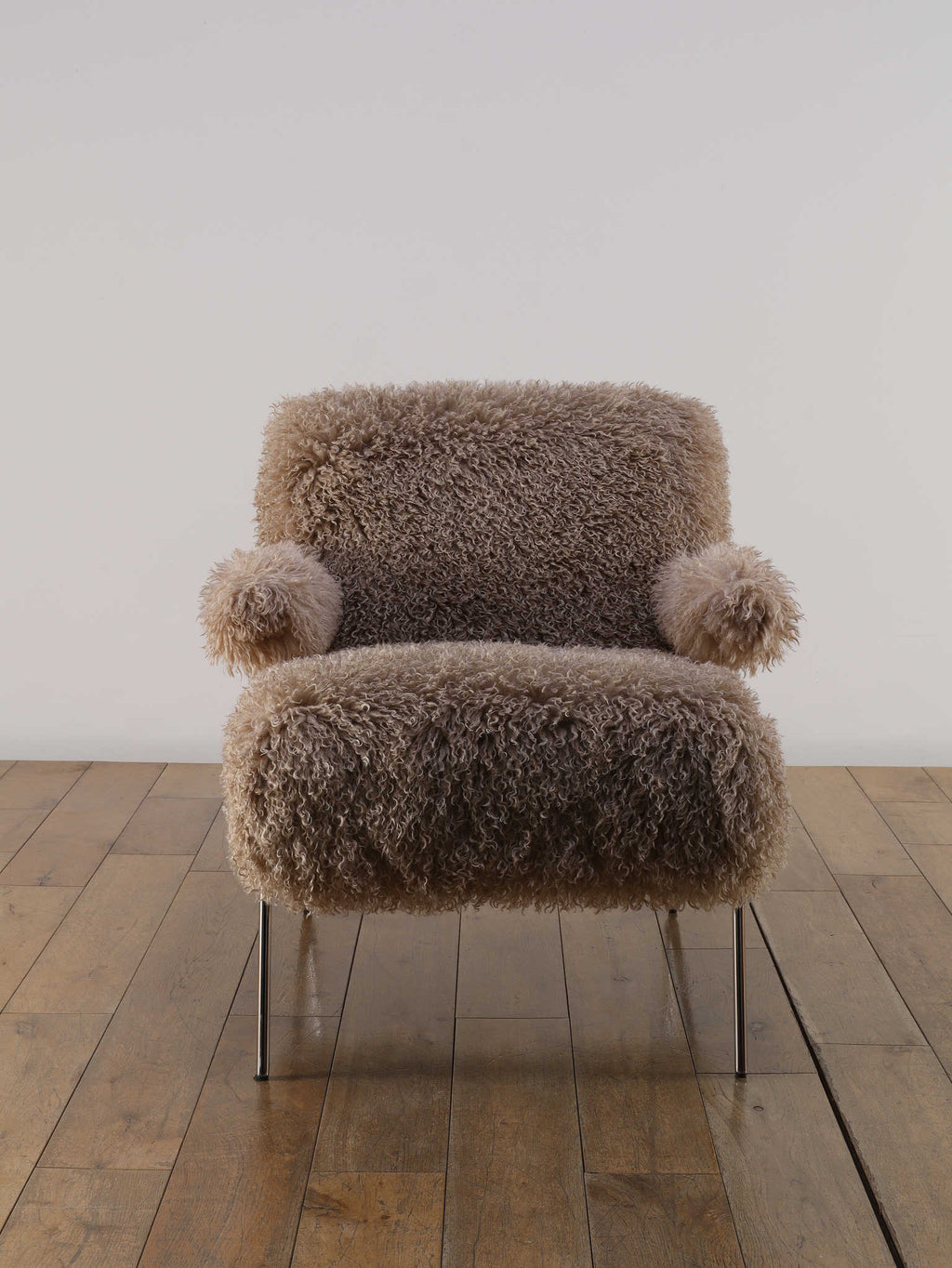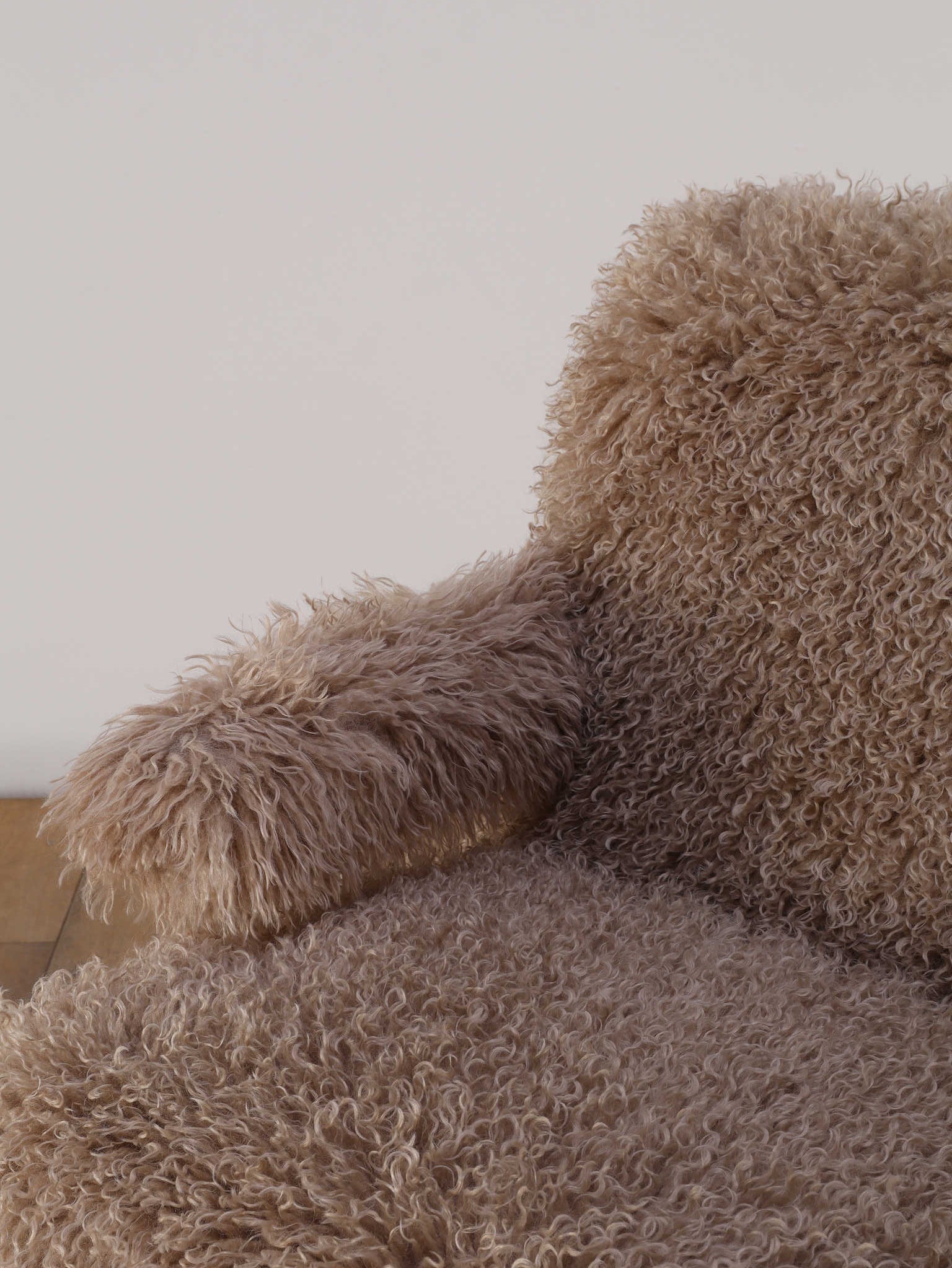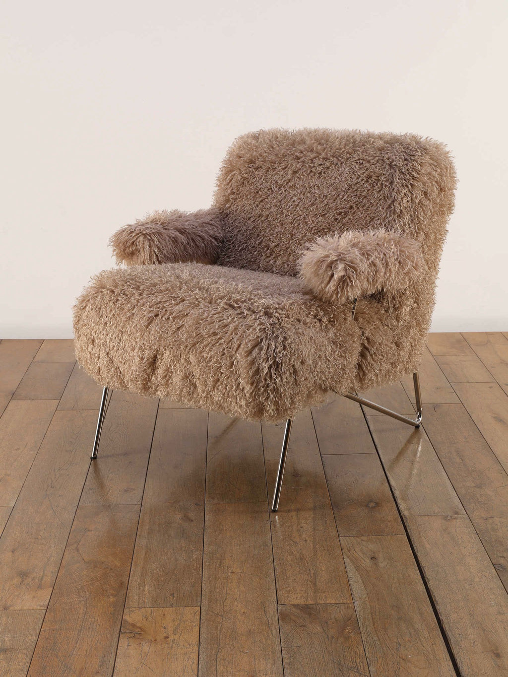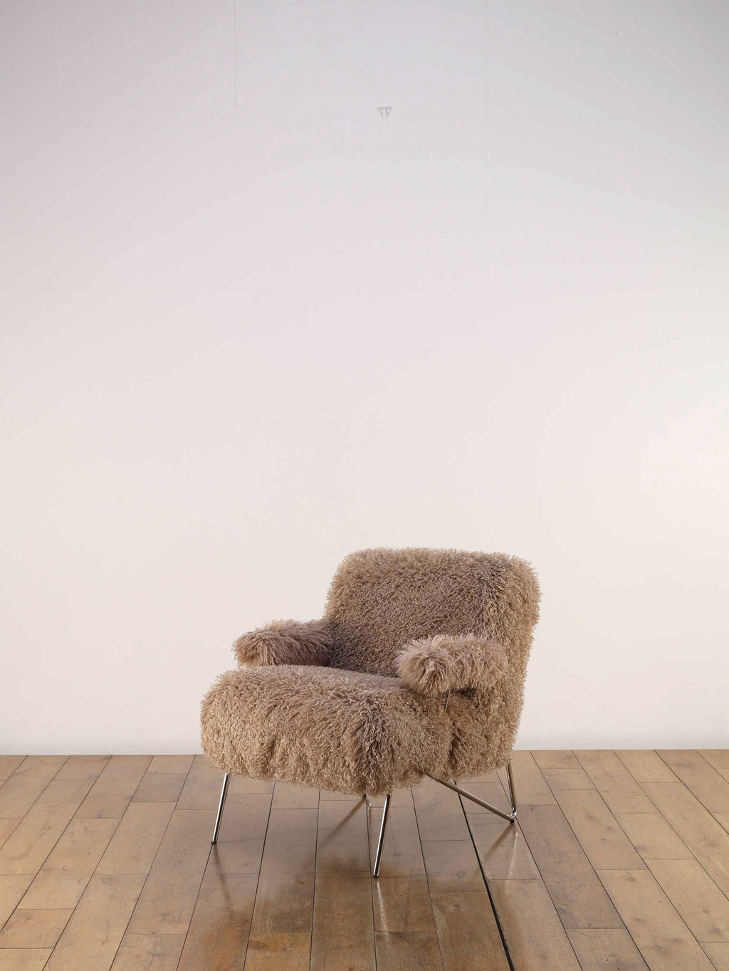 ふわふわのテディファブリックがなんともかわいらしいアームチェア。やわらかなクリームホワイトのカラーとプードルの毛のような質感は、座る人を優しく抱きしめるような座り心地を実現します。ゆったりとしたリラックスタイムにぴったりなデザインで、リビングやベッドルームに置けば、インテリアに温かみと癒しのアクセントをプラスできます。フレームにはメタルが採用され、かわいさだけでなく洗練されたモダンな印象のチェアです。