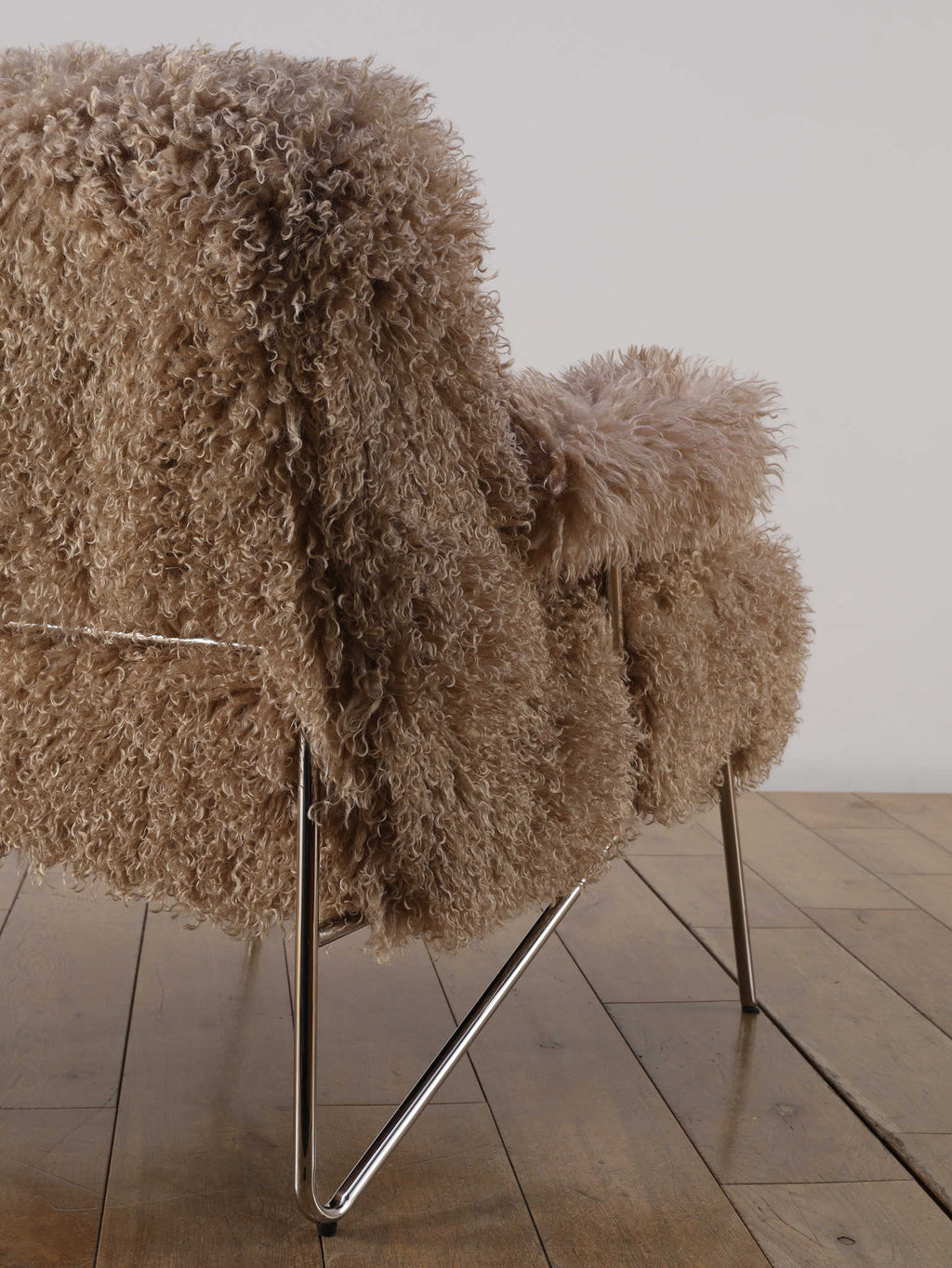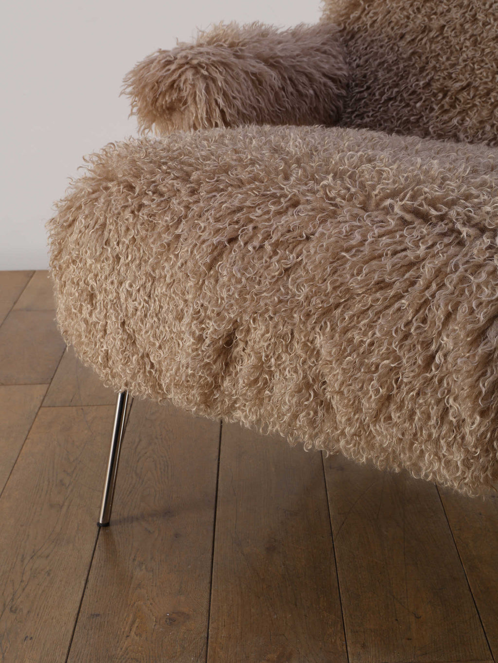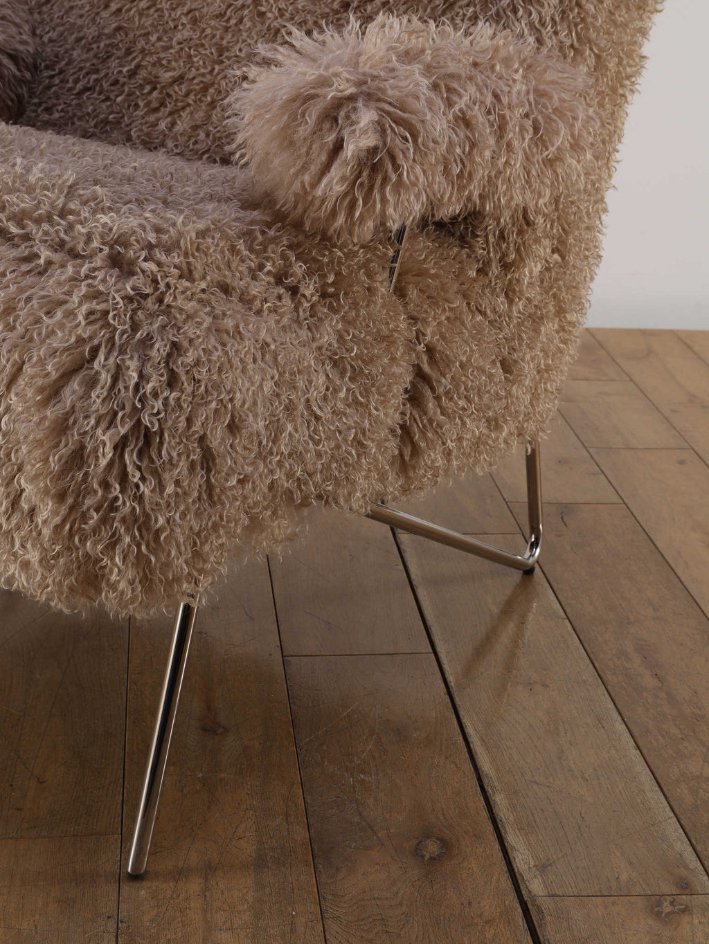 ふわふわのテディファブリックがなんともかわいらしいアームチェア。やわらかなクリームホワイトのカラーとプードルの毛のような質感は、座る人を優しく抱きしめるような座り心地を実現します。ゆったりとしたリラックスタイムにぴったりなデザインで、リビングやベッドルームに置けば、インテリアに温かみと癒しのアクセントをプラスできます。フレームにはメタルが採用され、かわいさだけでなく洗練されたモダンな印象のチェアです。