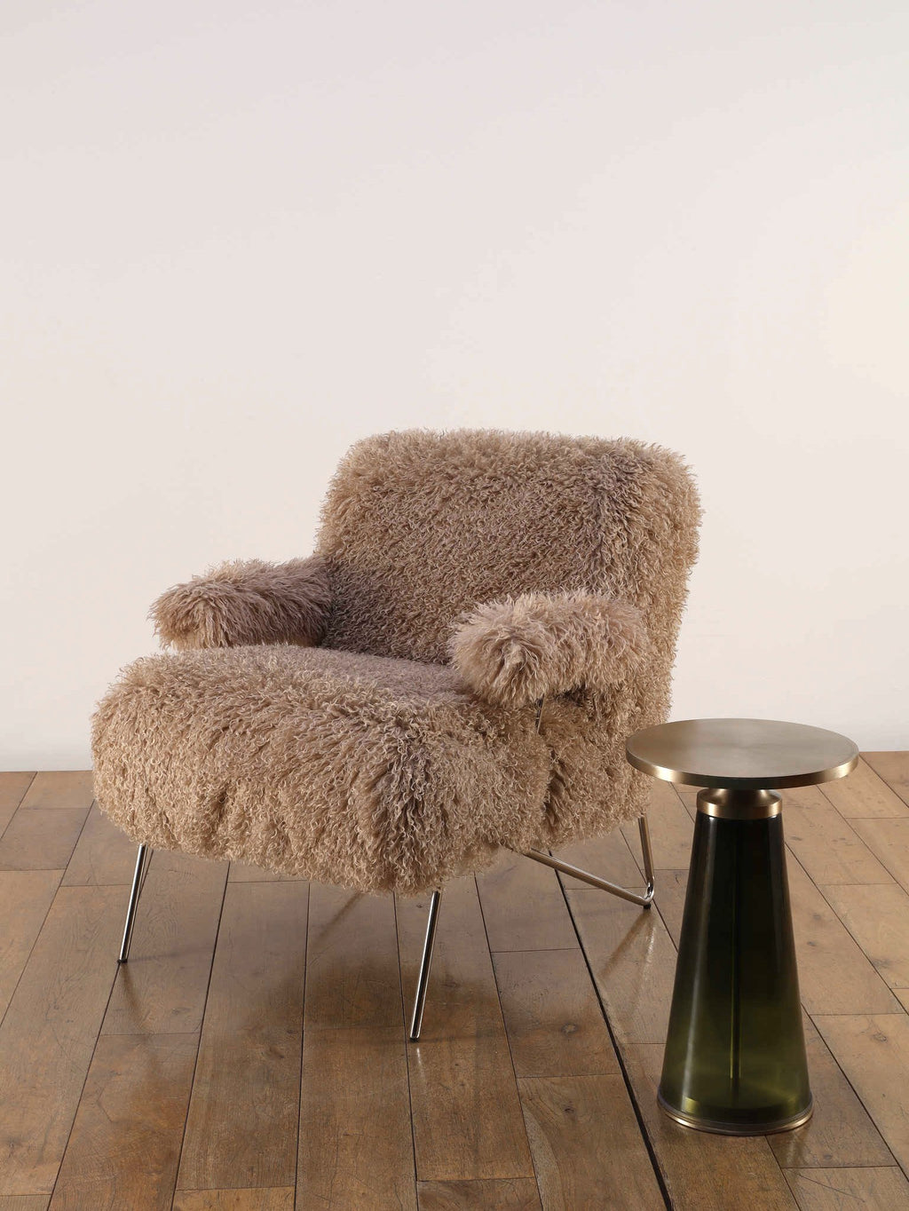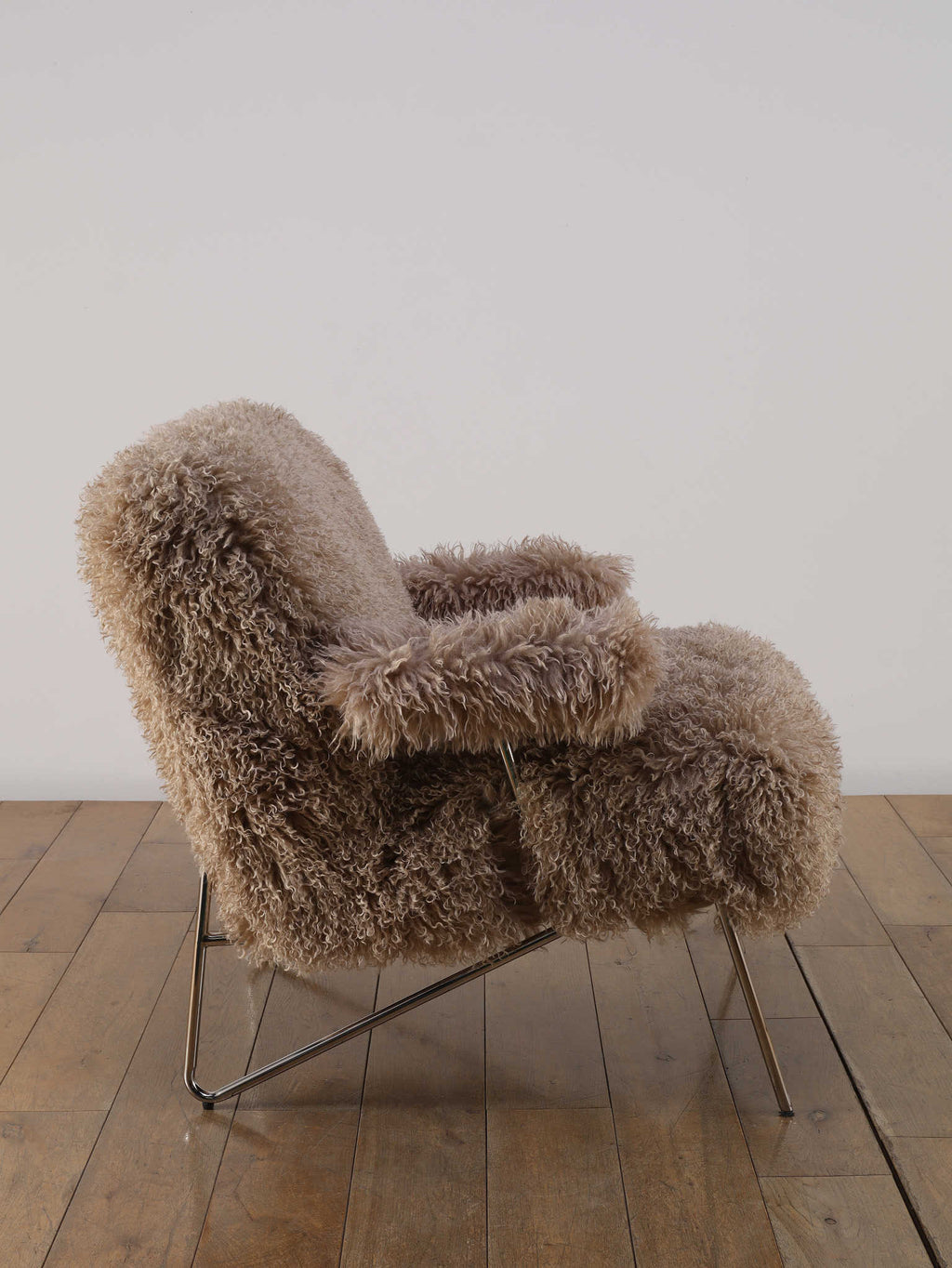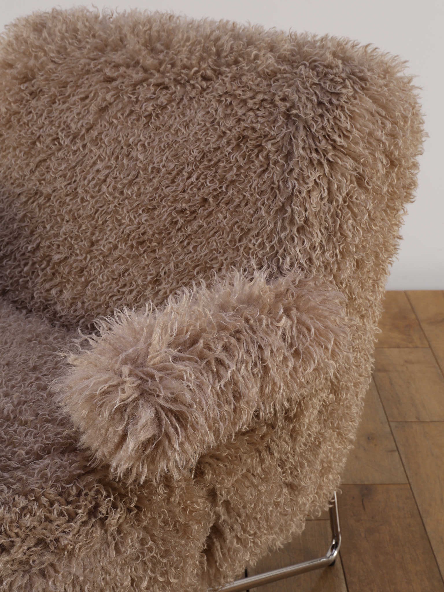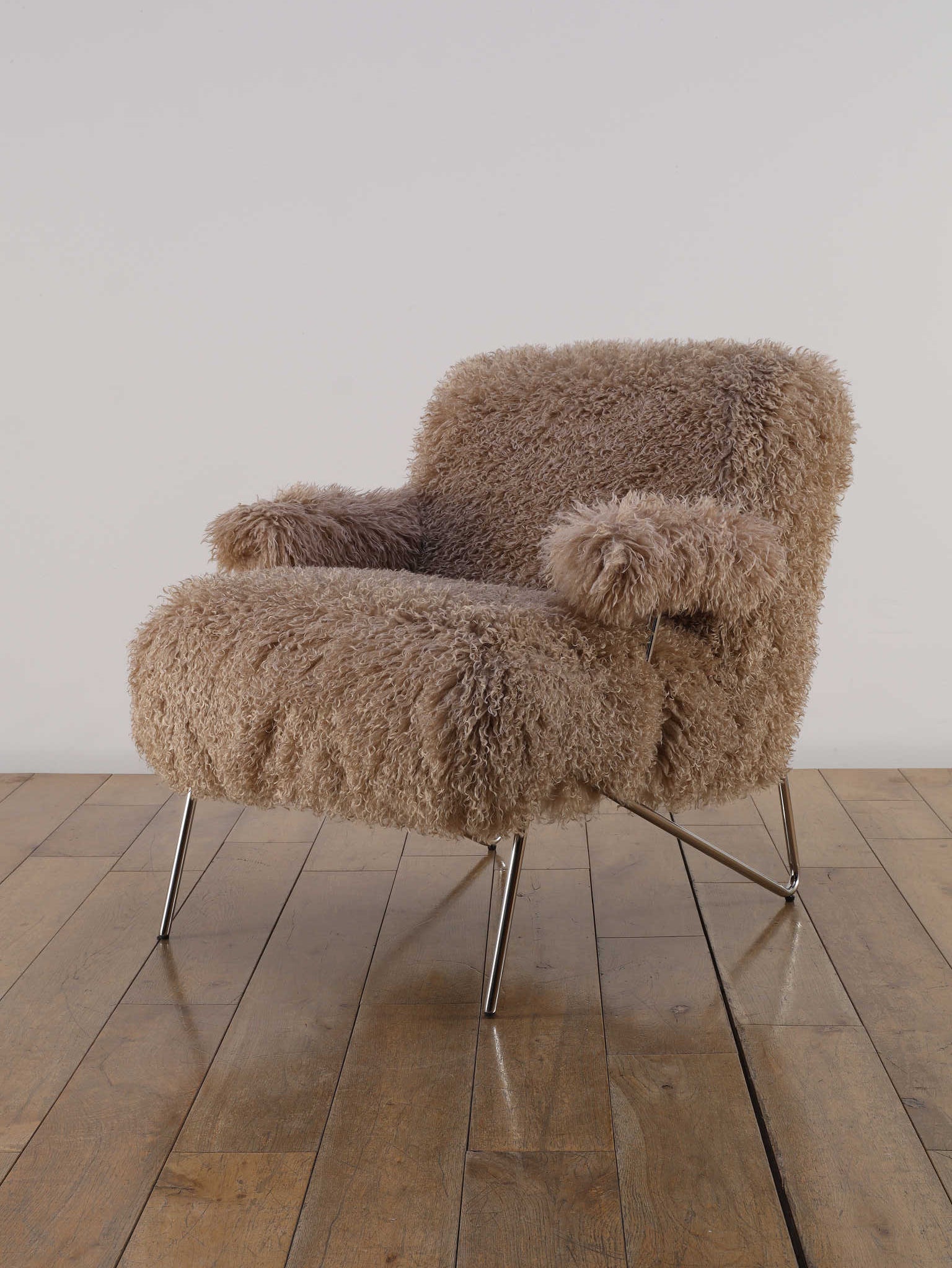 ふわふわのテディファブリックがなんともかわいらしいアームチェア。やわらかなクリームホワイトのカラーとプードルの毛のような質感は、座る人を優しく抱きしめるような座り心地を実現します。ゆったりとしたリラックスタイムにぴったりなデザインで、リビングやベッドルームに置けば、インテリアに温かみと癒しのアクセントをプラスできます。フレームにはメタルが採用され、かわいさだけでなく洗練されたモダンな印象のチェアです。
