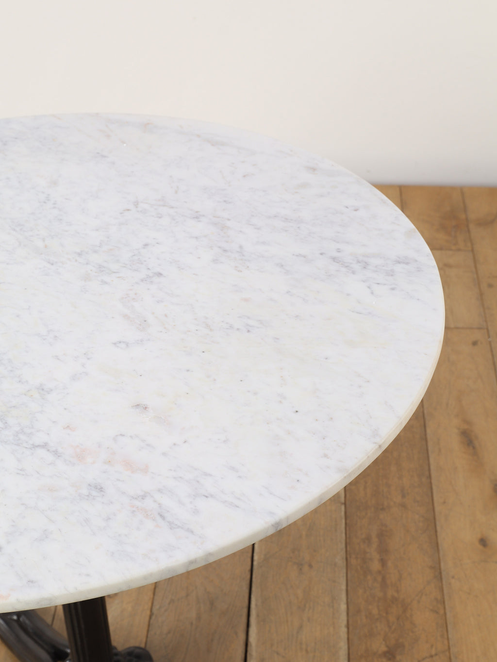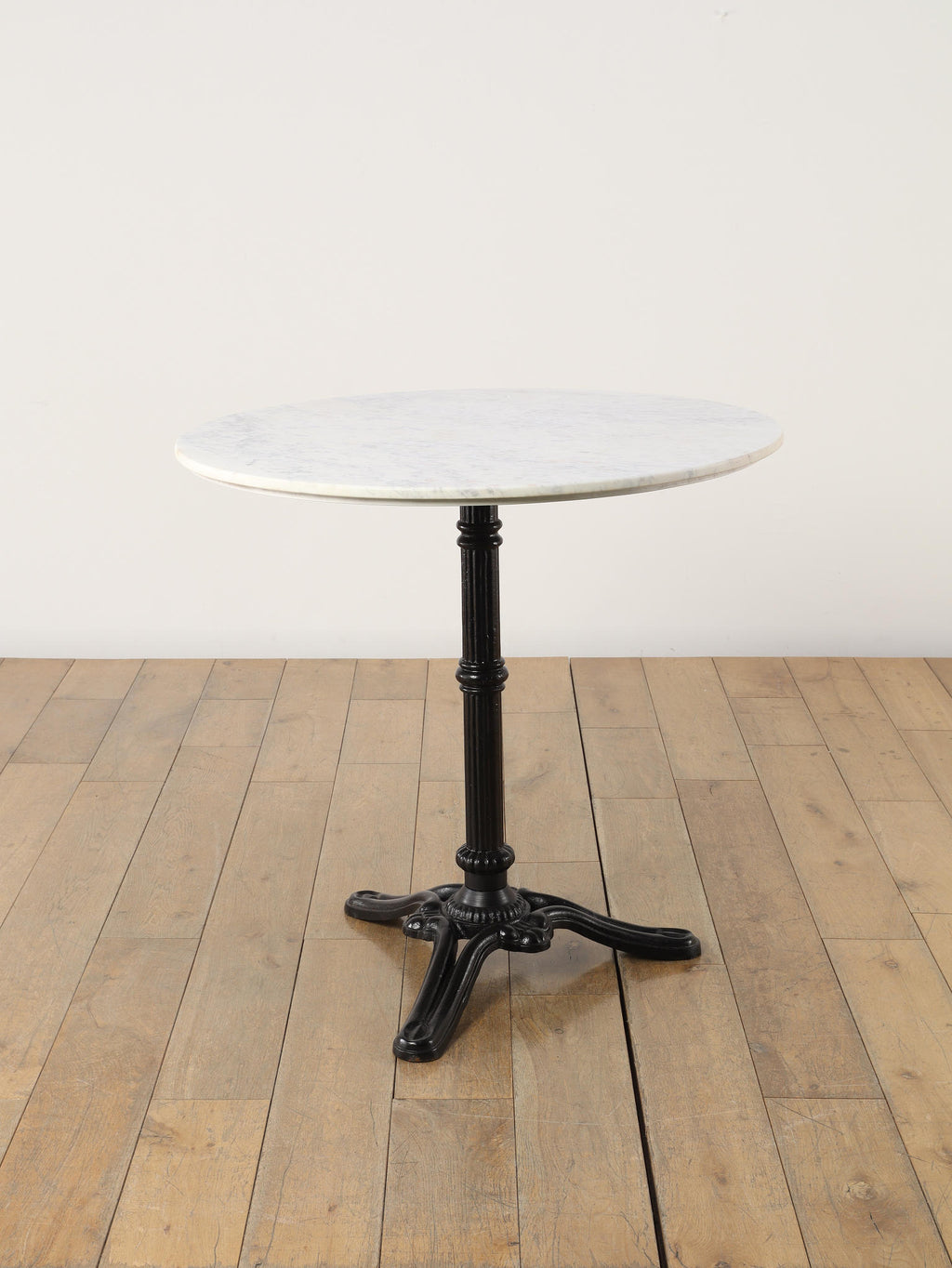 ビストロ風のクラシックなサイドテーブル。ホワイトのマーブルトップと鋳物製の脚が優雅なシルエットを描き、カフェのようなレトロモダンな雰囲気を醸し出します。コンパクトで使いやすく、リビングやサンルームに置けば、空間に温かみと上品さをプラス。ドリンクや小物を置くのに最適な実用性とデザイン性を兼ね備えたアイテムです。