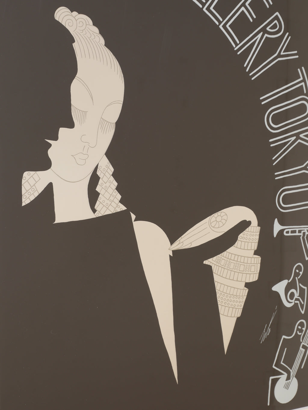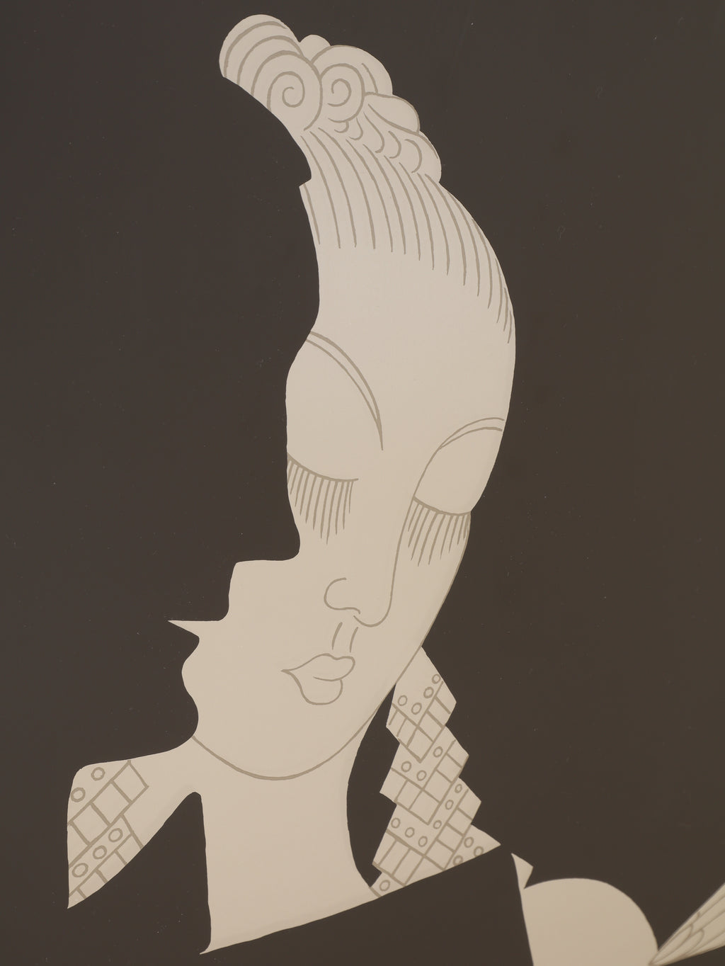 美術家ロマン・ド・ティルトフ、 通称 ERTE(エルテ)。自身のイニシャル(R.T.)をフランス語の発音に合わせてエルテと名乗り、 イラスト、オペラやバレエや映画の衣裳、舞台美術、ジュエリーやインテリアデザイン、彫刻など 幅広い分野において20世紀に活躍したロシア人デザイナーです。こちらはエルテのシルクスクリーンポスターを額装したものとなります。