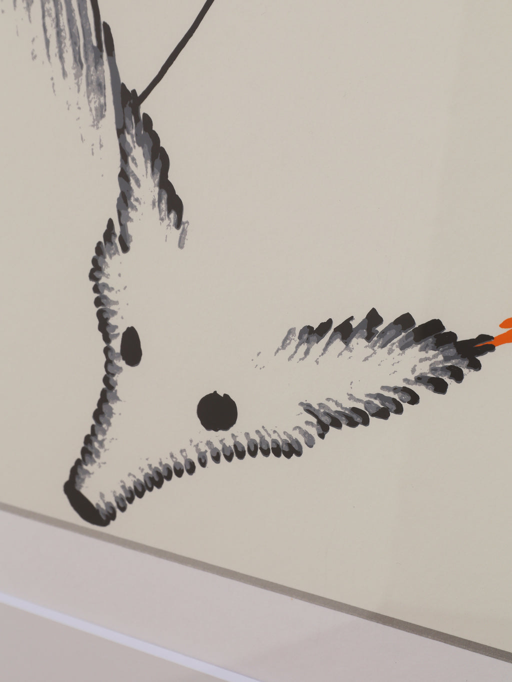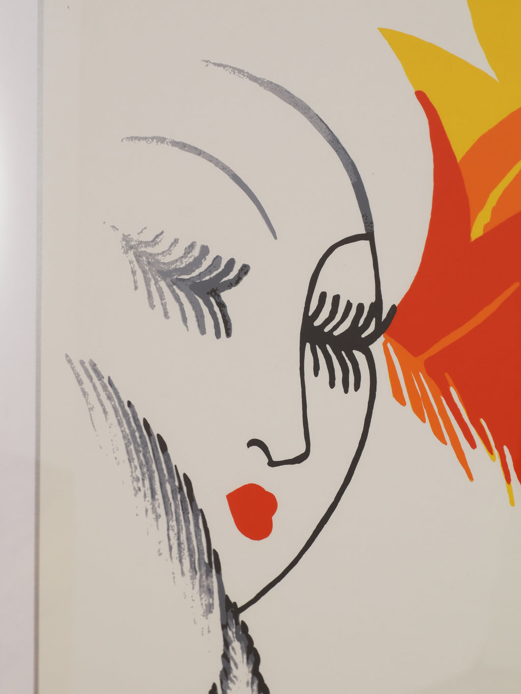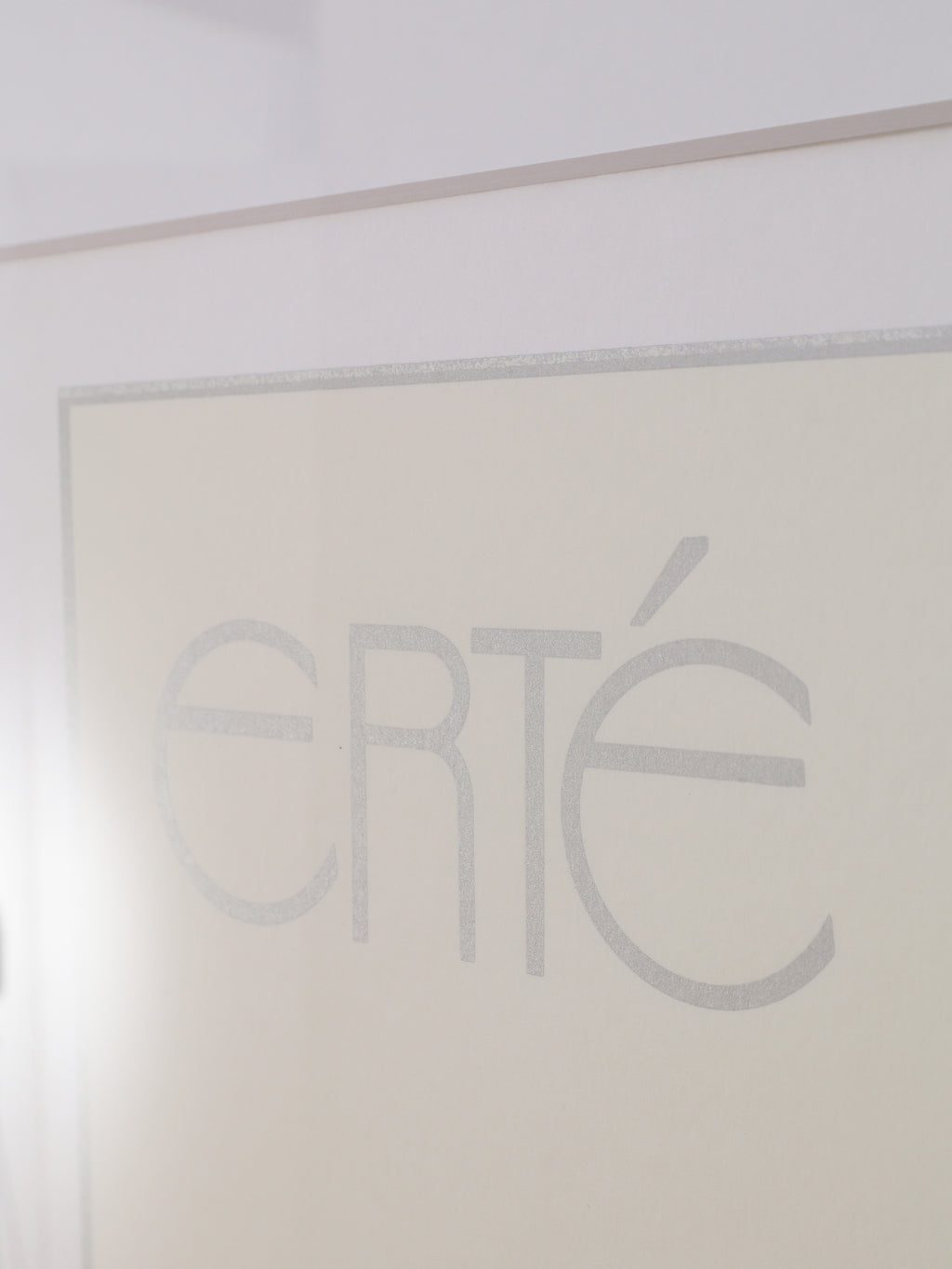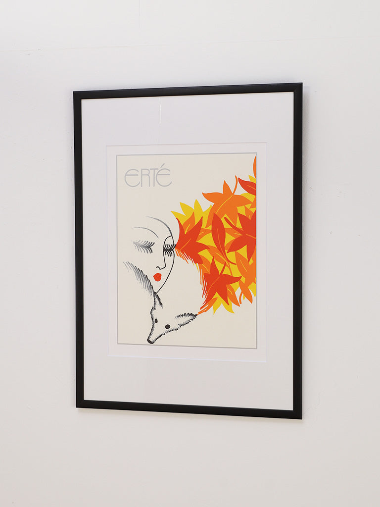 美術家ロマン・ド・ティルトフ、 通称 ERTE(エルテ)。自身のイニシャル(R.T.)をフランス語の発音に合わせてエルテと名乗り、 イラスト、オペラやバレエや映画の衣裳、舞台美術、ジュエリーやインテリアデザイン、彫刻など 幅広い分野において20世紀に活躍したロシア人デザイナーです。こちらはエルテのシルクスクリーンポスターを額装したものとなります。