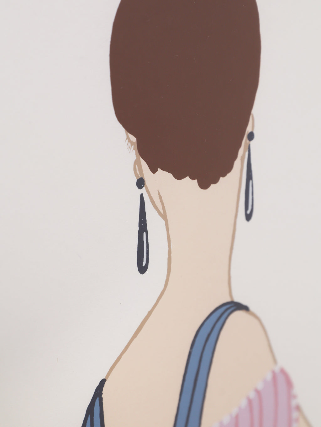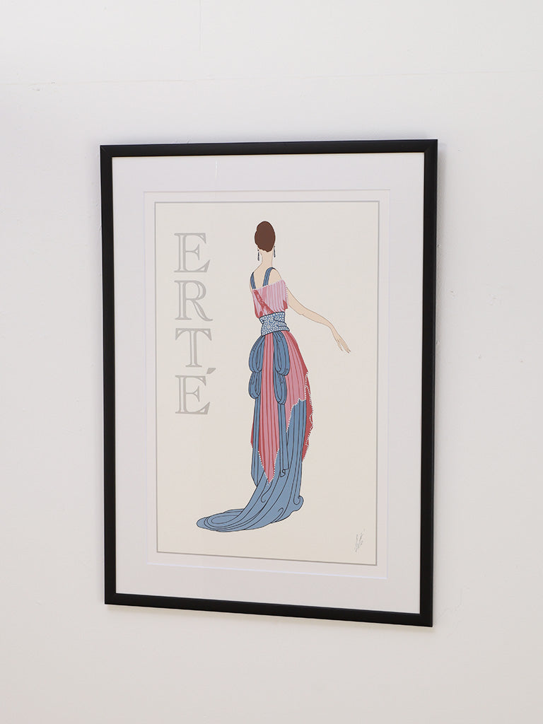 美術家ロマン・ド・ティルトフ、 通称 ERTE(エルテ)。自身のイニシャル(R.T.)をフランス語の発音に合わせてエルテと名乗り、 イラスト、オペラやバレエや映画の衣裳、舞台美術、ジュエリーやインテリアデザイン、彫刻など 幅広い分野において20世紀に活躍したロシア人デザイナーです。こちらはエルテのシルクスクリーンポスターを額装したものとなります。