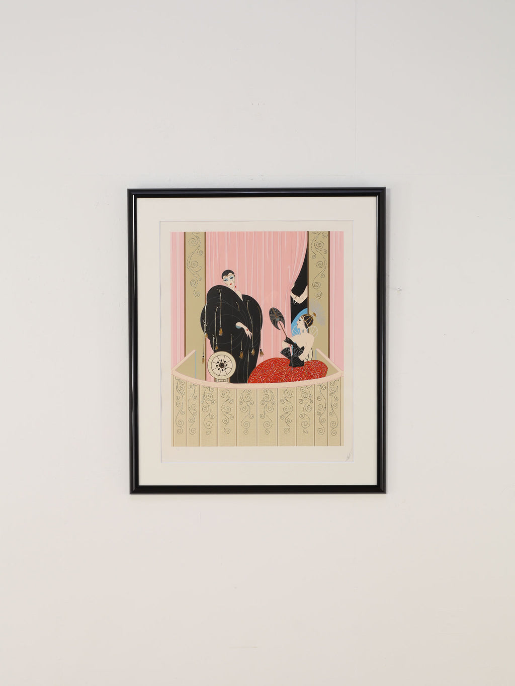美術家ロマン・ド・ティルトフ、 通称 ERTE(エルテ)。自身のイニシャル(R.T.)をフランス語の発音に合わせてエルテと名乗り、イラスト、オペラやバレエや映画の衣裳、舞台美術、ジュエリーやインテリアデザイン、彫刻など 幅広い分野において20世紀に活躍したロシア人デザイナーです。こちらはエルテのセリグラフを額装したものとなります。(エディションナンバー・サイン入り、証明書付き。)