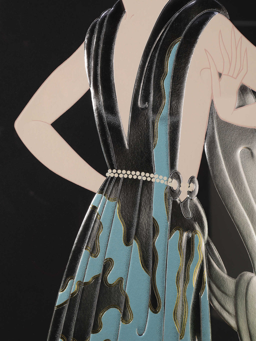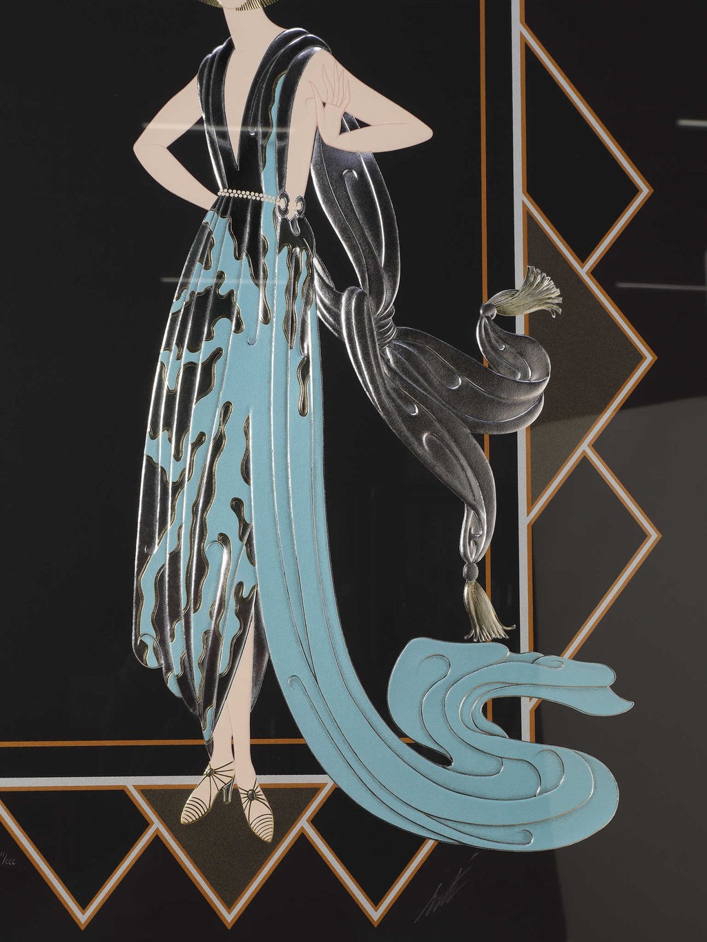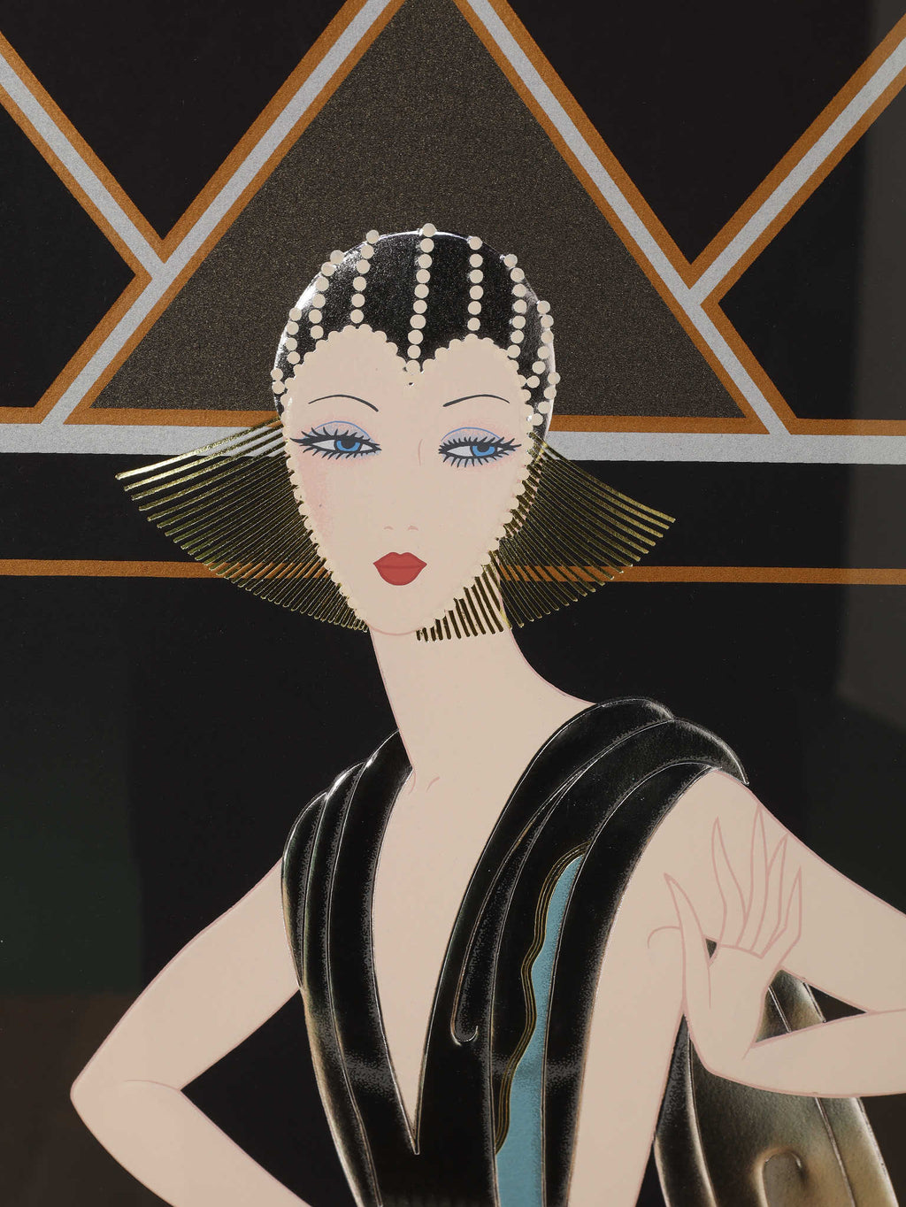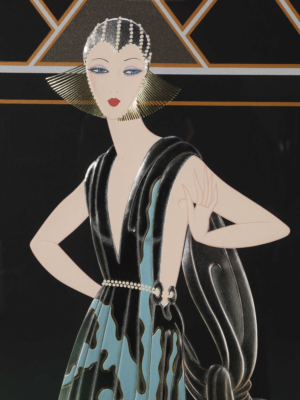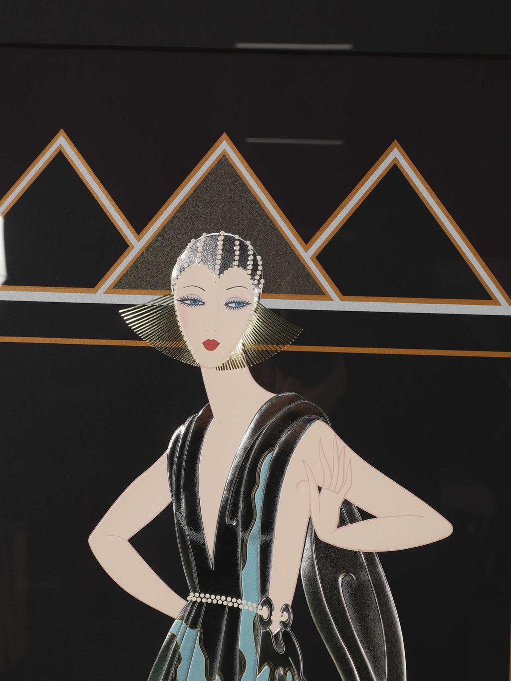 美術家ロマン・ド・ティルトフ、 通称 ERTE(エルテ)。自身のイニシャル(R.T.)をフランス語の発音に合わせてエルテと名乗り、イラスト、オペラやバレエや映画の衣裳、舞台美術、ジュエリーやインテリアデザイン、彫刻など 幅広い分野において20世紀に活躍したロシア人デザイナーです。こちらはエルテのセリグラフを額装したものとなります。(エディションナンバー・サイン入り、証明書付き。)