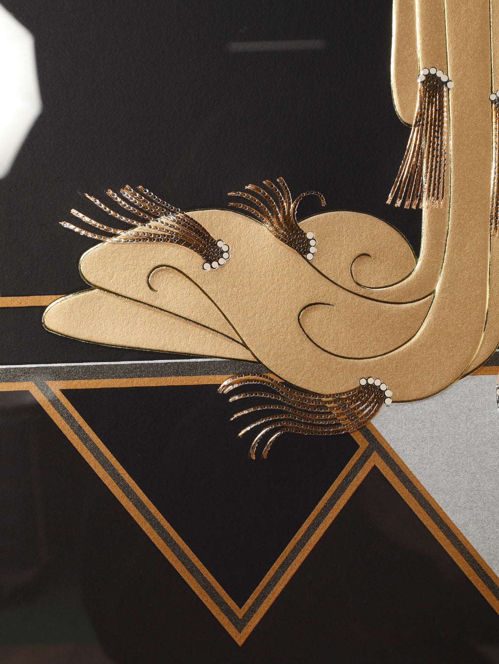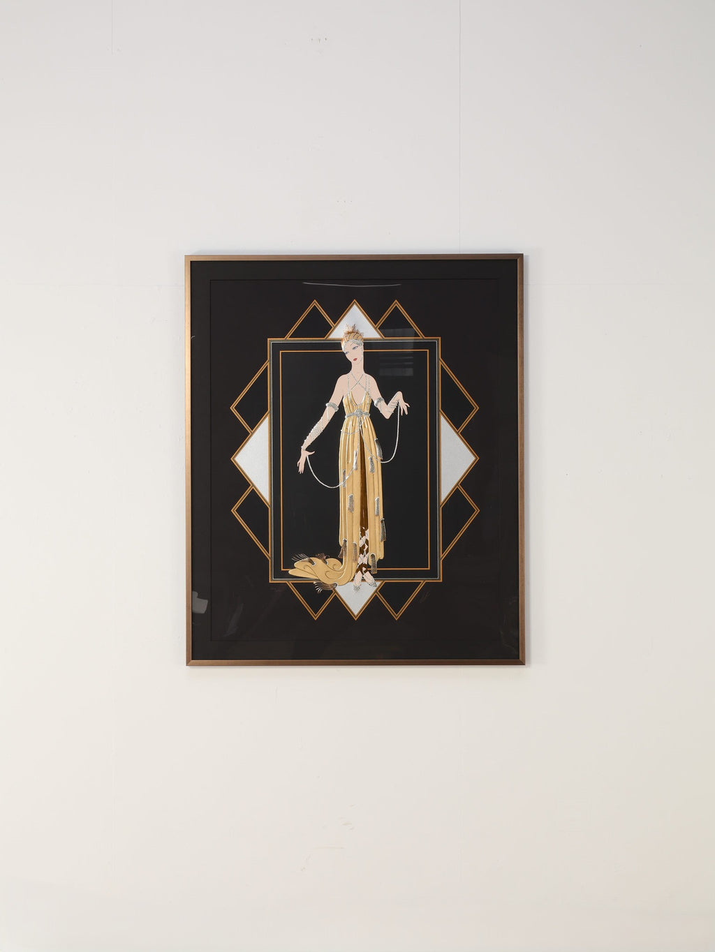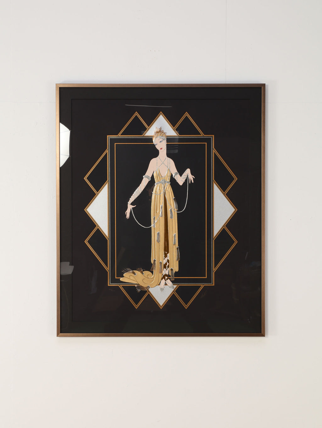 美術家ロマン・ド・ティルトフ、 通称 ERTE(エルテ)。自身のイニシャル(R.T.)をフランス語の発音に合わせてエルテと名乗り、イラスト、オペラやバレエや映画の衣裳、舞台美術、ジュエリーやインテリアデザイン、彫刻など 幅広い分野において20世紀に活躍したロシア人デザイナーです。こちらはエルテのセリグラフを額装したものとなります。(エディションナンバー・サイン入り、証明書付き。)