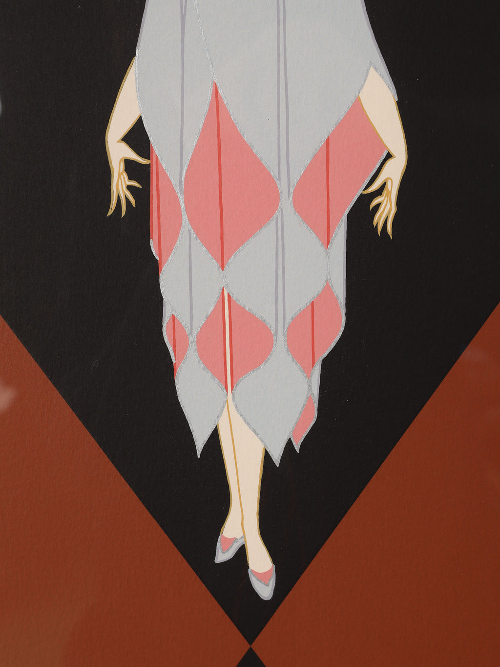 美術家ロマン・ド・ティルトフ、 通称 ERTE(エルテ)。自身のイニシャル(R.T.)をフランス語の発音に合わせてエルテと名乗り、イラスト、オペラやバレエや映画の衣裳、舞台美術、ジュエリーやインテリアデザイン、彫刻など 幅広い分野において20世紀に活躍したロシア人デザイナーです。こちらはエルテのセリグラフを額装したものとなります。(エディションナンバー・サイン入り、証明書付き。)