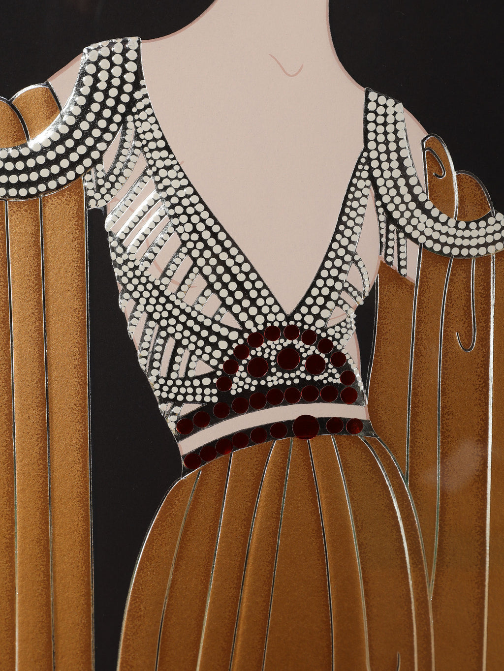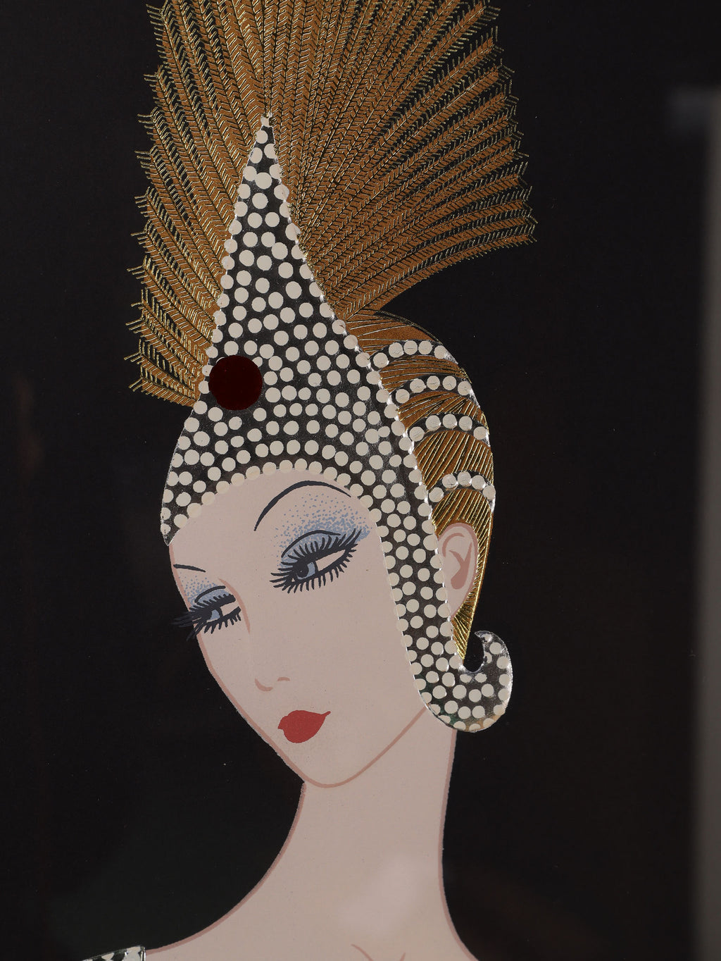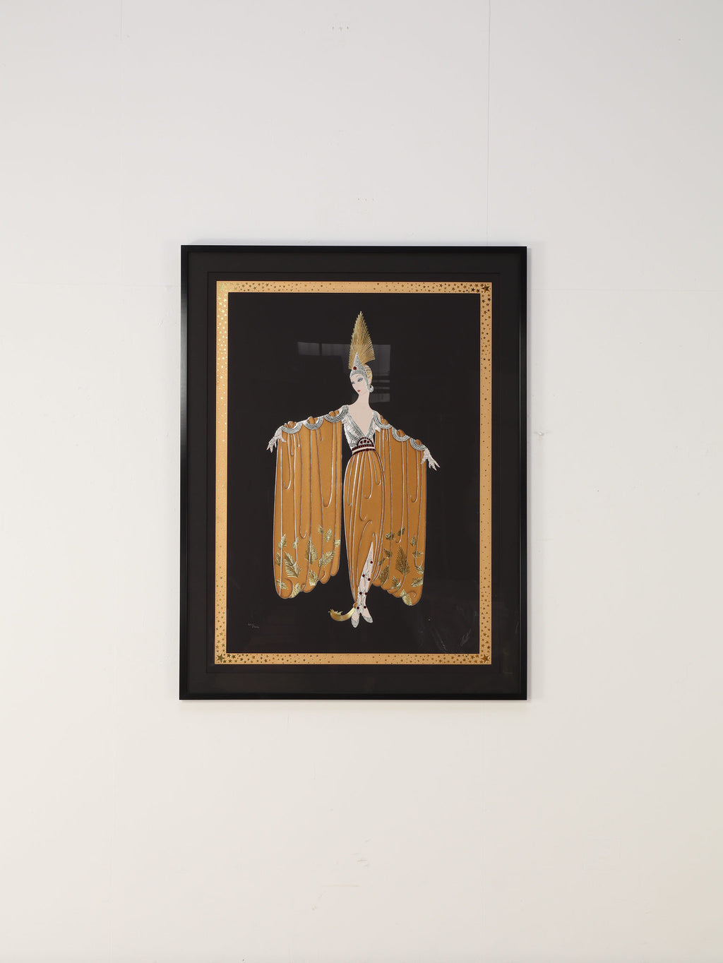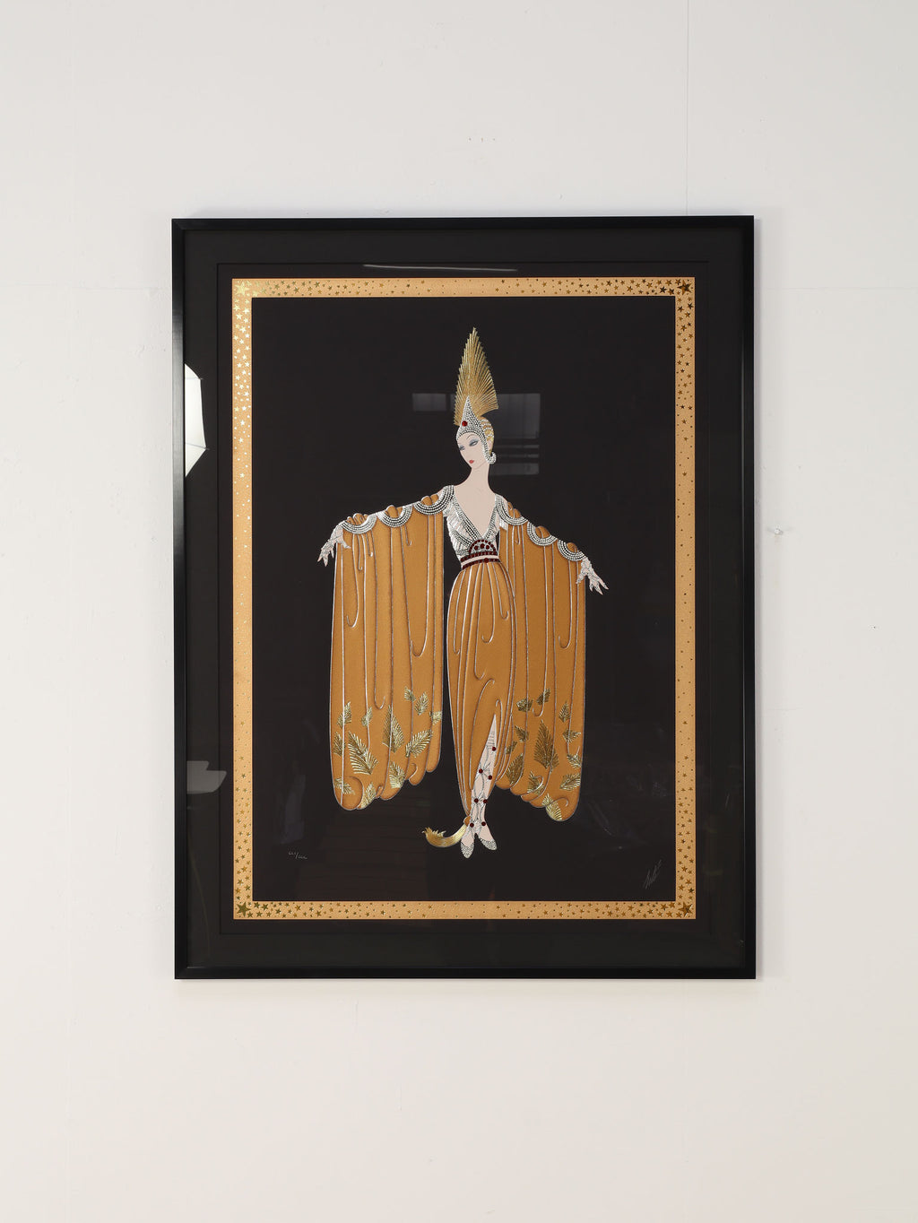 美術家ロマン・ド・ティルトフ、 通称 ERTE(エルテ)。自身のイニシャル(R.T.)をフランス語の発音に合わせてエルテと名乗り、イラスト、オペラやバレエや映画の衣裳、舞台美術、ジュエリーやインテリアデザイン、彫刻など 幅広い分野において20世紀に活躍したロシア人デザイナーです。こちらはエルテのセリグラフを額装したものとなります。(エディションナンバー・サイン入り、証明書付き。)