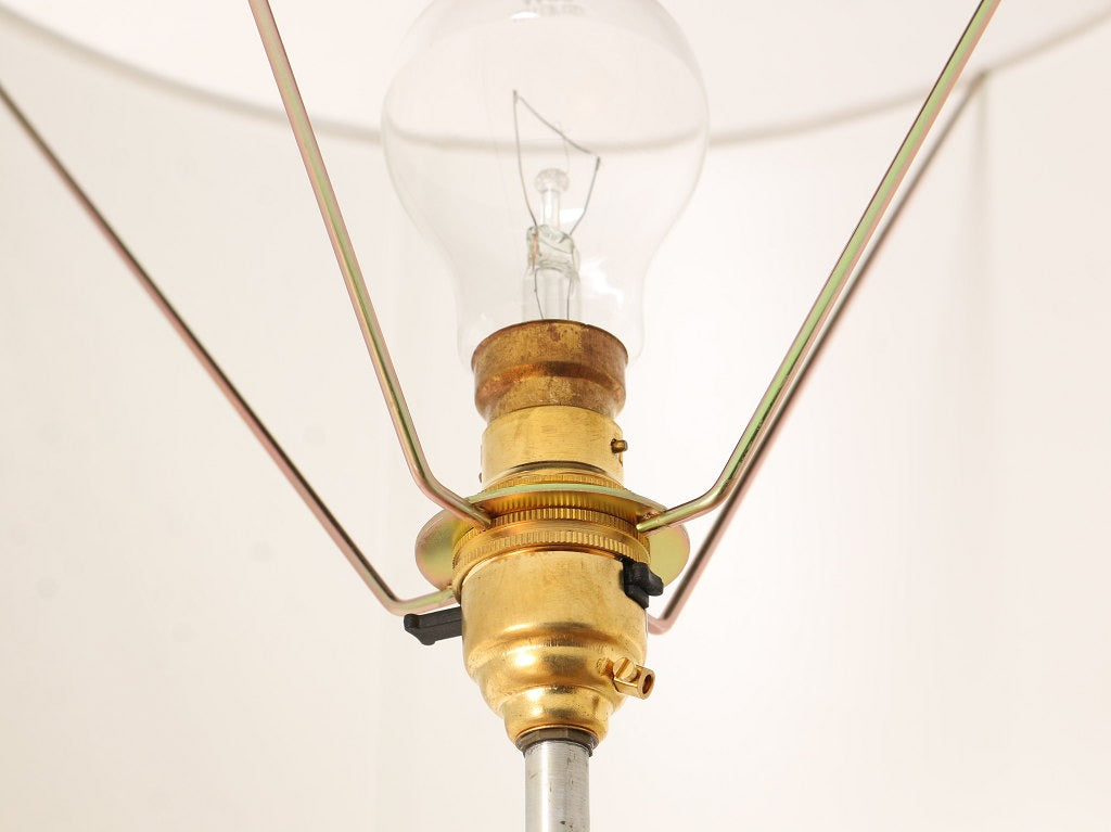 ウッドとクロムの組み合わせの相性が良いフロアランプです。現代家具と合わせてもとてもマッチするアイテムです。このランプの特徴はウッド部が、スチールの支柱のアクセントになっており、とても印象に残りやすいデザインになっています。60wまでの対応型なので、十分に光量がとれる商品です。