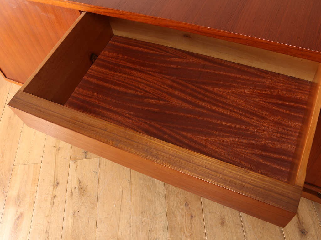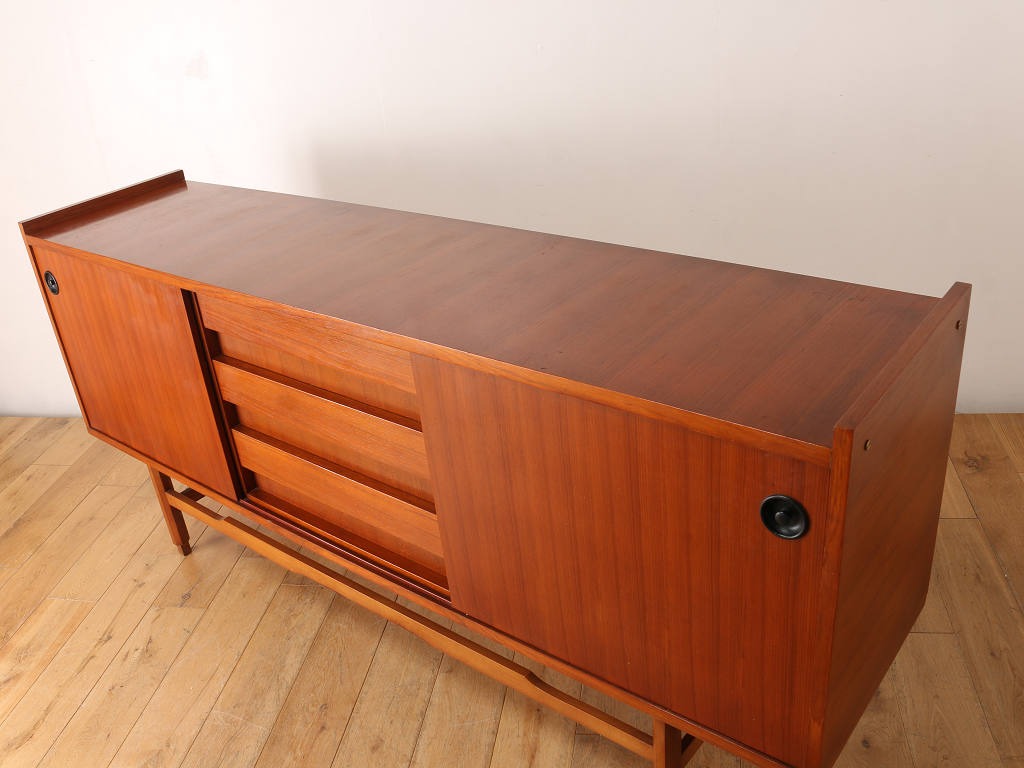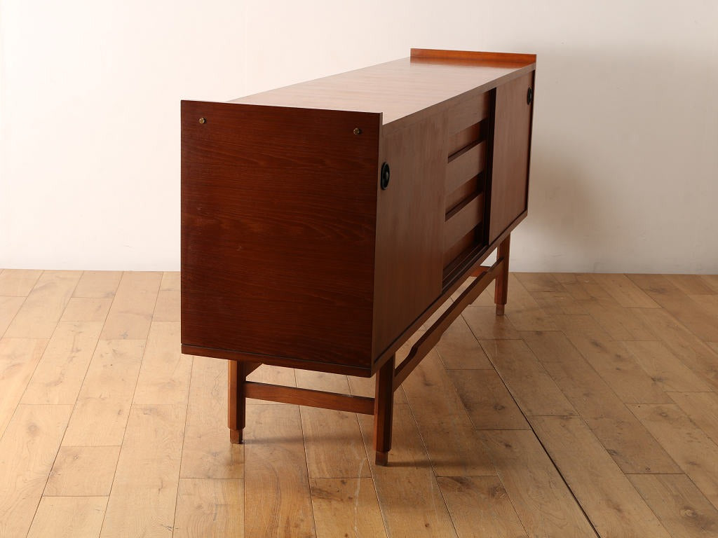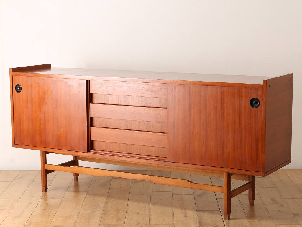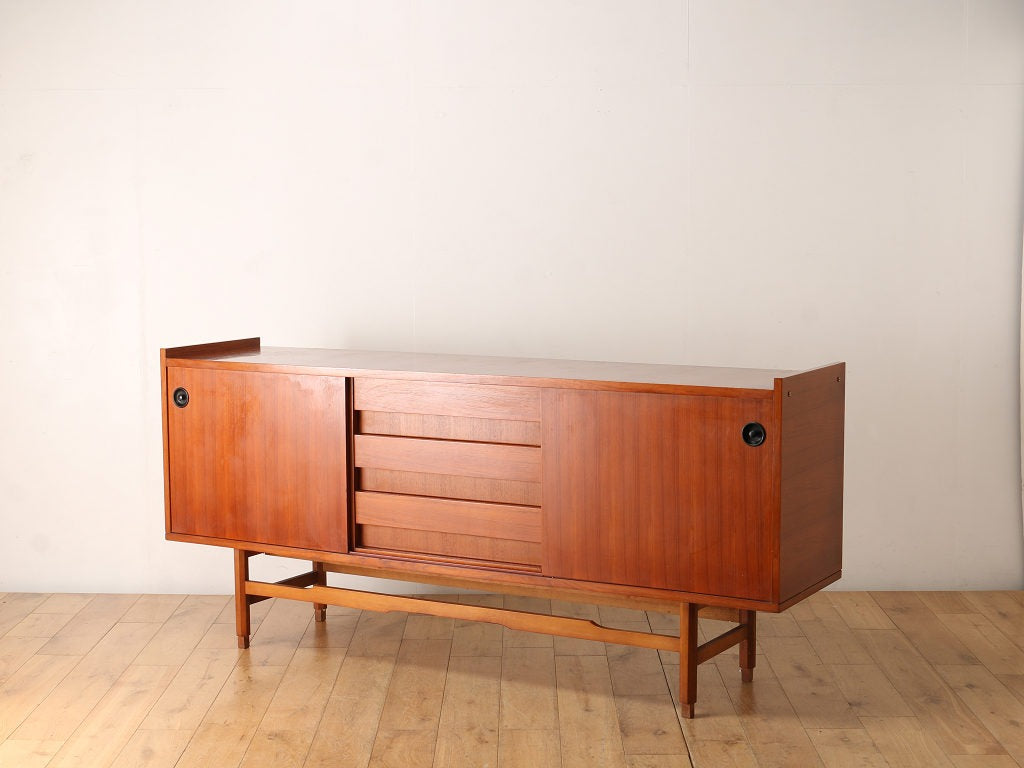 シンプルなデザインが魅力のサイドボード。中央に引き出し、左右に扉収納と、使い勝手の良いアイテムです。幅1950、高さ880mmと、使い勝手の良いローボードはロイズでも一番人気のサイドボードですが、英国、北欧ともに最近は買付が難しく、こちらのようなイタリアヴィンテージのサイドボードが狙い目と言えそうです。