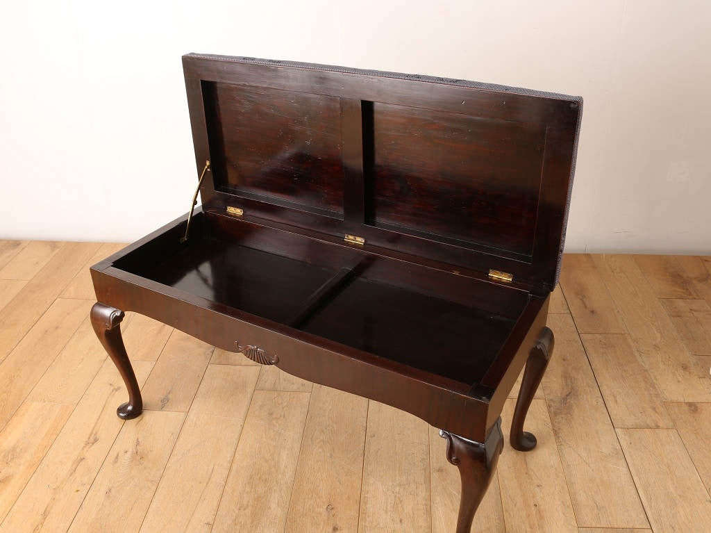 カブリオールレッグが特徴のピアノスツール。マホガニーの艶と質感、無駄のないデザインは洗練された優雅な空間を演出します。座の内部は収納になっているため、楽譜や書類が整理でき実用的に使用できます。ピアノスツールとしてはもちろん、窓辺に置いて寛ぎの空間を愉しむのも良いかもしれません。