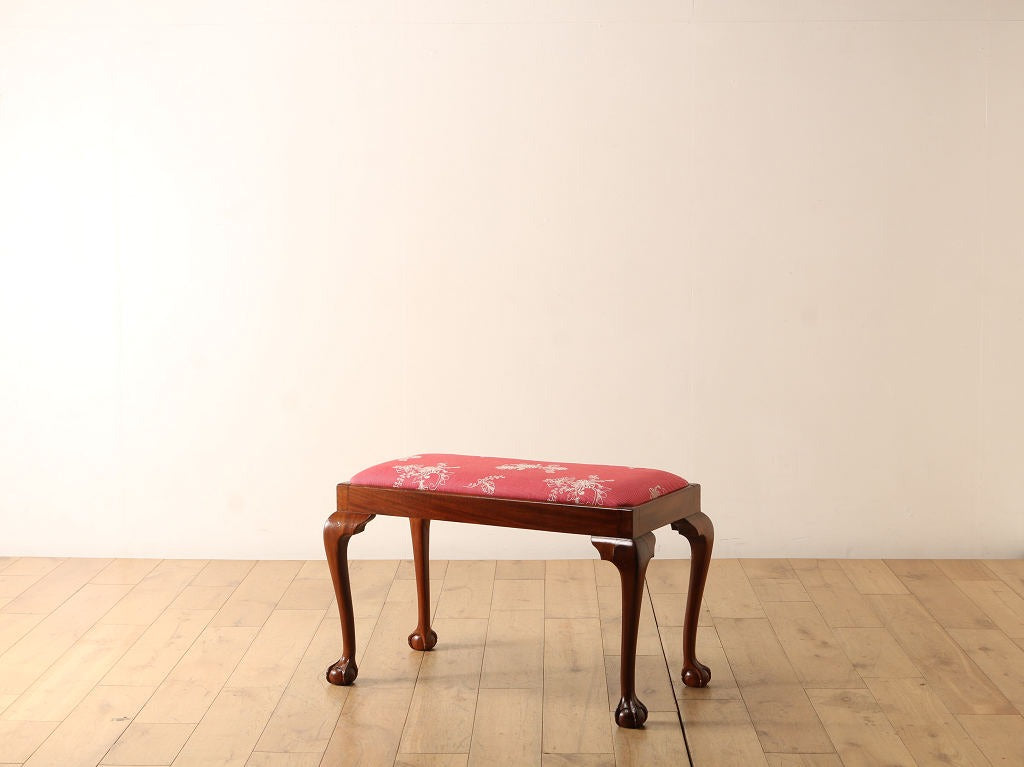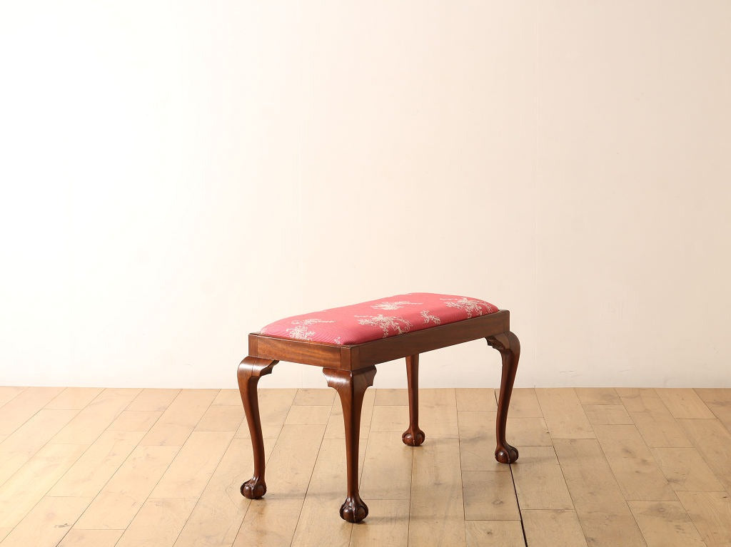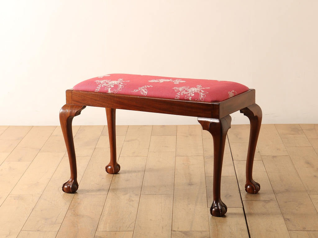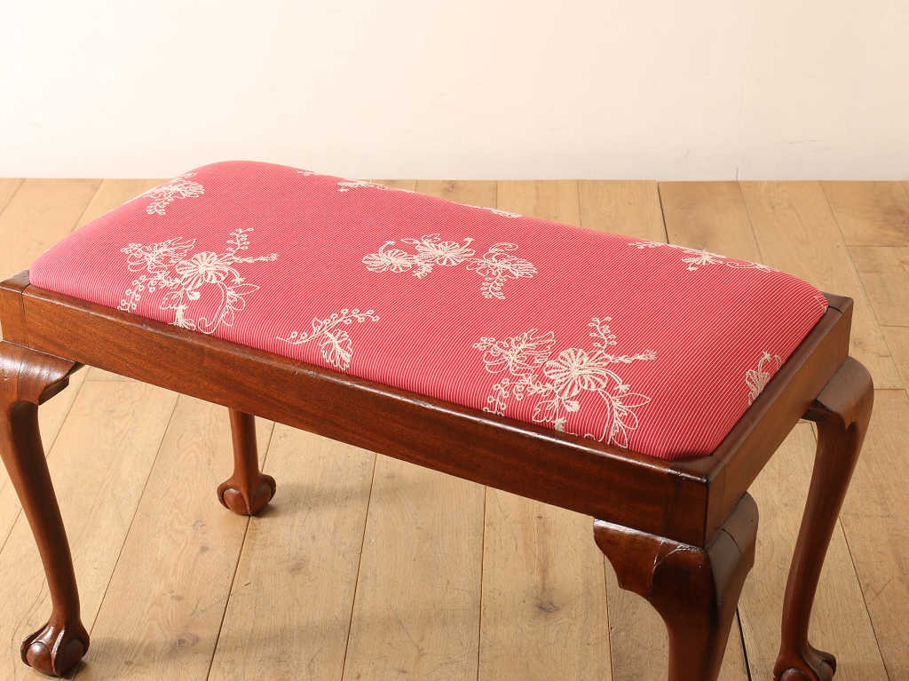 B&Cデザインの猫脚がクラシカルな雰囲気を与えてくれるスツール。こちらは横幅のあるデュエット型のサイズです。当時は演奏用や、ウィンドウシートと呼ばれる窓下に置く寛ぎの椅子として使われることが多かったスツール。現代にはないシチュエーションを想像して使ってみるのもアンティークの楽しみ方の一つです。やはりスツールといえば奥行きが浅く、背もたれが無いことから圧迫感がないため、限られたスペースに置いて使うことが出来ます。エントランスの腰掛けとして、窓際に置いて太陽を浴びながら寛ぐ場所として、日常のあらゆるシーンに置いてみてはいかがでしょうか。