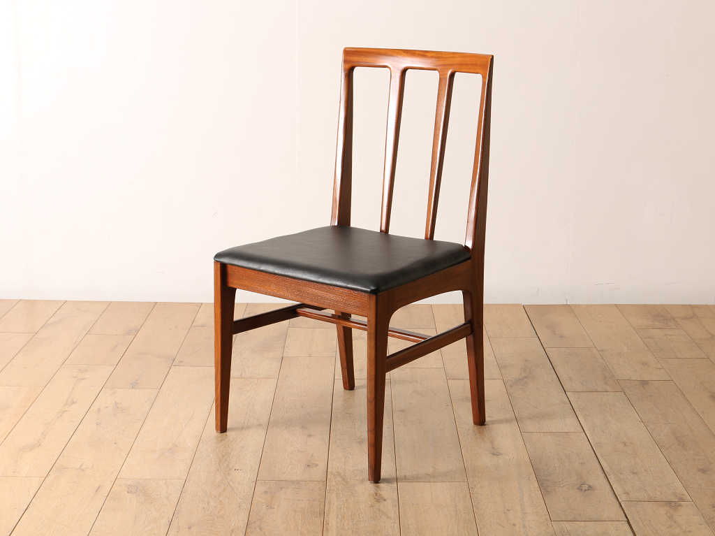 1960年代頃にイギリスで作られたYounger社のチェアです。チーク材の温かな木肌や、スタイリッシュなフォルムが魅力的です。チーク材は使えば使うほど、色に深みを増す為、経年を感じる事ができます。また、座面も少し低めな為ゆったりと座ることができます。ダイニングはもちろん様々なところでお使い頂けます