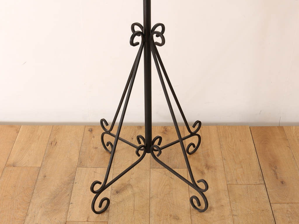 推定1960年代イギリスのスタイリッシュなハットスタンド。3箇所の仕様違いの掛ける箇所があり、ハンガーなどそのまま掛けても使用できます。上部の円形部分は回転する仕様となっております。横幅は590mmで玄関先に置いても場所を取らず、ご家族の身支度に一役買いそうです。また、すっきりとしたメタルデザインは場所を選ばずにさまざまな空間にレイアウトしていただけます。