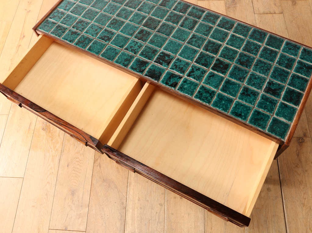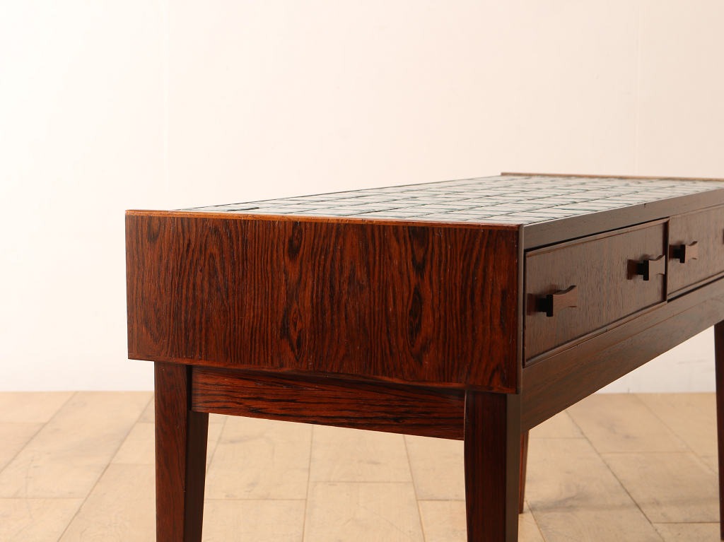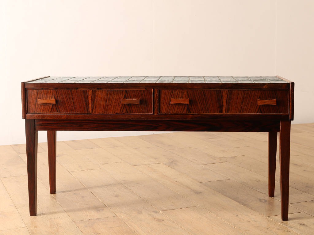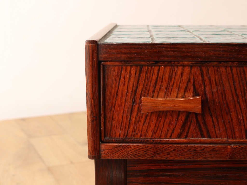 チーク材の温もりある杢目と天板のタイルがあしらわれたチェスト。タイルトップの天板はお部屋に華やかさを与え、かっこよく彩ってくれるでしょう。タイルの色味は、それぞれに違いがあり、見ているだけでも楽しめます。天板には、小さめのライトを置いて可愛らしくお部屋を飾ってみてはいかがでしょうか。