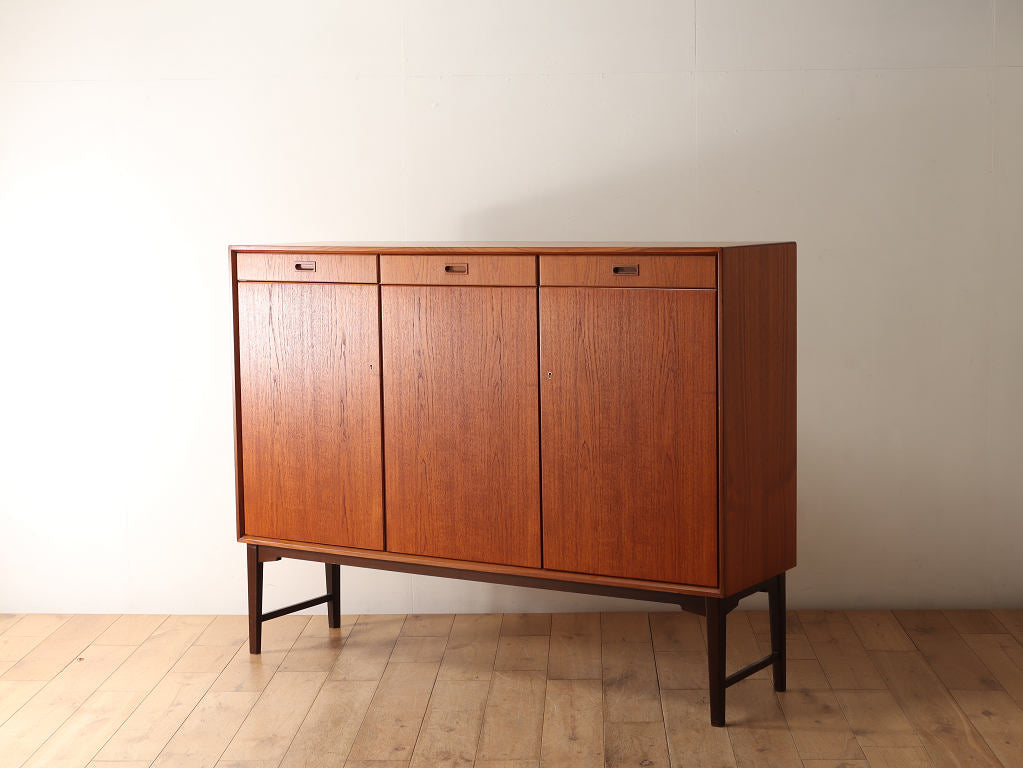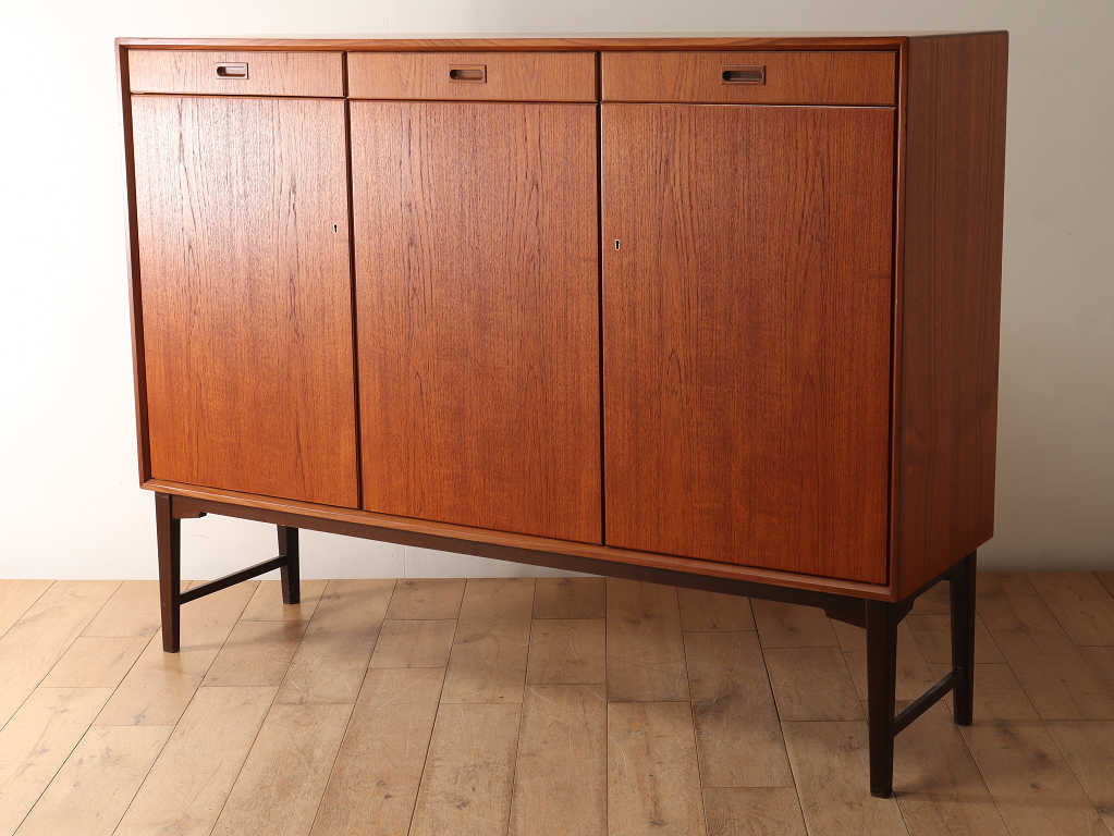 北欧家具ならではのシンプルでスタイリッシュなデザインのサイドボードです。現代のお部屋にも違和感なく取り入れることが出来ます。目線よりも低い位置に天板がくる構造なので上に小物を置いたり、壁面にミラーやアートを飾ったりとスペースを活用してインテリアをお楽しみ頂けます。サイドボードとしては大きすぎないサイズ感なので、リビングのサイドボードやダイニングの収納等、幅広く活躍致します。木の質感がお部屋をハイグレードにしてくれそうです。ぜひお好きなように彩りを加えて、アレンジしてみてはいかかがでしょうか。