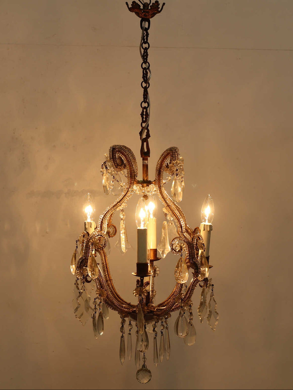 1960年代のイタリア製シャンデリア。フレーム部分にも細かなガラスパーツが施されており、細部にいたるまでこだわりを感じる一品です。角度によって色の輝きが異なるクリアガラスは、近くてみても遠くからみてもその表情を愉しめるでしょう。夜になれば幻想的な雰囲気を演出しますので、ゆったりとくつろぎたい空間におすすめです。ぜひお部屋のアクセントとしていかがでしょうか。